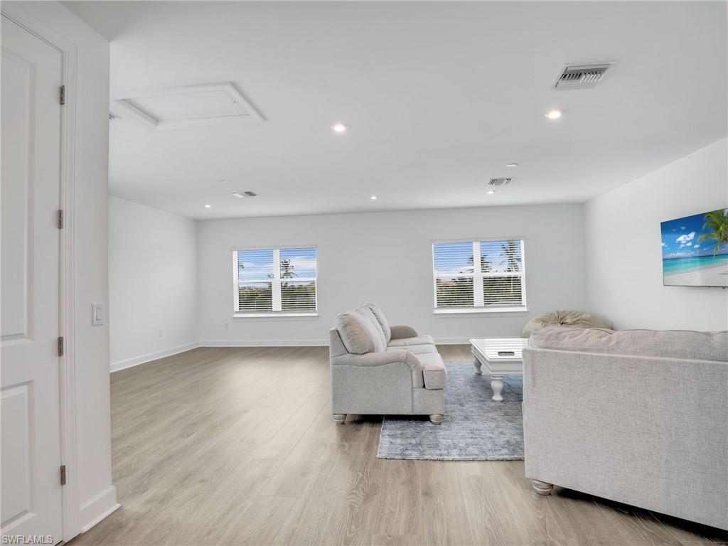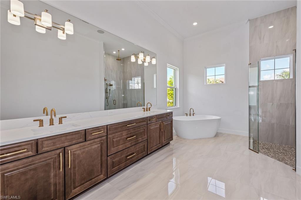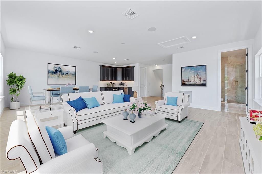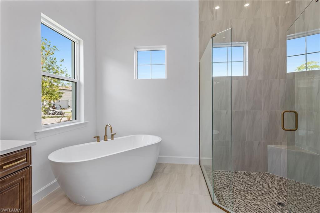 Luxury and spaciousness in an idyllic location awaits! This newly built home, with serene coastal finishes and calming neutral palette opens the mind to the possibilities of your dream home coming to life! Imagine your personal style imprinted on this gorgeous, extremely well designed home in the fresh new community of Esplanade by the Islands! Oversized primary suite with additional 3 en-suite bedrooms and baths plus den and powder room providing multiple areas to relax, unwind, entertain, and gather with friends and family. Spectacular expansive lake and preserve views off of the lanai where you can design your own version of heaven. Why settle for basic, standard selections, when you can design your own outdoor living room, custom pool, spa, outdoor, kitchen, fireplace and more! The possibilities are endless and could be every single thing you desire. The second floor of this beauty is perfect for an additional lounge, game room, ultra private guest apartment, or a family friendly bunk room and indoor movie theatre. Thoughtful and functional selections were made for you, the indestructible yet stylish light wood look LVP flooring throughout, upgraded quartz counters, custom indoor fireplace and built in shelving, upgraded tiling in all baths, and 3 car garage with flooring ready for your customization. This home is secured by impact glass and doors, and comes with all the new home warranties for peace of mind and ease of ownership. All this plus the wonderful amenities this community provides at extremely affordable costs make this opportunity one you should not miss! An active lifestyle is supported by the fabulous new Clubhouse featuring a state of the art fitness center, full service spa with salon services, cafe, resort pool, and wonderfully welcoming poolside restaurant and bar. Abundant pickleball and tennis courts, miles of sidewalks, plus a new culinary center under construction completes the perfect Naples destination you can call home! Minutes from the white sands of Marco Island, and world renowned downtown Naples, this is the one!