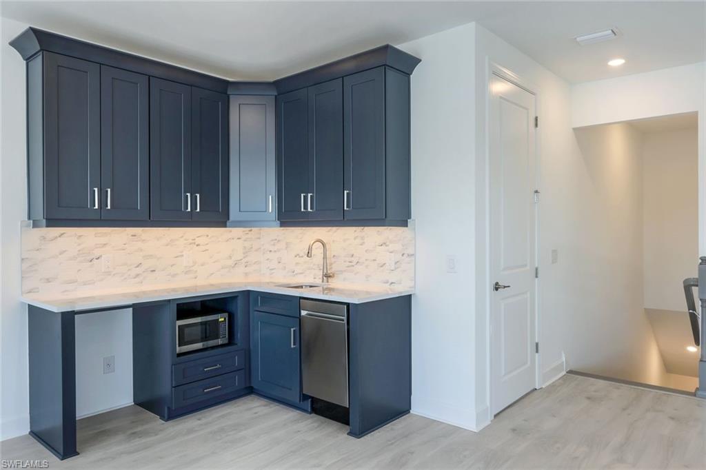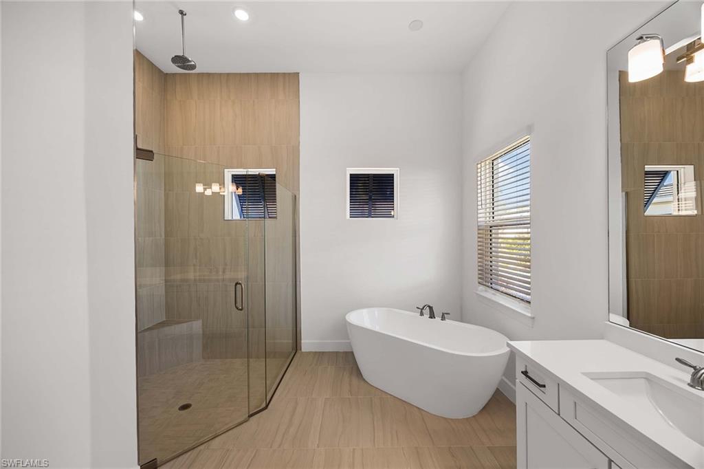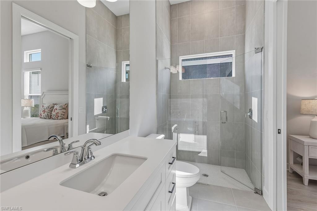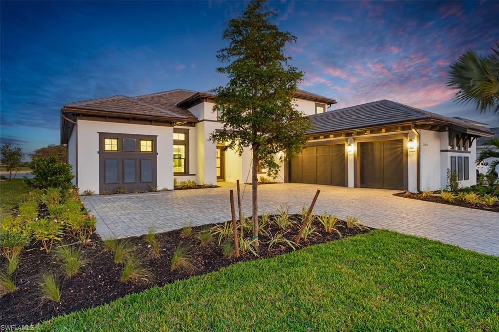 Welcome to a newly constructed Beacon model in Esplanade by the Islands, where refined design meets effortless living. Spanning over 4,000 square feet, this residence offers a versatile and spacious layout ideal for multigenerational living or hosting guests. Upon entry, soaring ceilings and natural light set the tone for the main living area, anchored by a fireplace and opening seamlessly to the chef’s kitchen. Designed for function and style, the kitchen features custom cabinetry, a center island, premium appliances and a wine refrigerator, ideal for entertaining. The primary suite is on the main level and includes a soaking tub, walk-in shower and dual oversized closets, providing a tranquil retreat with thoughtful separation from guest spaces. Upstairs, a private suite offers a kitchenette, one full and one half bath, making it ideal for long-term visitors, home office needs or live-in support. Outdoor living is elevated with an extended lanai and a waterfall-edge pool, creating an inviting space for relaxation and entertainment. The area is fitted for a future outdoor kitchen and includes a full bath accessible from the pool deck. A three-car garage and multiple storage areas throughout the home provide ample functionality for seasonal and full-time living. The lake views are spectacular. Esplanade by the Islands is a gated community offering a resort lifestyle with access to a private clubhouse, state-of-the-art fitness center, tennis and pickleball courts, walking trails, spa services and dining. Residents enjoy a calendar of social events and wellness programming tailored to active, luxury-focused lifestyles. Just minutes from the beaches of Naples and Marco Island, and within close reach of shopping, dining, golf courses and cultural experiences of Fifth Avenue South, this home offers a complete Southwest Florida experience. Some photos have virtual staging.