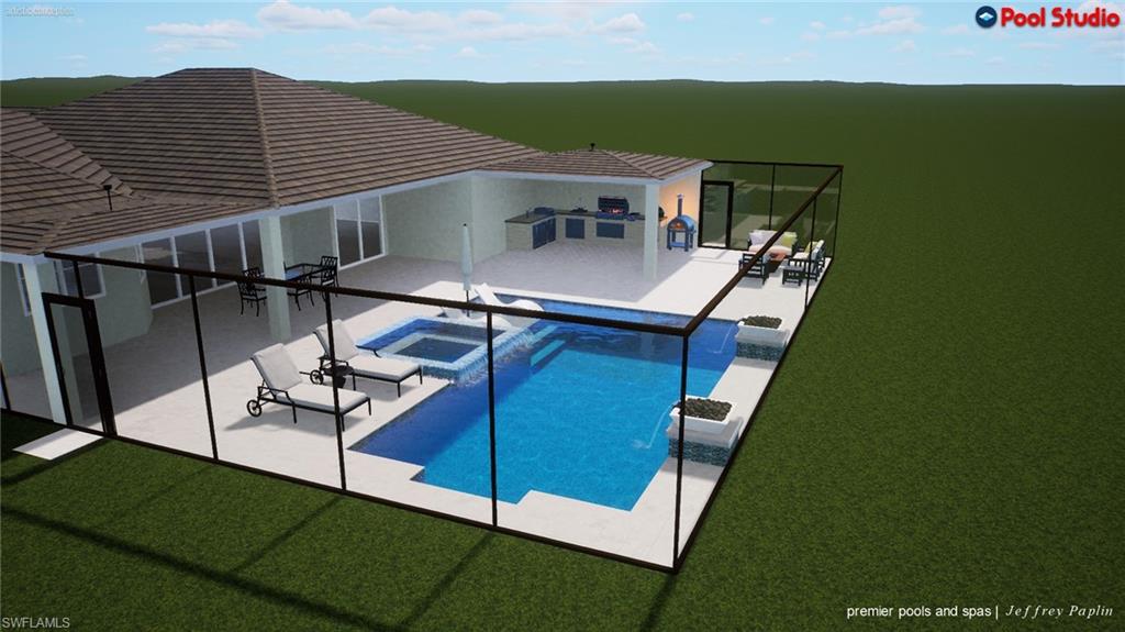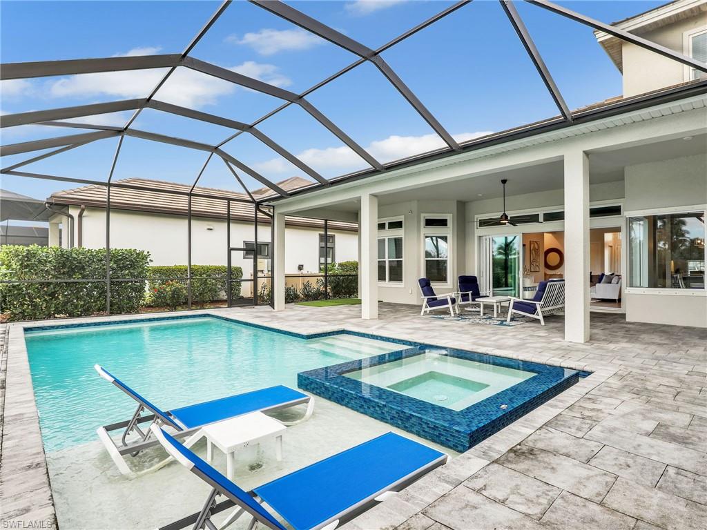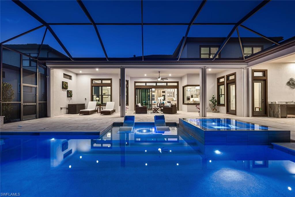 Waterfront luxury home with panoramic views! Experience wide-water views and exceptional coastal living in this luxurious four-bedroom, six-bath Beacon model located in the highly sought-after Esplanade by the Islands community. This never-lived-in, two-story residence is positioned on an oversized waterfront lot and shows like a professionally designed model home. Step inside to discover high-end finishes, an upgraded chef's kitchen with premium cabinetry and quartz countertops, and expansive hurricane-impact windows, sliders and doors that frame the breathtaking views. The great room features a stunning fireplace and seamless indoor-outdoor flow. Resort-style living continues outdoors with a custom-designed pool and spa, panoramic screen enclosure, and a fully equipped outdoor kitchen, ideal for entertaining. The second level offers additional bonus spaces, including a wet bar, ideal for guests and gatherings. This home also includes a Generac whole-house generator for peace of mind and year-round comfort. Residents of Esplanade by the Islands enjoy world-class amenities, including a resort-style pool, on-site restaurant, pickleball, tennis and a state-of-the-art fitness center, all just minutes from the renowned shops, dining and beaches of Fifth Avenue. Photos are virtually staged.