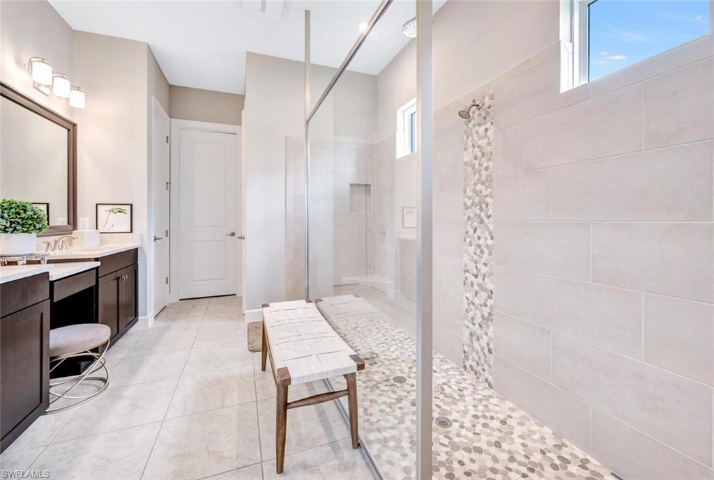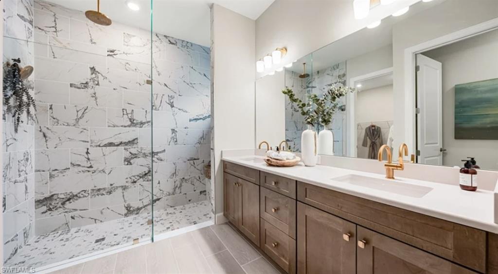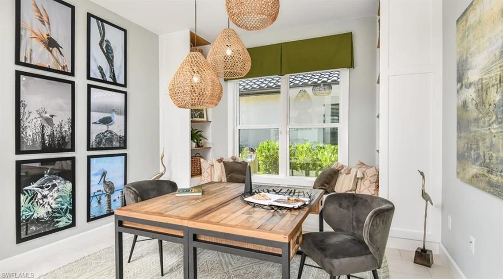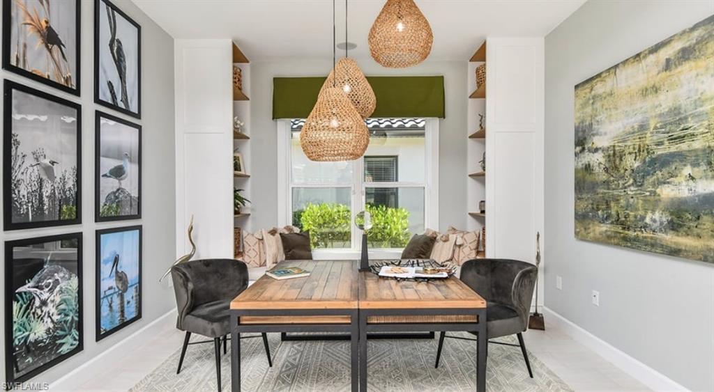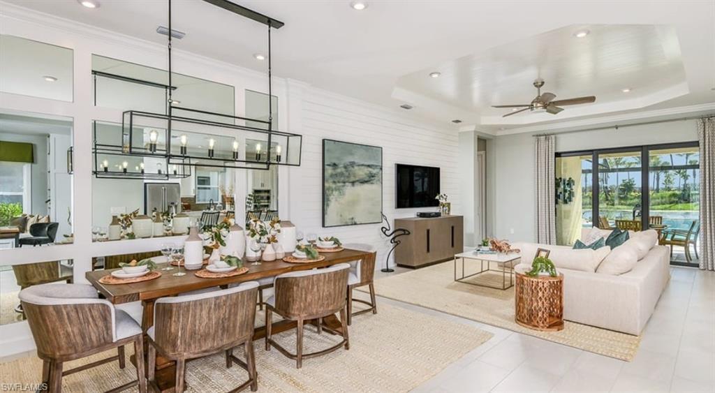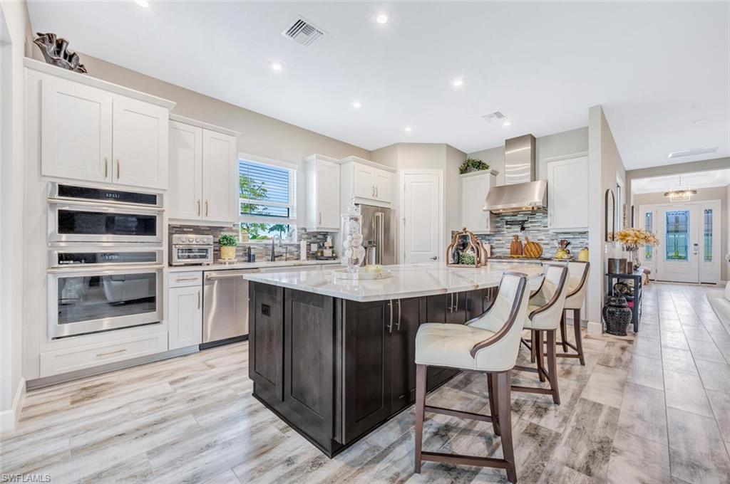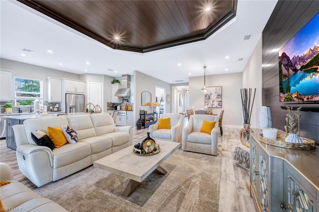 Experience unparalleled luxury in this immaculate, newly constructed residence, completed in 2022. Nestled in the prestigious Esplanade by the Islands community, this Lazio model home is replete with opulent upgrades designed to elevate your lifestyle. This exquisite property features three bedrooms, three bathrooms, and a versatile den, embodying the epitome of Florida's ultra-luxurious living. At the heart of this splendid home are a chef’s dream kitchen equipped with top-of-the-line stainless steel appliances, including a six-burner gas cooktop and a built-in oven/microwave. The kitchen is adorned with upgraded cabinetry, sleek quartz countertops, sophisticated designer lighting, and a stylish backsplash. Additional cabinetry beneath the expansive island enhances functionality and style. The thoughtful floor plan boasts wood-look tile flooring throughout and is accentuated by designer lighting fixtures. The great room, enhanced with newly installed shiplap, leads to an expansive lanai surrounded by lush landscaping, pre-wired for a future pool and outdoor kitchen—ideal for seamless indoor-outdoor living. Oversized, light-filled bedrooms offer a serene retreat for guests, complete with access to the numerous amenities that Esplanade has to offer. The bathrooms are a masterpiece of design, featuring exquisite vanities, premium quartz and granite countertops, and designer tile work. The luxurious primary suite is a sanctuary in itself, highlighted by a charming bay window and an expansive en-suite bathroom. This spa-like bath includes a vast walk-in shower, a lavish vanity with a makeup area, designer tile, and a spacious walk-in closet. A beautifully appointed and efficient laundry room with upgraded cabinetry and new appliances adds to the home’s conveniences. Residents of Esplanade by the Islands enjoy access to exceptional amenities, including tennis and pickleball courts, a comprehensive fitness center, eight miles of scenic walking trails, upscale dining options, and a magnificent pool and spa area. Drawing inspiration from its sister community, Esplanade Golf on Immokalee Road, it offers an idyllic setting close to Marco Island and Old Naples—putting the best of Southwest Florida right at your doorstep.