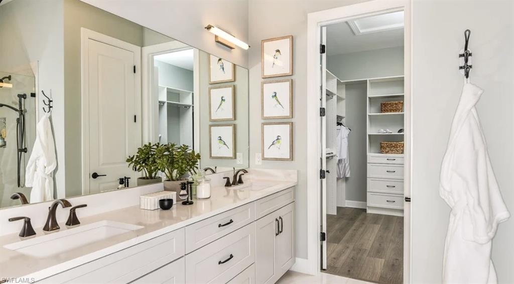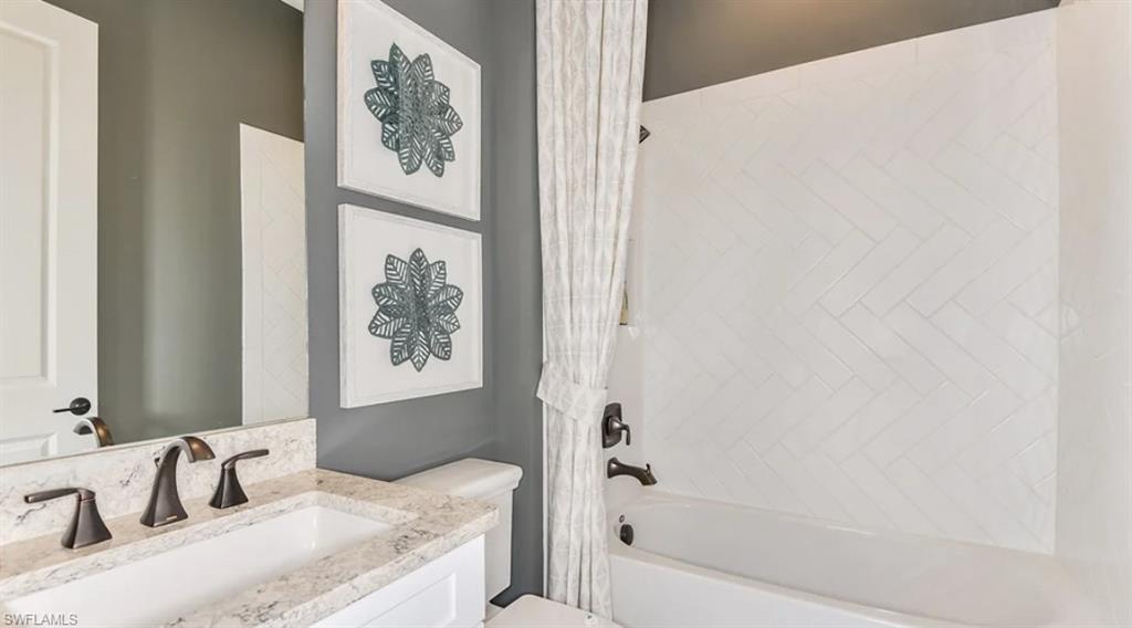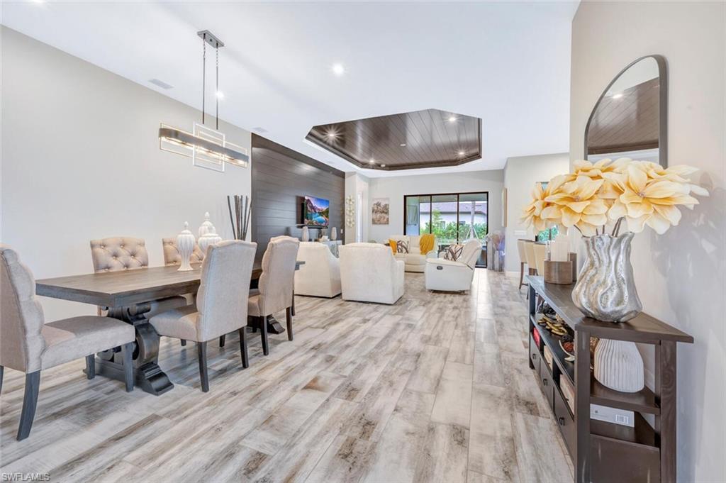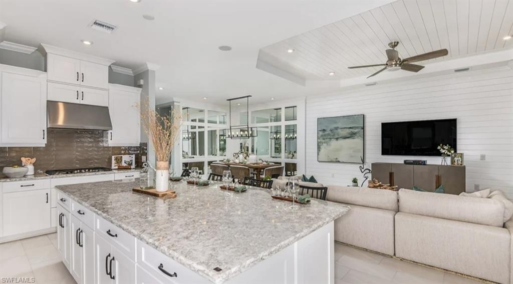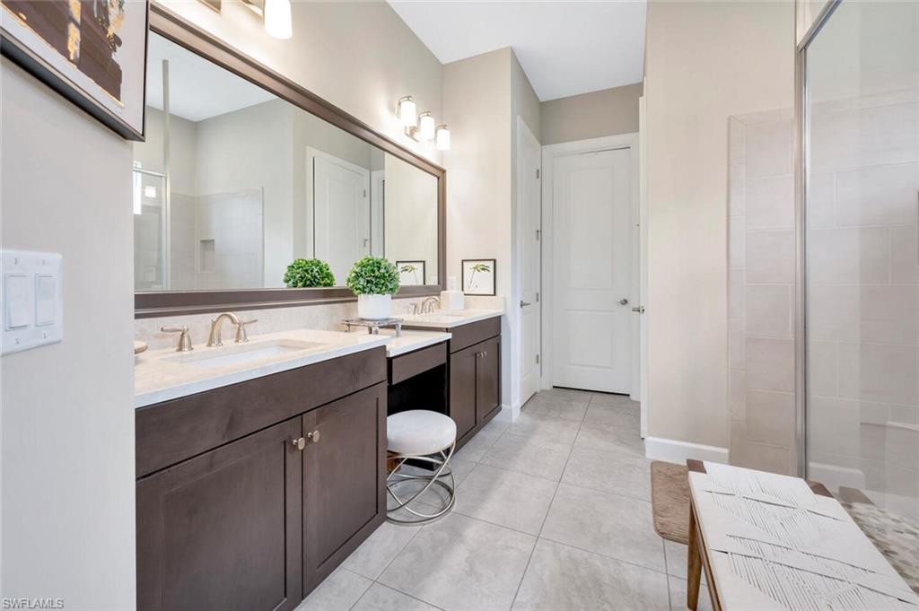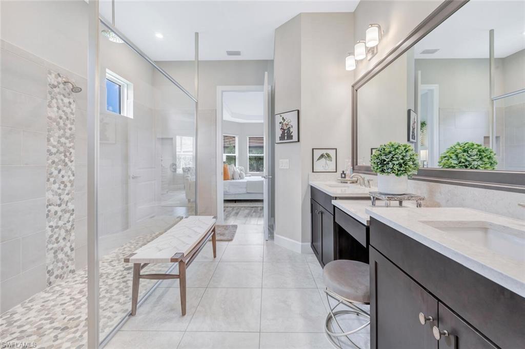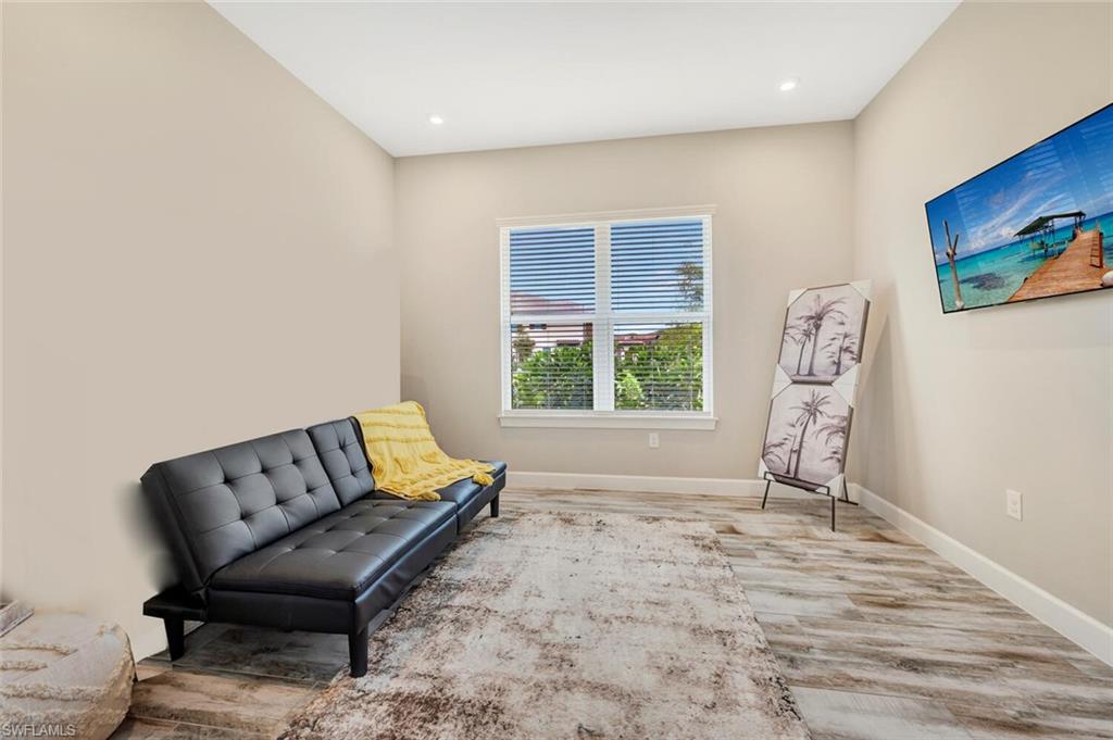 Experience unparalleled luxury in this immaculate, newly constructed residence, completed in 2022. Nestled in the prestigious Esplanade by the Islands community, this Lazio model home is replete with opulent upgrades designed to elevate your lifestyle. This exquisite property features three bedrooms, three bathrooms, and a versatile den, embodying the epitome of Florida's ultra-luxurious living. At the heart of this splendid home are a chef’s dream kitchen equipped with top-of-the-line stainless steel appliances, including a six-burner gas cooktop and a built-in oven/microwave. The kitchen is adorned with upgraded cabinetry, sleek quartz countertops, sophisticated designer lighting, and a stylish backsplash. Additional cabinetry beneath the expansive island enhances functionality and style. The thoughtful floor plan boasts wood-look tile flooring throughout and is accentuated by designer lighting fixtures. The great room, enhanced with newly installed shiplap, leads to an expansive lanai surrounded by lush landscaping, pre-wired for a future pool and outdoor kitchen—ideal for seamless indoor-outdoor living. Oversized, light-filled bedrooms offer a serene retreat for guests, complete with access to the numerous amenities that Esplanade has to offer. The bathrooms are a masterpiece of design, featuring exquisite vanities, premium quartz and granite countertops, and designer tile work. The luxurious primary suite is a sanctuary in itself, highlighted by a charming bay window and an expansive en-suite bathroom. This spa-like bath includes a vast walk-in shower, a lavish vanity with a makeup area, designer tile, and a spacious walk-in closet. A beautifully appointed and efficient laundry room with upgraded cabinetry and new appliances adds to the home’s conveniences. Residents of Esplanade by the Islands enjoy access to exceptional amenities, including tennis and pickleball courts, a comprehensive fitness center, eight miles of scenic walking trails, upscale dining options, and a magnificent pool and spa area. Drawing inspiration from its sister community, Esplanade Golf on Immokalee Road, it offers an idyllic setting close to Marco Island and Old Naples—putting the best of Southwest Florida right at your doorstep.