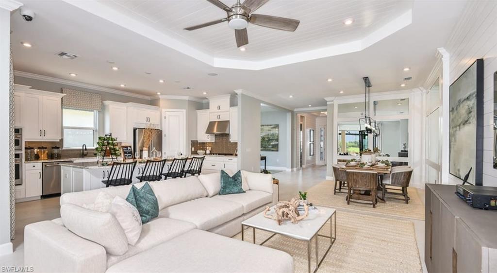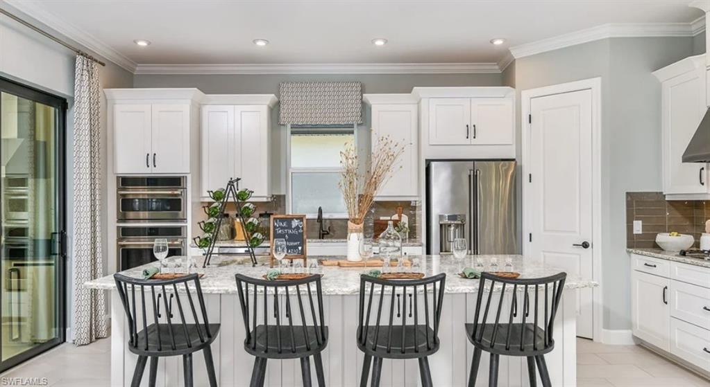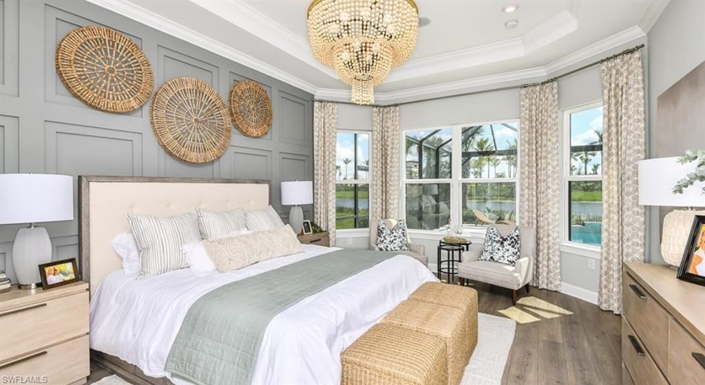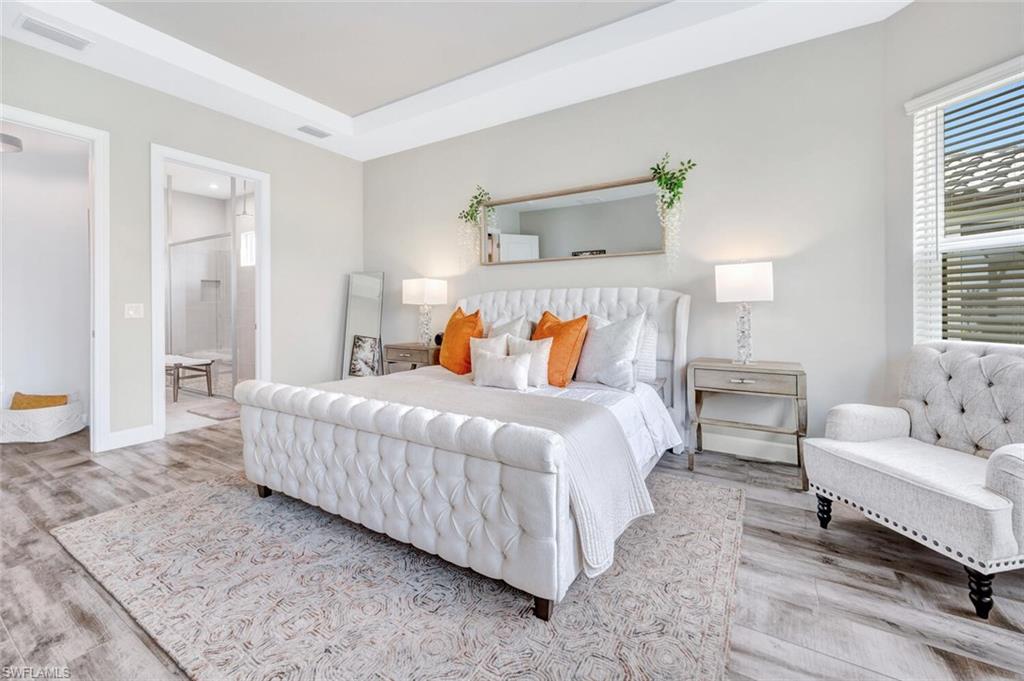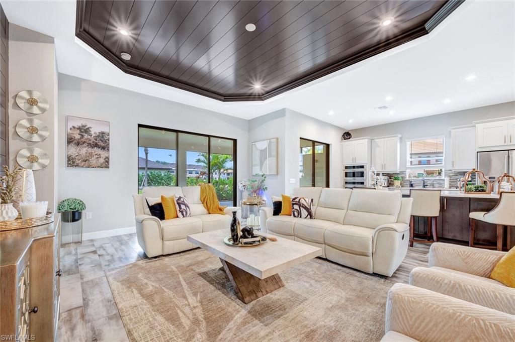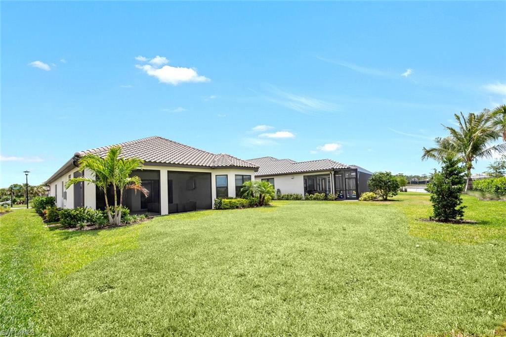 Being offered UNDER APPRAISED VALUE!! This gorgeous Lazio model home is nestled in the highly coveted Esplanade by the Islands community. Elevated with extensive upgrades, this three bedroom plus a den, three bathroom home ensures comfortable and luxurious living. At the core of this home is an immaculate gourmet kitchen with stainless steel appliances, including a gas cooktop and built-in oven and microwave. The kitchen is upgraded to include extended quartz countertop and custom cabinet space, including additional island cabinets, convenient under cabinet lighting, and an expanded casual dining space perfect for entertaining. The home boasts designer, flush mount lighting, stylish wood plank tile flooring, tray ceilings, window treatments, and crown molding, maintaining an elevated but comfortable look throughout. The open-concept home is bright and features large, impact glass windows in the front and sliding glass doors in the back. The primary bedroom proves to be a personal haven with high, tray ceilings, beautiful flush mount lighting, a large window with a water view, as well as an extended walk-in closet and an en-suite bathroom. The beauty and functionality of this home continues into the covered, extended lanai which is equipped with a custom, gourmet outdoor kitchen. The outdoor kitchen is a chef’s dream with stainless steel appliances and a commercial grade Trade Wind 54-inch vent hood. Conveniently equipped with an 80 Amp Pool and Spa prewire and gas stub-out and a sizable yard, the property provides potential for easy pool installation. Residents have full access to state of the art amenities, including tennis and pickleball courts, a well-appointed fitness center, upscale dining, a resort-style pool and spa, and eight miles of walking trails. A new Taylor Morrison community, Esplanade by the Islands offers the high quality and notorious charm of its sister community, Esplanade Golf and Country Club on Immokalee Road. Conveniently located near Olde Naples and Marco Island, this property provides prime opportunity to experience the excitement and beauty of Southwest Florida. Amenities are scheduled to be completed by August 2024.