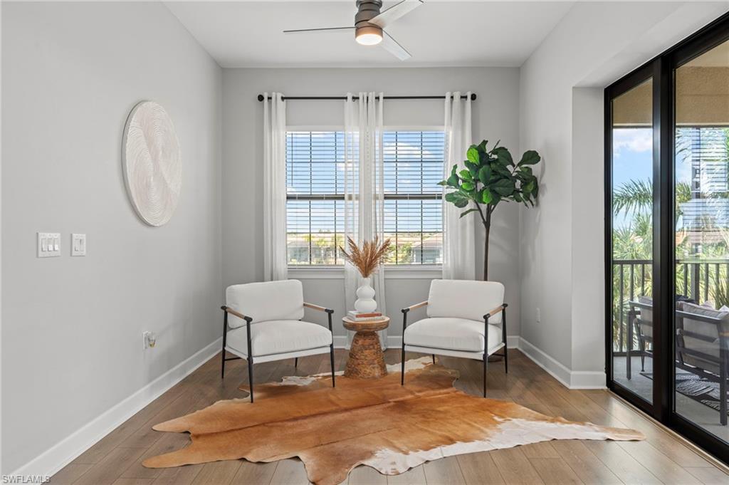 ****SIGNIFICANT PRICE IMPROVEMENT!*** JUST PACK YOUR PERSONAL BELONGINGS...HOME IS OFFERED FURNISHED WITH A NEWER GOLF CART. A truly EXCEPTIONAL WATERFRONT setting with nature and community is perfectly in balance! This RARE MARANO FIRST FLOOR CORNER END UNIT offers privacy with a zero corner slider feels as if natural is extending the outside to your indoor living space. You will enjoy the COASTAL finishings of this 2 bedroom+ OVERSIZED Den, 2 1/2 bathroom home offering 1956 sq ft of indoor living space with IMPACT Windows and Sliders. This rarely used home is better than a new build as it offers all the extras such as window treatments, solar shades on lanai and guest bedroom, brand new ceiling fans, TV wall jacks, upgraded cabinetry in grayish/brown tones which is STUNNING against the quartz countertops, tile flooring throughout, security system, epoxy garage flooring, home automation and so much more! This light filled home offers A SPLIT FLOOR PLAN for yours guest to enjoy the ensuite and there own private outdoor open courtyard/patio for an outdoor oasis experience. The fireplace is surrounded by the gorgeous built-in cabinetry to enjoy our rare cool days!! Truly a community that your friends and family will invite themselves to visit! Enjoy the maintenance free lifestyle ESPLANDE BY THE ISLANDS has to offer along with the most SPECTACULAR of AMENITIES including: Tennis, Pickleball, Resort Style Community Pool/Spa, Fitness Center, SIGNATURE Spa treatments, Concierge Services, Wellness Center, Wellness focused events, organized events and outings, Bocce ball, Toasted Cafe, Bahama Bar, future expansions include the Culinary Center and Sip Wine club. Just a short drive to Downtown Naples or Marco Island to enjoy the white sandy beaches, shopping, dining, galleries and fine arts. This home is available for a QUICK closing!