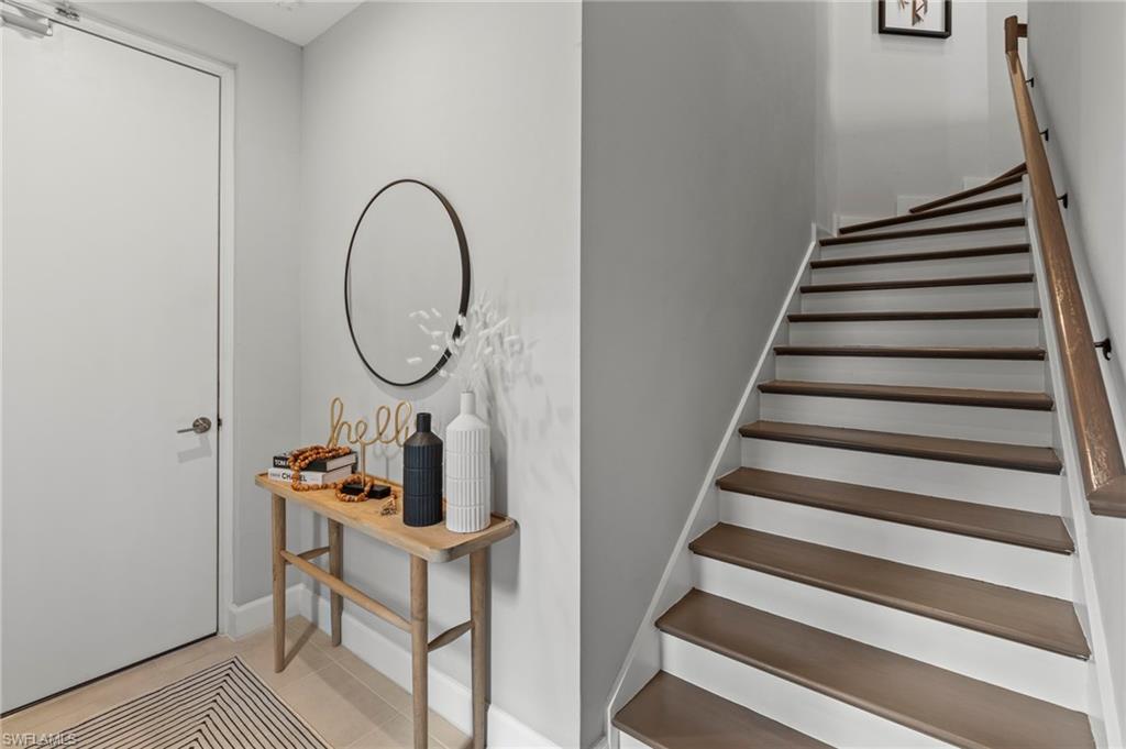 This beautiful second floor end unit with lake view is ready for a quick move in. Three bedrooms, king and 2 queens, 3 full baths, dining room, large family room spacious open floor plan, kitchen with quartz counter tops and white shaker cabinets, laminated wood flooring in the living areas and carpet in the bedrooms. Esplanade By The Islands community means you'll have access to a wide range of amenities, including a resort style pool, tennis bocce courts, pickleball courts, a clubhouse with wellness center with aerobics classes, Tikki bar, fitness center, hair and nail saloon, massage, coffee shop, a restaurant, and much more. This vibrant, new community is located just minutes from Marco Island and downtown 5th Avenue offering you easy access to the best shopping, fine dining, and our beautiful Naples Beaches. Publix shopping center is next to the community for your shopping convenience.