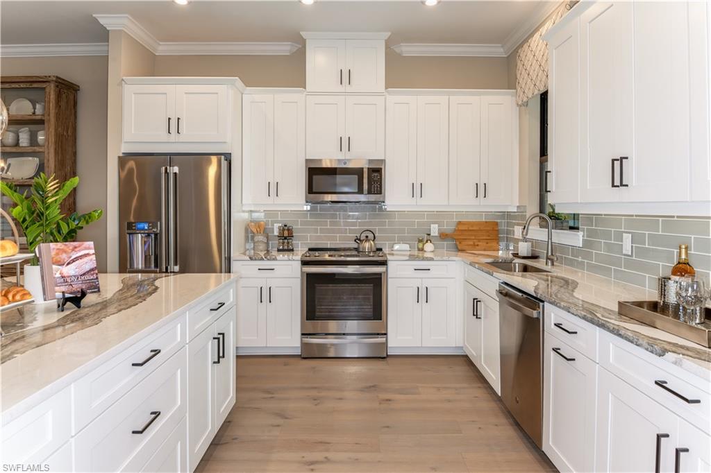 New Construction – Ready Now! Built by America’s Most Trusted Homebuilder. Esplanade by the Islands Coach Homes offers an unparalleled lifestyle with resort-style amenities and wellness programs to inspire and invigorate. Whether you’re seeking active adventures or peaceful retreats, this community delivers luxury and sophistication at every turn. Swim laps or lounge by the resort-style pool, sip a refreshing drink at the Bahama Bar, or recharge at the state-of-the-art wellness center. Stay energized with tennis, pickleball, and bocce courts, or indulge in unique experiences like wine tastings, cooking classes, and live concerts. The culinary center provides both fine and casual dining, along with opportunities to hone your cooking skills. From relaxing spa events to exciting excursions, Esplanade by the Islands makes every day a celebration of vibrant, carefree living. Welcome to the Bellisimo at 15315 Lucerna Street Unit 203 in Esplanade by the Islands Coach Homes. The Bellisimo VII is a second-floor 2,343 sq. ft. coach home that features three bedrooms, two and a half bathrooms, a private lanai, a 1-car garage, and more! As you enter the home, you'll be met with a spacious central living area. Here, the gathering room is overlooked by the gorgeous designer kitchen, and a separate dining room is set adjacent to this open-concept space. The peaceful Owner's Suite includes dual sinks, a corner shower, a water closet, and a large walk-in closet. The rest of the coach home brings forward the two secondary bedrooms, the other full and half bathrooms, a sunny lanai, the laundry room, and so many other noteworthy details. Additional Highlights Include: Impact windows, fireplace, tray ceilings, quartz countertops, shaker cabinets, and laminate flooring. Photos are for representative purposes only. MLS#225066956