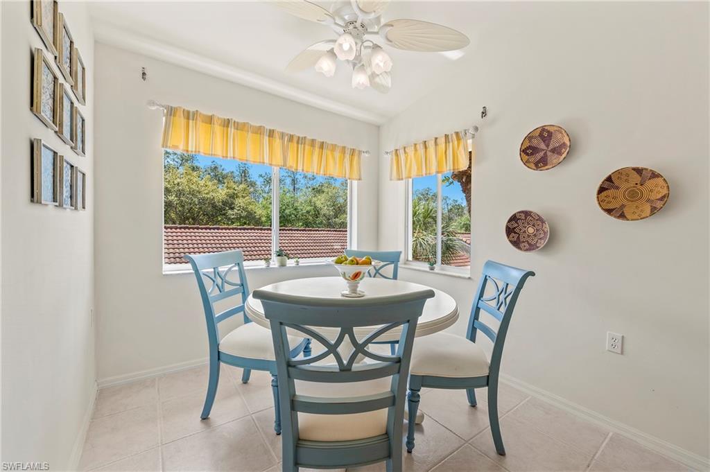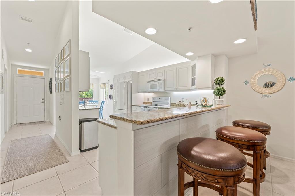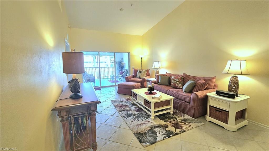 Welcome to this beautifully maintained 3-bedroom, 2-bath end-unit condo located on the second floor in the highly desirable Falling Waters community of Naples, FL. Enjoy stunning lake views from your private lanai, offering a serene and picturesque backdrop perfect for relaxing or entertaining. The spacious open-concept layout features tall, vaulted ceilings and abundant natural light, creating an airy and inviting atmosphere. The kitchen is well-appointed with granite countertops, modern appliances, ample cabinetry, and a breakfast bar that flows seamlessly into the dining and living areas. Tile flooring throughout adds to the home’s clean and cohesive design, while roll-down hurricane protection on all windows provides peace of mind. Additional highlights include a private garage for secure parking and extra storage. Falling Waters is known for its resort-style amenities, including one of Naples’ most beautiful pools, tennis courts, bocce, and lush tropical landscaping throughout the community. Condo fees include water, WIFI and basic cable. Located just minutes from Naples’ world-class beaches, shopping, and dining, this condo combines comfort, convenience, and lifestyle in one perfect package. Don’t miss the opportunity to make this exceptional home yours!