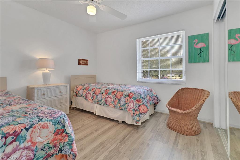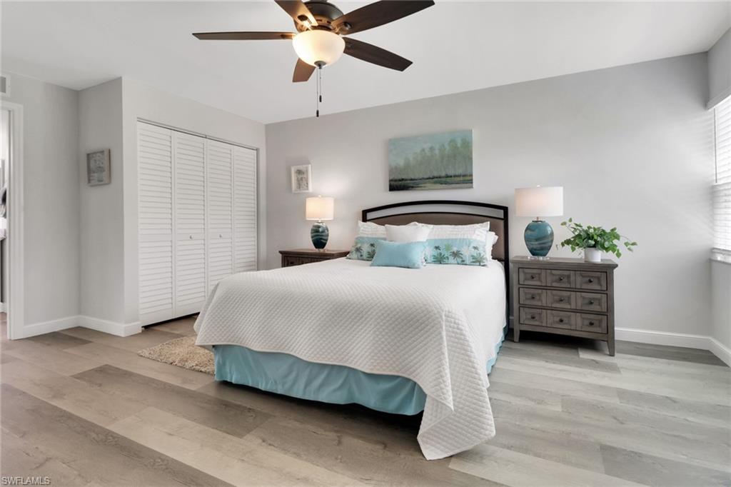 Immaculate condo with 2 master suites and parking right outside your door. Walk to Publix, Target and many restaurants. Not a 55 + community. Recently remodeled with Shaker kitchen, granite and brand new appliances. All in one state of the art ventless washer dryer. Tile and laminate plank flooring throughout. New paint. Strong rental history. Enjoy the Florida sunshine in your private patio set in lavish resort style landscaping. Electric hurricane shutters in lanai. The beach is a few minutes drive and SWFL airport thirty mins away. Crown molding, in unit laundry and extra storage. USOP National Pickleball Center 22 minutes. Association has conducted a Milestone Inspection and Structural Integrity Reserve Study. A Turnover Inspection Report is not required.