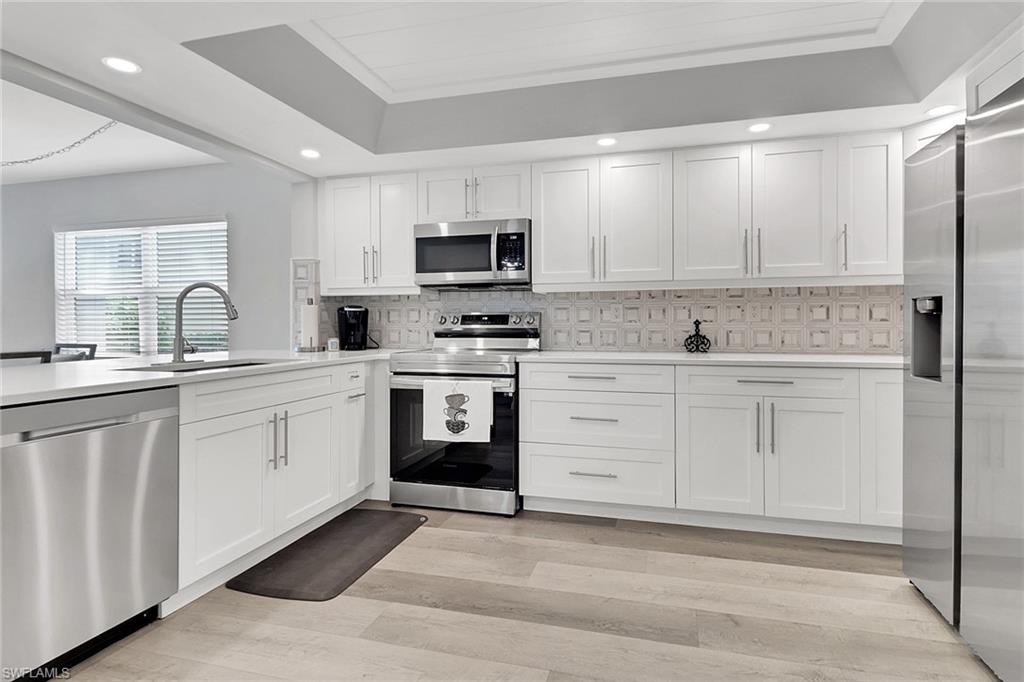 Unbeatable cul-de-sac location! This top-floor penthouse boasts spectacular sunset and golf course views, perfectly framed by vaulted ceilings that create a light, bright, and airy atmosphere. Recently updated with a crisp white kitchen, modern primary bath, and stylish flooring throughout, this home blends comfort with coastal sophistication. Enjoy a roomy screened lanai with a convenient kitchen pass-through and extra storage. The building exterior was freshly painted in 2020 and is located in the desirable X flood zone. The quiet, well-maintained community offers unbeatable convenience—just minutes to Clam Pass Beach, upscale shopping and dining at Waterside Shops, and everyday favorites like Starbucks and Target. Seasonal rentals are already secured for 2026 and can be transferred to the new owner. Optional membership is available at nearby Quail Run Golf Club, making this home ideal for both golfers and beach lovers.
