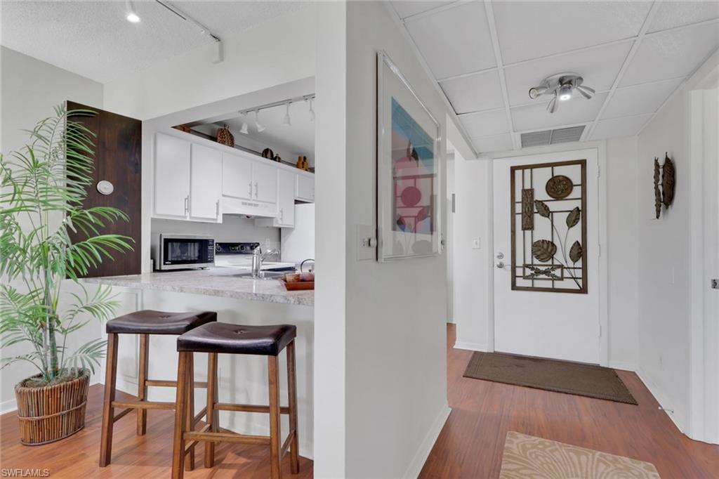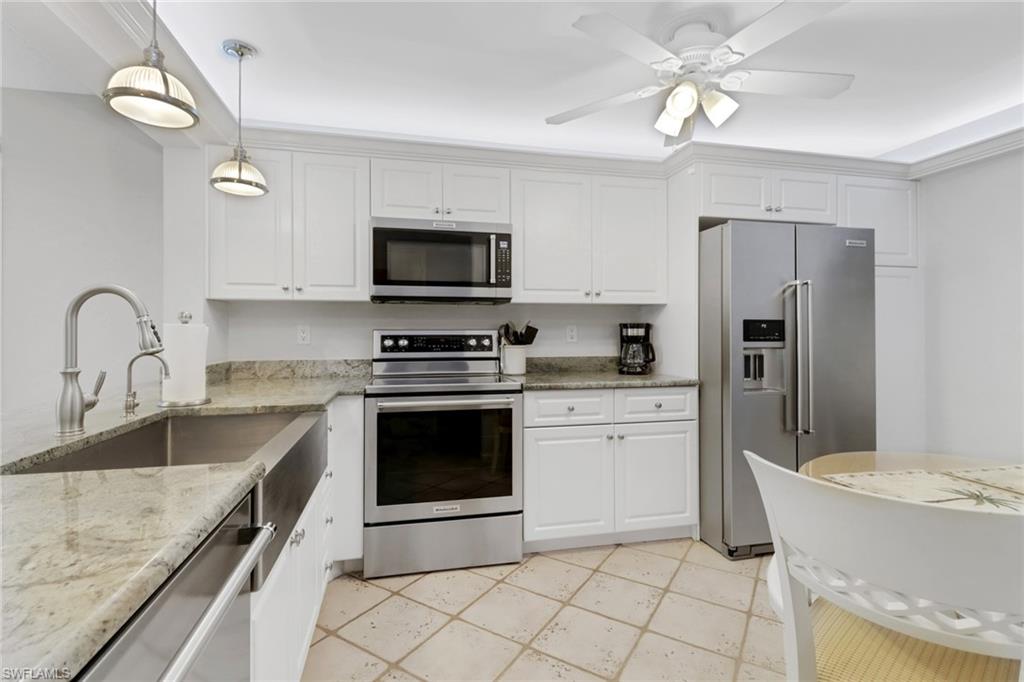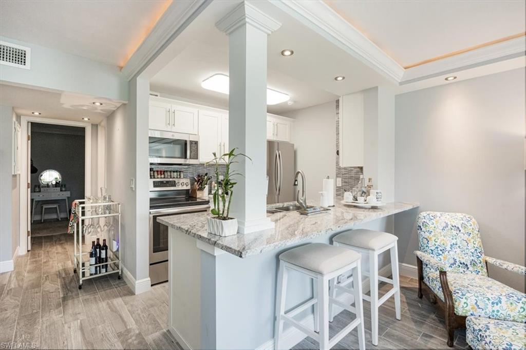 Welcome to your new home in paradise! This beautifully renovated, first floor condo is a serene retreat located in the heart of Naples, Florida, within a vibrant 55+ community. Boasting one spacious bedroom and a modern bathroom, this residence offers a perfect blend of comfort and coastal style. Step inside to discover a bright and airy open-concept living space, where newly updated features enhance both functionality and style. The nicely detailed living area opens into a contemporary kitchen with sleek appliances and stylish white cabinetry. The bedroom is a tranquil haven with ample closet space, and the renovated bathroom features a bath/shower with modern fixtures and lighting. The unit is steps away from the laundry facility and trash chute. The sparkling swimming pool is but a short walk to enjoy sunbathing and a dip in the water. Centrally located, this condo provides easy access to Naples’ finest dining, shopping, and cultural attractions, as well as pristine beaches and scenic parks. Experience the best of Southwest Florida living in this move-in ready gem. Welcome home!