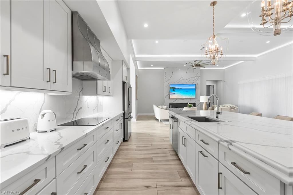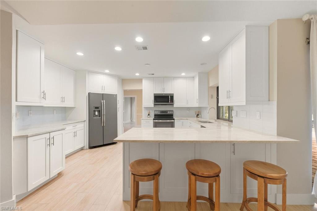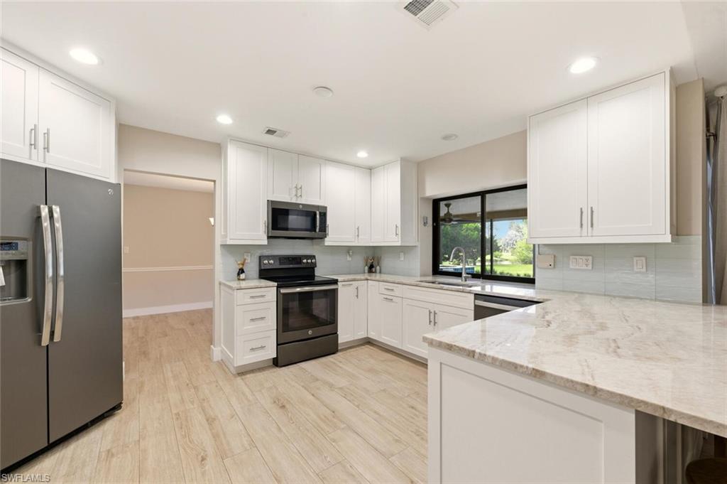 Experience breathtaking sunsets and sparkling lake views from this perfectly oriented, western-exposure home! Situated on .99 acres of manicured land, this ranch-style residence offers more than just a home—it’s a lifestyle defined by privacy and convenience. Ideally positioned in the highly sought-after neighborhood of Four Seasons, this property is just minutes from Naples’ world-renowned beaches, the vibrant Mercato shopping district, and the upscale Waterside Shops. Thoughtfully reimagined for modern luxury, this 3-bedroom + den residence blends both style and quality throughout, featuring extensive high-end updates. The outdoor oasis was transformed in 2022 with a new pool featuring a sun-shelf & spa, and a new picture-window screen enclosure to maximize those panoramic lake views. A new roof (2021) adds peace of mind. Inside, the newly updated interior (2021/2022) boasts major mechanical upgrades, including a new A/C and hot water heater, new flooring, and a completely refreshed kitchen and baths. The kitchen is a chef's delight with shaker-style cabinets, sumptuous quartz countertops, and sleek slate stainless steel finish appliances. Additional quality touches include built-in closet organizers and tile flooring throughout, ensuring exceptional comfort and flexibility. Step outside to your private outdoor sanctuary—the perfect setting to relax, entertain, and experience Florida’s natural beauty. Imagine quiet evenings gathered around the fire pit, fishing from the lakeside dock, or lively back yard gatherings with family and friends. This vision can be your reality! Don’t miss your chance to own this exceptional, move-in ready lakefront home. Schedule your private showing today!