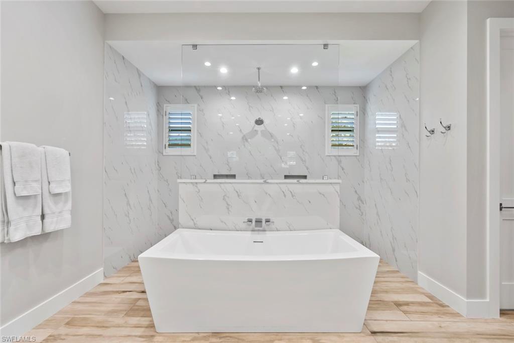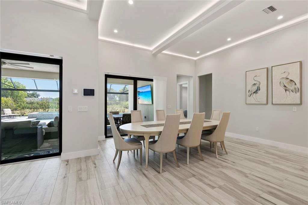 Experience luxury living in this stunning new construction corner residence located in the highly sought-after Four Seasons community, right in the heart of town. Perfectly positioned on nearly an acre of land, this property offers exceptional privacy and the rare opportunity to add additional structures, making it ideal for a guest house, gym, or studio. Inside, the gourmet kitchen showcases top-of-the-line appliances, a butler’s pantry, and elegant finishes designed for both functionality and style. The formal dining area features a glass-enclosed wine display, while the spacious living room centers around a sleek electric fireplace, creating the perfect setting for relaxation and entertaining. With five bedrooms plus a den, this home provides ample space for family and guests. The primary suite is a true sanctuary, designed with sophistication and comfort in mind. Spacious and filled with natural light, it features direct access to the outdoor living area through sleek sliding glass doors. The spa-inspired bathroom boasts dual vanities, a freestanding soaking tub, and an oversized glass shower surrounded by designer porcelain til creating a serene, resort-like ambiance. A custom walk-in closet with extensive built-ins offers impeccable organization and style, providing the perfect finishing touch to this private retreat.The outdoor living area is equally impressive, boasting an expansive screened lanai, a second fireplace, and a fully equipped outdoor kitchen perfect for year-round gatherings. Technology and security are built into every detail. The home includes a Luma surveillance system with full-color night vision, a Wi-Fi 7 Eero mesh network capable of supporting hundreds of devices, and pre-wiring for 10-gigabit speeds. It’s also integrated with a Ring security system, offering the ultimate peace of mind. This exceptional residence blends modern luxury, cutting-edge technology, and timeless design—all in one of the most central and desirable locations in town.