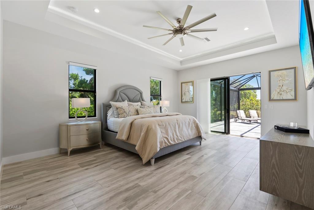 Discover this beautiful spacious home in the highly sought-after Four Seasons neighborhood in North Naples. Situated on almost 1 acre, this stunning property offers privacy, convenience and an unbeatable Florida lifestyle—all with no HOA fees! Step outside to your expansive south-facing lanai, where a heated pool and hot tub with LED lighting await. New roof and impact windows installed in 2021. The caged outdoor oasis is perfect for relaxing or entertaining year-round. Inside, the home boasts two master suites with split-bedroom design, ideal for multi-generational living or hosting guests. The kitchen is a chef’s dream, featuring an oversized island with exotic granite, a wine fridge, and a cozy eating area. All this, just minutes from Naples’ beautiful beaches, top-rated schools and fine dining.