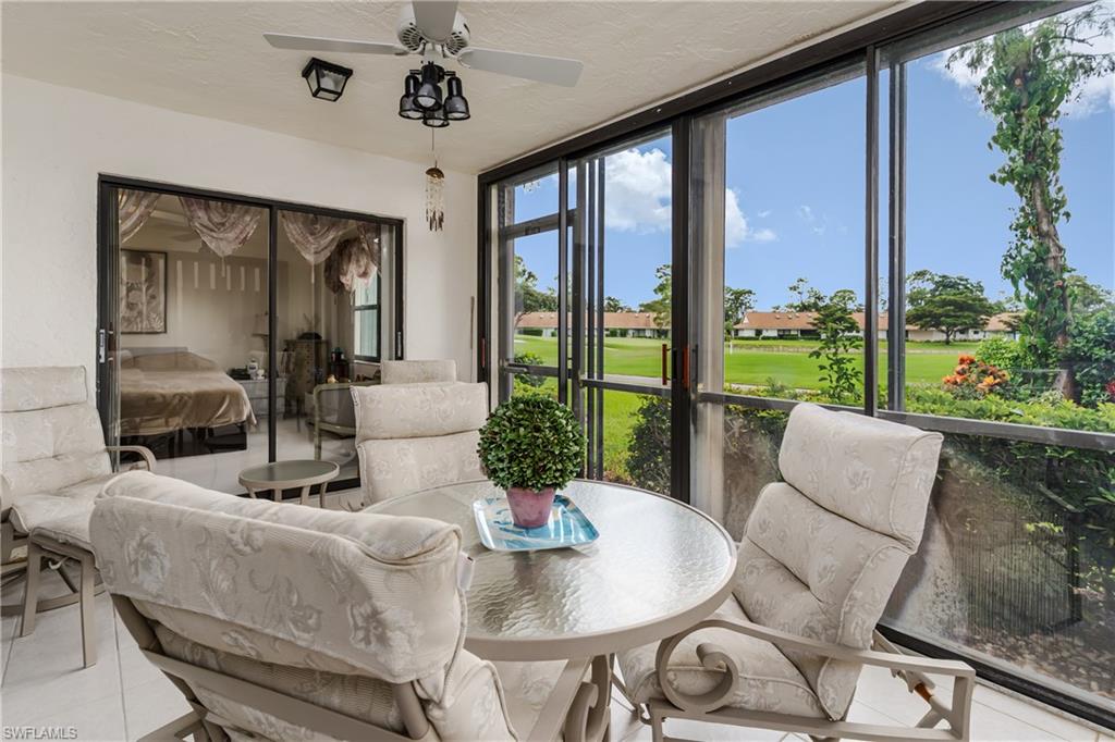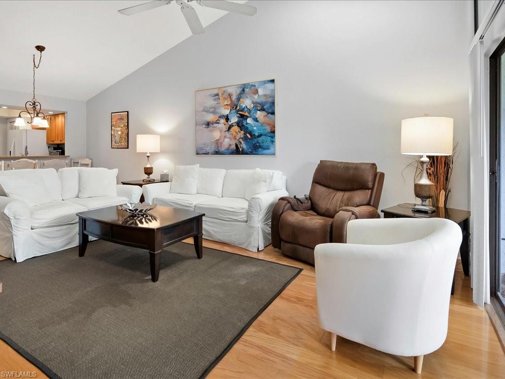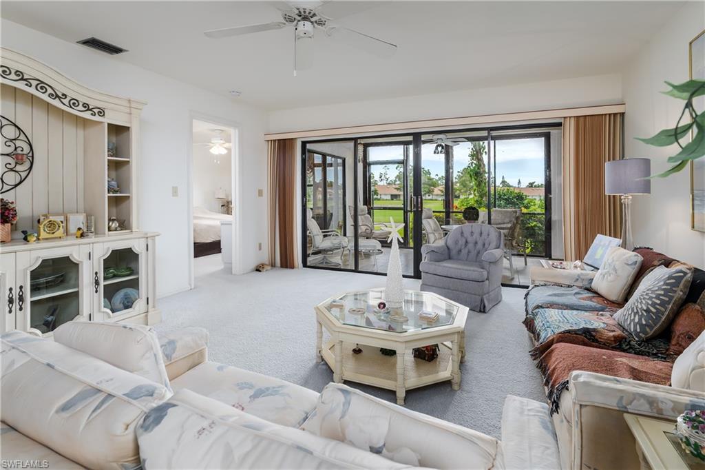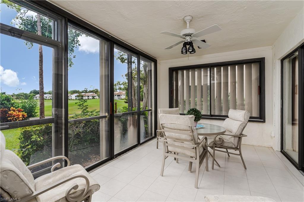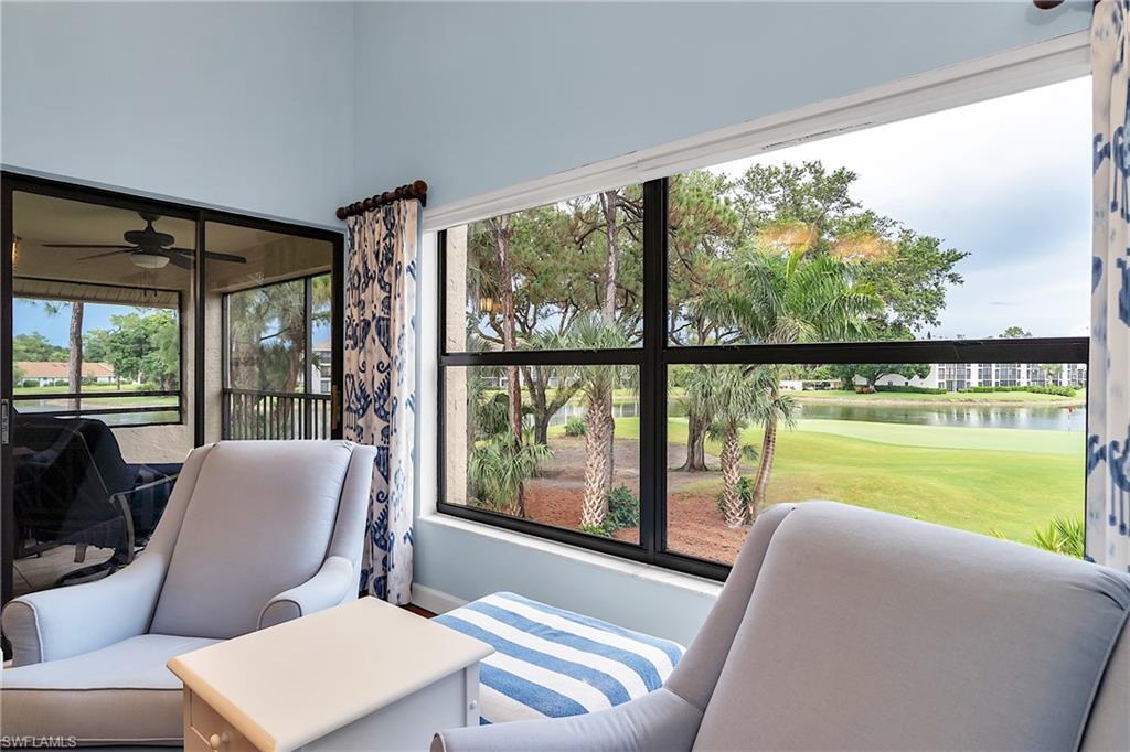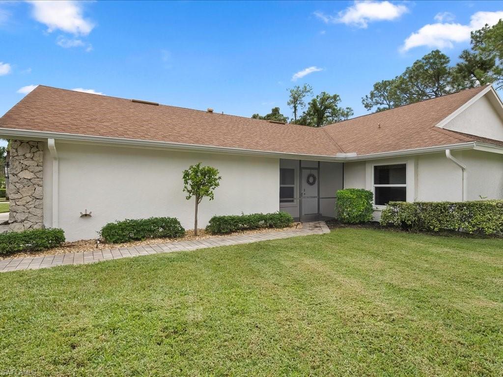Rare 3BR 2Bath end unit Villa with 2 car attached garage overlooking 6th fairway on the Blue Course at Foxfire CC. Turnkey furnished and beautifully appointed with newer heating and A/C, new roof and skylights Dec. 2016, exterior painted 2025, paver driveway. Electric storm shutter on lanai, newer hurricane rated windows, updated walk-in shower in primary bedroom, updated guest bath with higher comfort toilet, newer vanity and medicine cabinet, custom shelving in primary BR, updated kitchen cabinets with granite counters, custom shelving in kitchen, wood floors LR/DR, newer Maytag washer and dryer. 27 holes Arthur Hills championship golf with no initiation fee! New fitness center (2024). Full service restaurant, Pro Shop, driving range, putting greens, practice sand trap area, bocce courts, Har-Tru tennis courts and lap pool. 5 miles from downtown 5th Ave. with restaurants, live theater, and pristine Gulf beaches. 30 minutes to Regional SW FL airport, close to I-75 No. and So. Close to Marco Island.