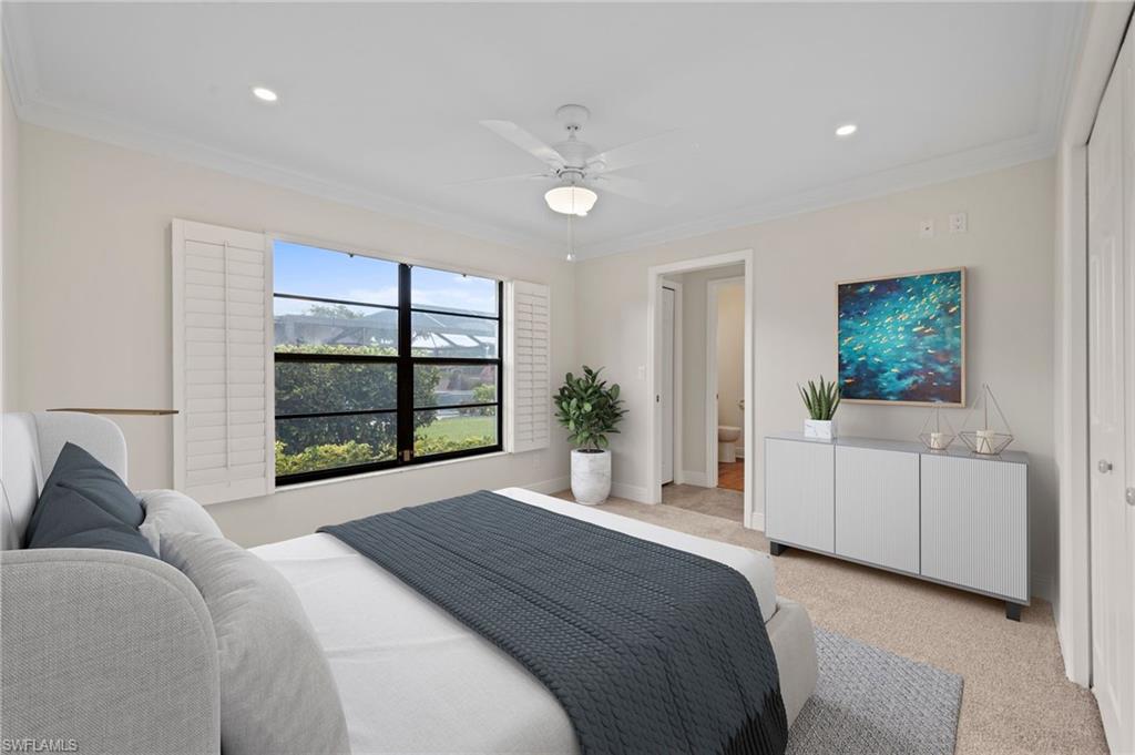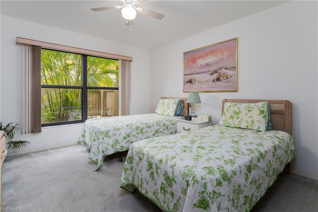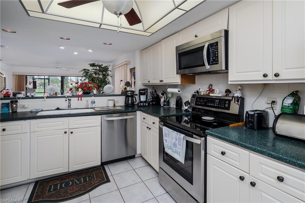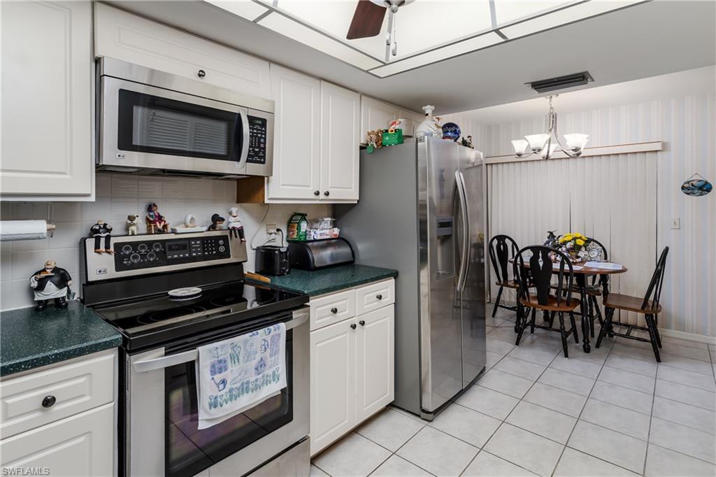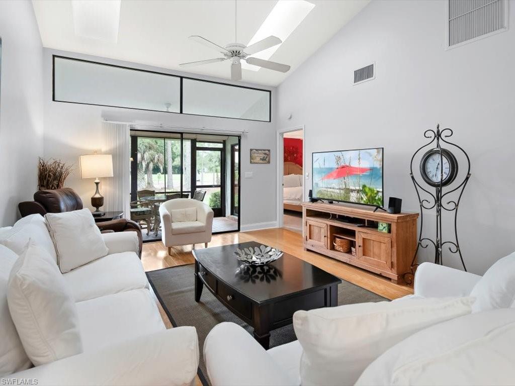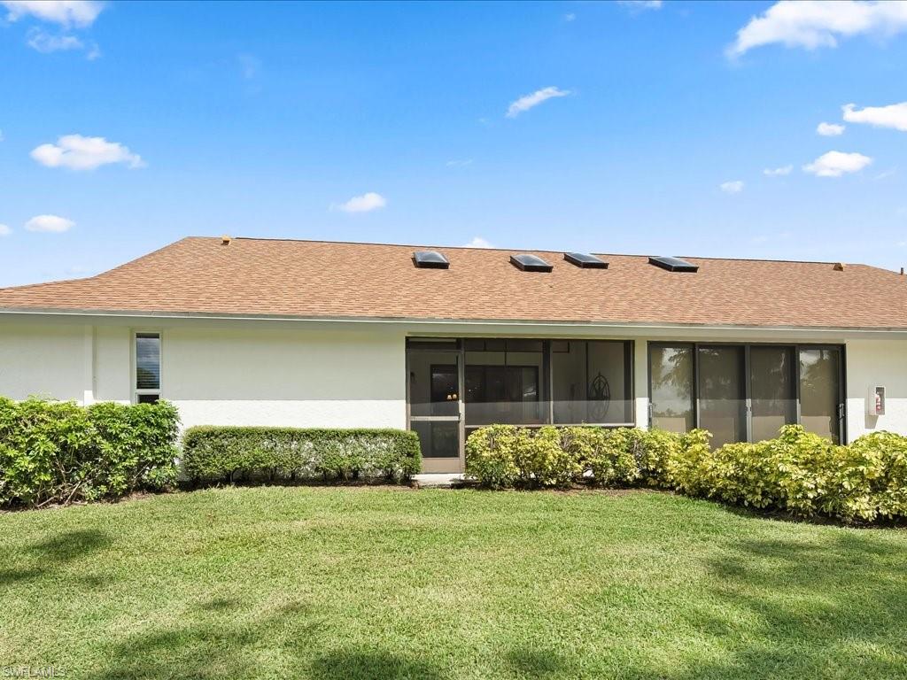 Rare 3BR 2Bath end unit Villa with 2 car attached garage overlooking 6th fairway on the Blue Course at Foxfire CC. Turnkey furnished and beautifully appointed with newer heating and A/C, new roof and skylights Dec. 2016, exterior painted 2025, paver driveway. Electric storm shutter on lanai, newer hurricane rated windows, updated walk-in shower in primary bedroom, updated guest bath with higher comfort toilet, newer vanity and medicine cabinet, custom shelving in primary BR, updated kitchen cabinets with granite counters, custom shelving in kitchen, wood floors LR/DR, newer Maytag washer and dryer. 27 holes Arthur Hills championship golf with no initiation fee! New fitness center (2024). Full service restaurant, Pro Shop, driving range, putting greens, practice sand trap area, bocce courts, Har-Tru tennis courts and lap pool. 5 miles from downtown 5th Ave. with restaurants, live theater, and pristine Gulf beaches. 30 minutes to Regional SW FL airport, close to I-75 No. and So. Close to Marco Island.