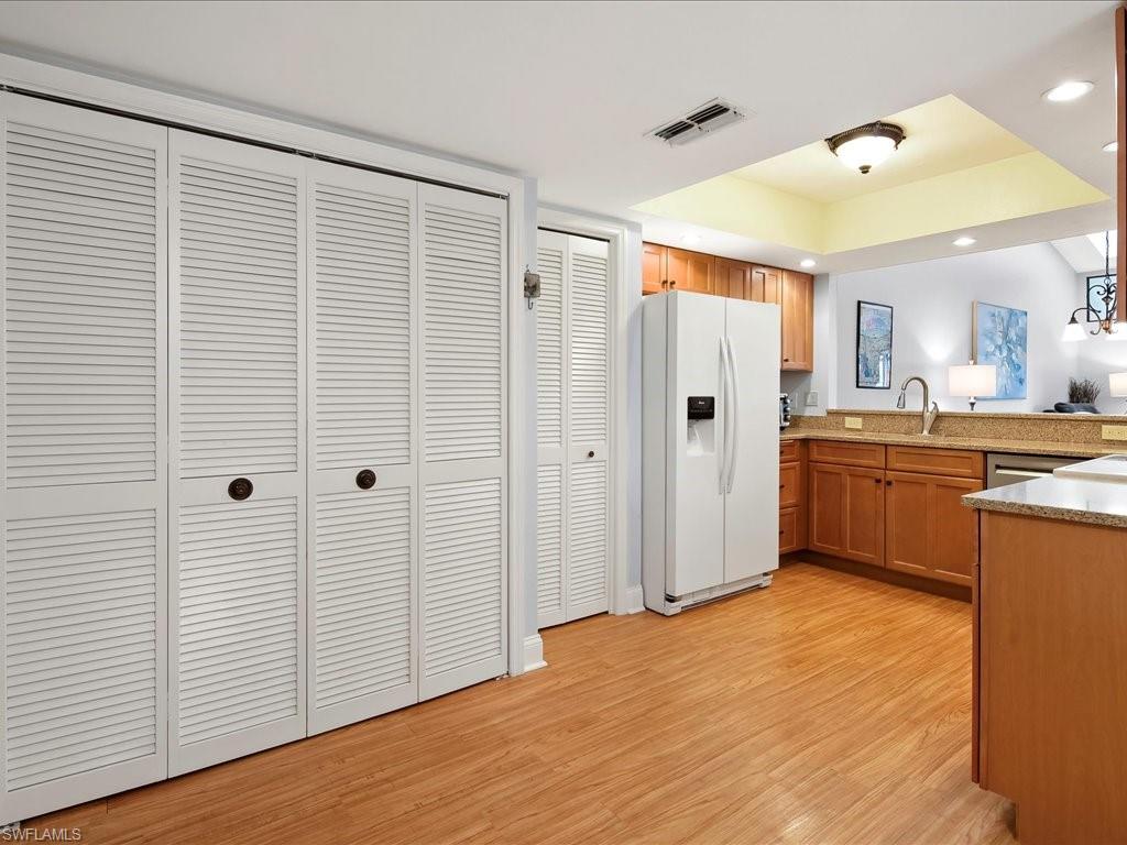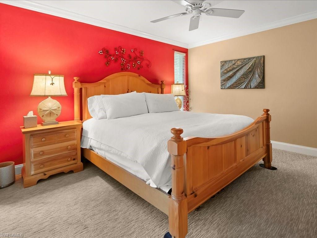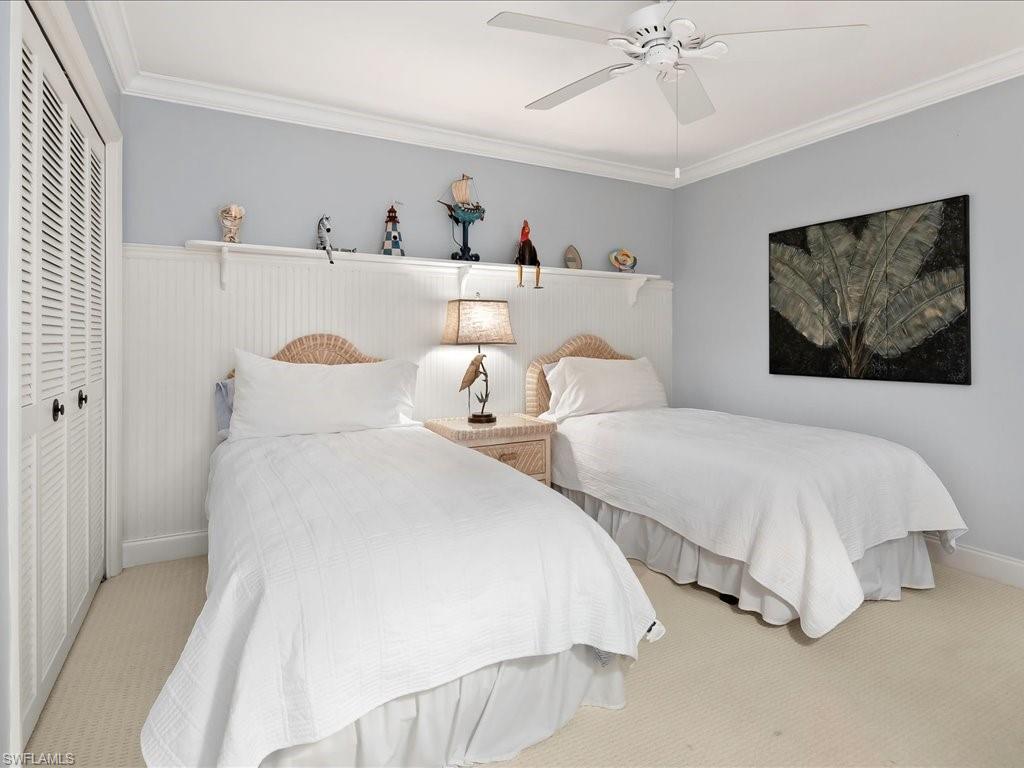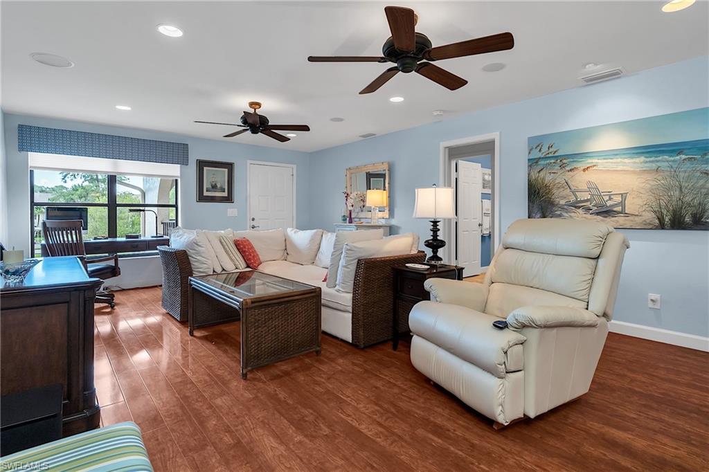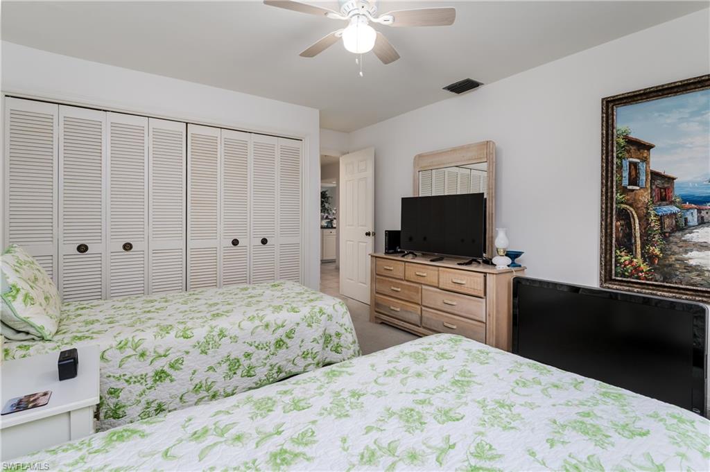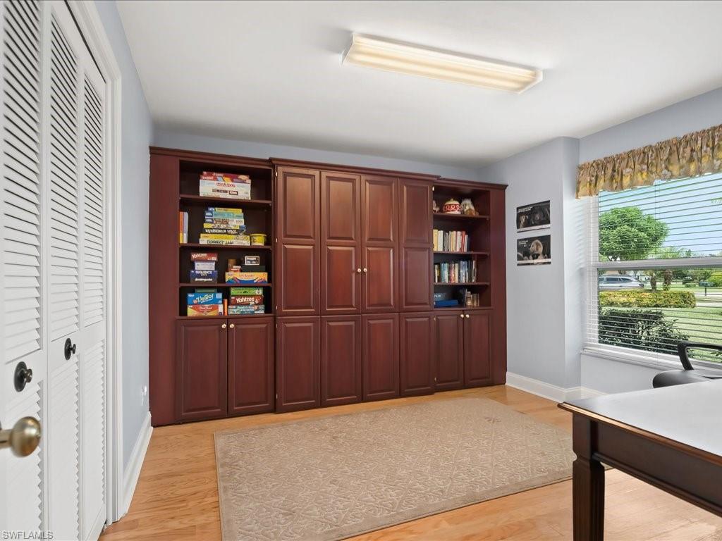 Rare 3BR 2Bath end unit Villa with 2 car attached garage overlooking 6th fairway on the Blue Course at Foxfire CC. Turnkey furnished and beautifully appointed with newer heating and A/C, new roof and skylights Dec. 2016, exterior painted 2025, paver driveway. Electric storm shutter on lanai, newer hurricane rated windows, updated walk-in shower in primary bedroom, updated guest bath with higher comfort toilet, newer vanity and medicine cabinet, custom shelving in primary BR, updated kitchen cabinets with granite counters, custom shelving in kitchen, wood floors LR/DR, newer Maytag washer and dryer. 27 holes Arthur Hills championship golf with no initiation fee! New fitness center (2024). Full service restaurant, Pro Shop, driving range, putting greens, practice sand trap area, bocce courts, Har-Tru tennis courts and lap pool. 5 miles from downtown 5th Ave. with restaurants, live theater, and pristine Gulf beaches. 30 minutes to Regional SW FL airport, close to I-75 No. and So. Close to Marco Island.
