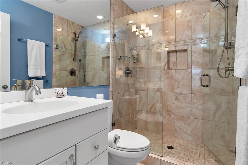 LOCATION LOCATION!!!!!LIVE A VACATION LIFESTYLE IN FOXFIRE! FULL GOLF MEMBERSHIP INCLUDED! Fully Renovated 3 Bed 2 Bath Single-Family POOL w/SPA located minutes to downtown 5th Avenue! Highly sought after community of Foxfire! NO CDD, NOT IN FLOOD ZONE, 2022 ROOF & Skylights over covered Lanai, 2022 HURRICANE WINDOWS & DOORS, community 2022 AC, 2023 Travertine Pool Deck & Pool w/New Pebble Tech finish & Glass Pool Tiles, 2022 Pool Pump, 2021 Pool Heater, 2021 Pentair Pool Control System w/bluetooth capabilities, 2022 Whirlpool Washer & Dryer, 2024 Paver Driveway, 2023 White Plantation Shutters, 2022 Entire House Painted, 2023 New Landscaping & ring cameras for peace of mind & more! MOVE IN READY! On a cul-de-sac, with every inch of this property being thoughtfully renovated to offer the ultimate in LUXURY LIVING with the perfect blend of Relaxation & Recreation. Open-floor Plan, vaulted ceilings, luxury vinyl flooring throughout! Whether you're lounging by the pool, perfecting your golf swing, or cooking up a meal in this DREAM kitchen this home has it all! Upgraded high-end stainless appliances: Frigidaire Full size Refrigerator Freezer, Kitchen-Aid Wall Microwave, Wall Oven & Induction Cook-Top w/extended warranties, Bosch Dishwasher. Custom finishes throughout, nothing has been un-touched. Luxury Master Suite w/Large Walk-in Closet with sliding barn door & custom shelving, luxurious en-suite bath. 2nd bedroom w/en-suite bath. Private Backyard w/screened-in Lanai, gorgeous Pool/Spa w/southern exposure providing the ultimate in relaxation & entertaining space for family & friends. Enjoy your very own fruit trees; lemon, orange & avocado, lime & grapefruit. HOA fees include golf, amenities, cable internet/WIFI. FOXFIRE Golf & Country Club is an elevated amenity-rich community, you'll enjoy access to 27 holes of Arthur Hills Golf, golf immediately, tennis, bocce, library, putting greens, a NEW state of the art fitness center, social activities, pool & full-service restaurant, Foxlair Grille & Bar & the Halfway House w/no food minimum. Golf instruction & clinics are available from FOXFIRE PGA Professionals & Associates to golfers of all levels. Excellent location just 7 minutes to downtown 5th Avenue; upscale shopping, dining, entertainment, boating, fishing, white sandy Naples beach, Tin City & Bayfront. Short walk to the Kings Lake Plaza w/Publix, Starbucks, Tacos & Tequila, Aldos, Nail & Hair Salon & more! Schedule your private showing of this gorgeous property!