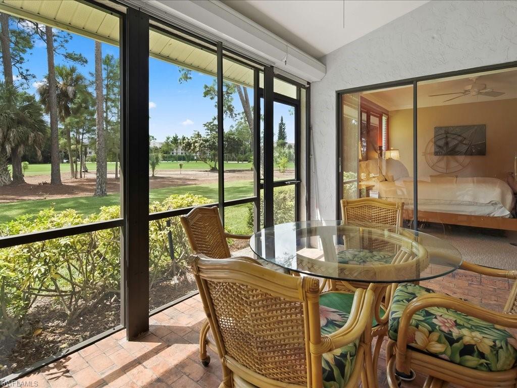 Nestled within lush Florida Pines and a beautiful golf course you'll find tranquility and peace in Foxfire, a bundled golf community!! Enjoy beautiful views from your cozy back porch in this rare end unit which also offers a quaint den which can easily be converted into a 3rd bedroom! Enjoy the outdoors on your screened in cozy front porch or your private courtyard area or the back porch!! Also, a one car garage directly in front of the property!! There is also plenty of parking for your guests! This particular subdivision has its own pool! The beach is only a 12 minute drive!! Foxfire has a beautiful 27 hole Arthur Hills designed golf course and a recently renovated clubhouse and pool! One of the the lowest priced golfing games in Naples! The clubhouse has a nice gym, bocce ball, three tennis courts, large swimming pool and a bar & grill and fine dining and a LOT of social events!!