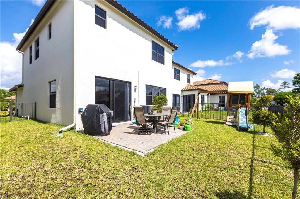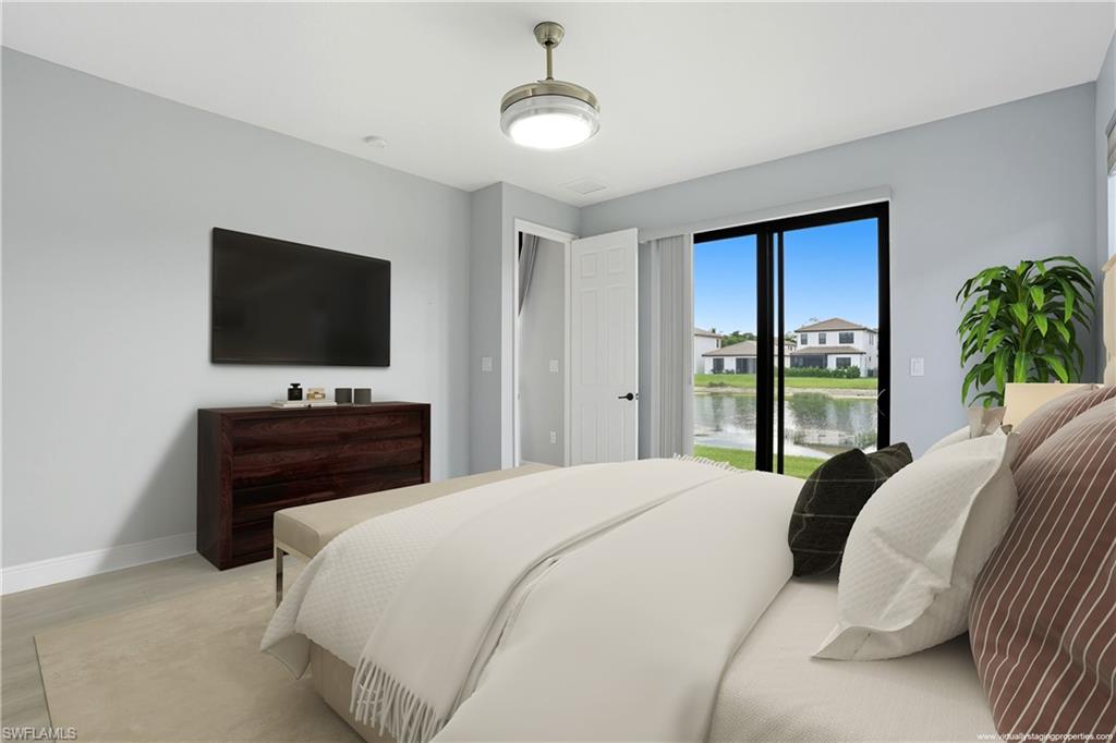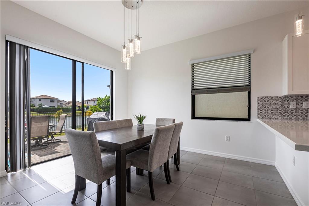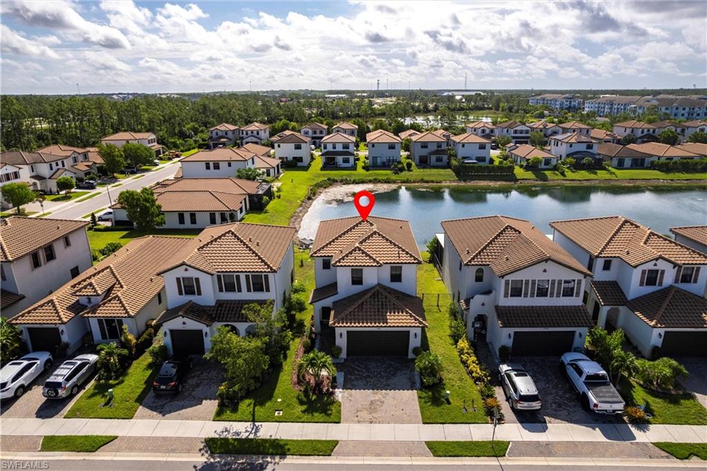 Welcome to your beautifully upgraded 3-bedroom, 2.5-bath water front single family home in sunny Naples, Florida—perfectly situated in a quiet, gated community with exceptionally low HOA fees. This freshly painted move-in-ready residence offers the best of Florida living, featuring a bright and airy open floor plan with soaring 10’ ceilings, and ceramic tile throughout the first floor. The kitchen is equipped with quartz countertops, stainless steel appliances, quiet-close cabinetry, and under-cabinet lighting, creating a modern and functional space for everyday living or entertaining. Enjoy peace of mind with impact glass windows, hurricane shutters, a durable Mediterranean style tile roof, and low insurance premiums with no flood zone requirements. Step outside to your private outdoor oasis—a fully fenced backyard with extended pavers, large side yard and relaxing views of the community pond, offering both privacy and beauty. Fronterra’s amenities include a resort-style pool with cabana, exterior irrigation, and lawn service—all covered by the incredibly low association fees. Don’t miss this exceptional opportunity!