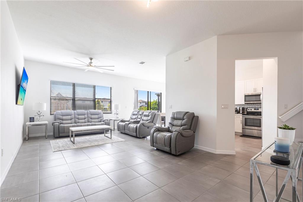 Priced to Sell in Fronterra! Welcome to this charming two-story single-family home in the desirable gated community of Fronterra. Offering over 1,700 sq. ft. of living space, this 3-bedroom, 2.5-bath residence features an open-concept floor plan designed for comfort and convenience. Step inside to find expansive ceiling heights, elegant 8-foot doors, and a spacious living and dining area. The kitchen is beautifully appointed with stainless steel appliances, quartz countertops, and custom wood cabinetry. A bonus storage closet near the garage adds practicality to the thoughtful layout. The home showcases freshly painted interior, newly installed tile floors throughout living room and kitchen, crafted wood plank flooring on second floor, whole house "Puronics" water filtration system, and a 2018 barrel tile roof. Enjoy outdoor living in the fully fenced backyard—perfect for relaxing or entertaining. A pavered driveway and attached one-car garage complete the picture. Fronterra is a pet-friendly community of only 145 residences, offering residents a sparkling pool, low HOA fees, and a quiet neighborhood feel. Conveniently located just minutes from I-75, downtown Naples, shopping, dining, and recreation. The Great Wolf Lodge indoor waterpark & Paradise Sports Complex—less than 10 minutes away—will bring even more excitement to the area. Whether you’re searching for a primary residence, vacation getaway, or investment opportunity with rental potential from day one, this home offers outstanding value and accessibility.