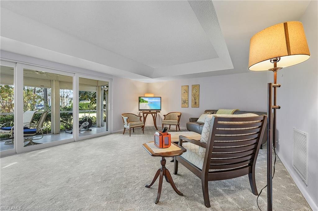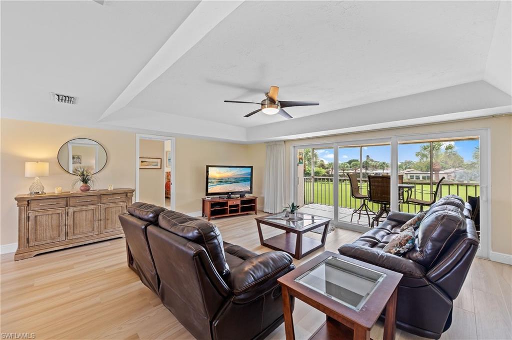 Your sunny slice of paradise awaits you! This coveted, Sunrise IV stellar location boasts sweeping views toward the 18th fairway. Bright and spacious kitchen features light cabinetry, stylish granite counters, double stainless steel sink, recessed lighting, bartop seating. The dining area easily accommodates formal dining. Desirable open concept living area highlights the extraordinary views throughout and provides indoor /outdoor flow from the spacious screened lanai. New 2025 A/C cooling and heating system. Relax or entertain from your private patio. Love where you live and enjoy the ultimate Naples lifestyle which this community proudly offers. Here you'll have an array of activities including; 2 golf courses, 9 pools, 12 pickleball courts, 6 clay tennis courts, shuffleboard and bocce courts, library, 19th Hole onsite restaurant, water aerobics and yoga. The grand clubhouse with bar area is the ideal place to gather and socialize. Enjoy events year-round such as; bingo, cards, karaoke, dinners and dances. Whether a full time or part time resident, you'll love the active or leisurely lifestyle The Glades Golf and Country Club provides! Investors find the rentability attractive. All this and ideally situated just a 10 minute drive from downtown, fine dining on 5th Ave., famed Naples sugar sand beaches and dreamy sunsets. This is the place to be if you want to live like you re on vacation every day!