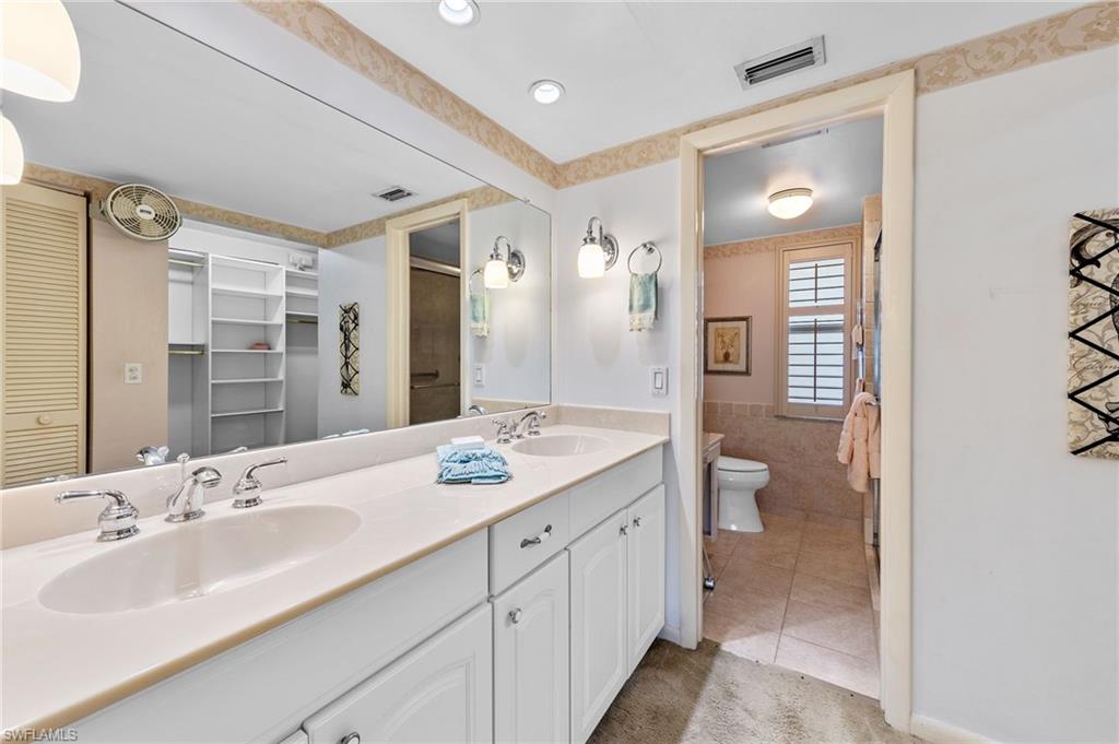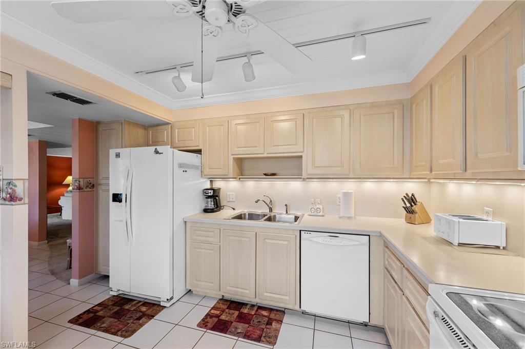 Welcome to The Glades Golf & Country Club—where resort-style living meets everyday comfort! Spacious 1,623 sq. ft. first-floor, end unit “Louisiana” model is one of the largest floor plans in the community and is offered turnkey, move-in ready. This 2-bedroom, 2-bath condo is just steps from the section pool and features an updated kitchen with track lighting, updated vanities, and a beautifully remodeled, tiled walk-in shower in the primary suite. Enjoy the Florida lifestyle from the large screened lanai, perfect for relaxing or entertaining. Lanai also has a storage closet. Major updates include electric storm shutters on lanai (2018), new A/C (June 2024) and Hot Water Heater (2018) for peace of mind. Experience the unmatched amenities of The Glades, including 2 newly redesigned golf courses, 9 community pools, 12 new pickleball courts, tennis, bocce, library, art room, card games, bingo, clubhouse, pro shop, and the popular 19th Hole Restaurant. All just minutes to 5th Avenue South’s premier shopping & dining and the world-famous Naples beaches. Come live in paradise!