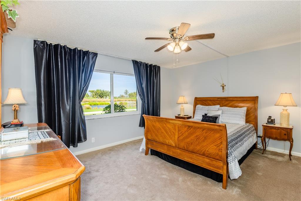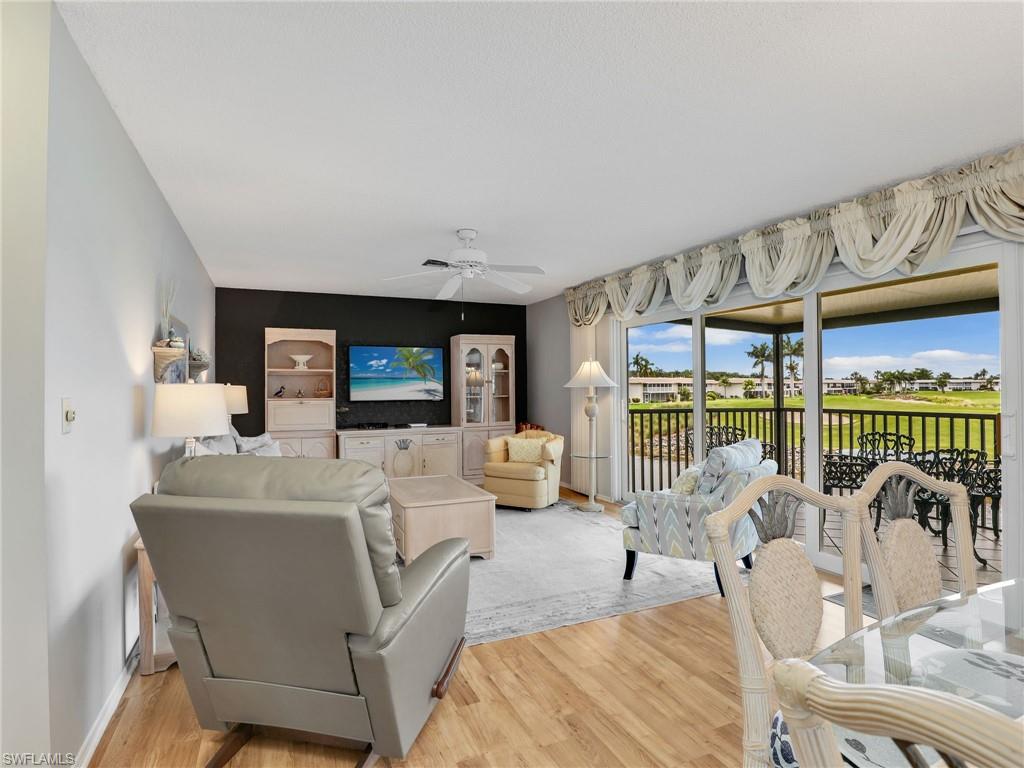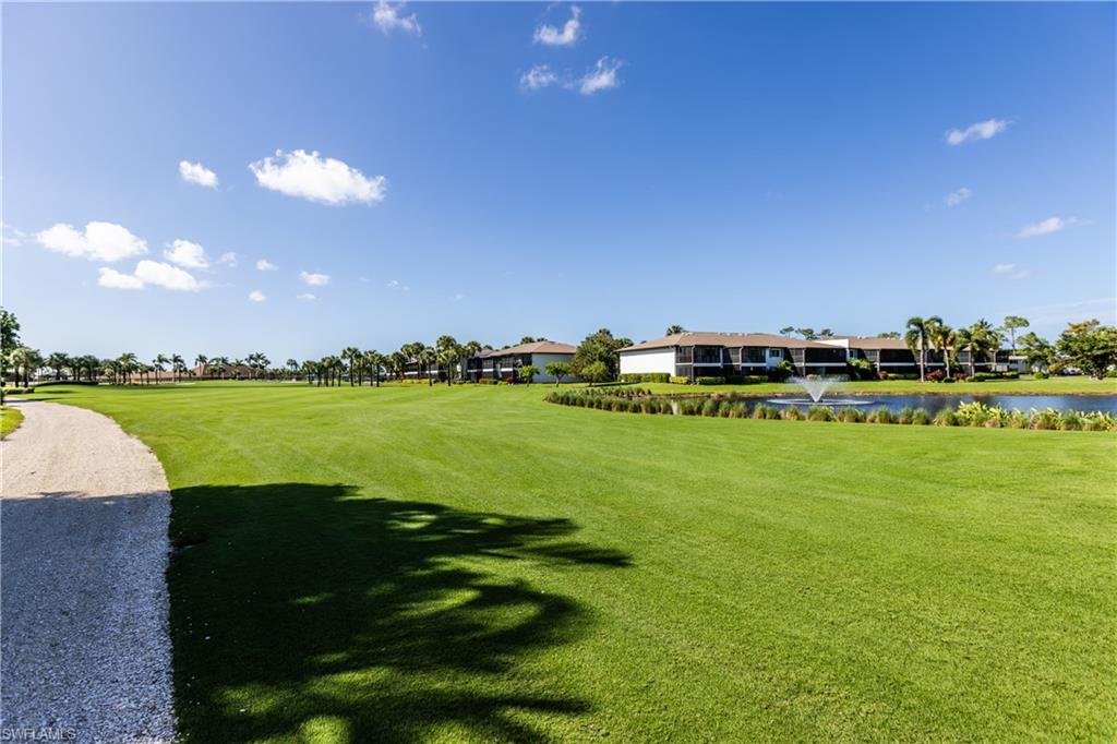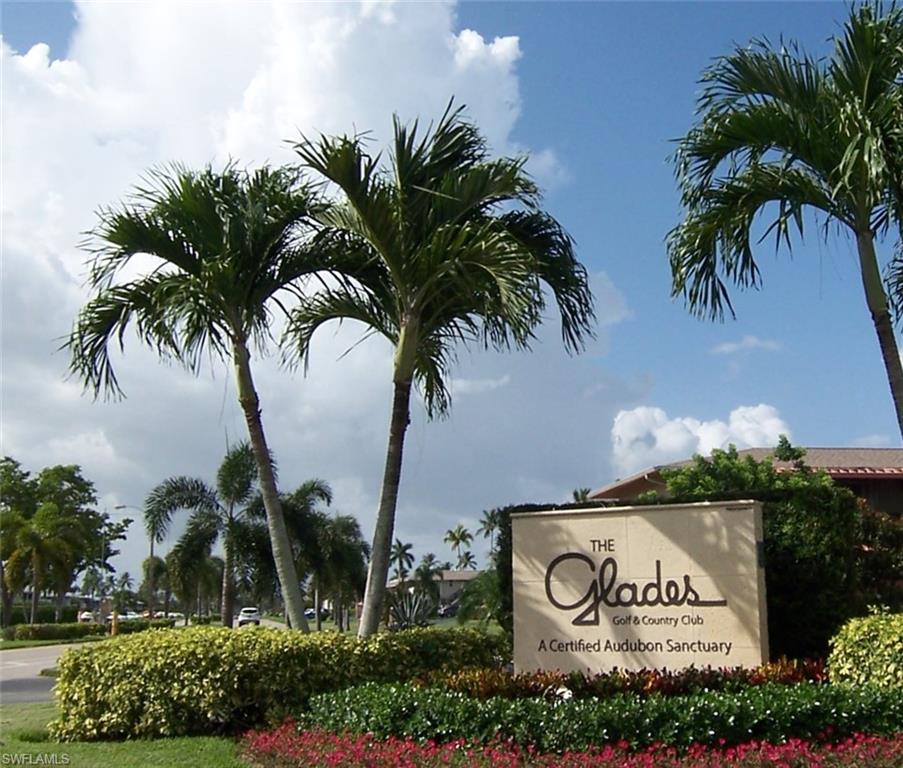 MOTIVATED SELLER-bring an offer! Desirable First Floor condo with a beautiful wide views of the 18th Fairway, lake and fountain of the Pines Golf Course. VERY SHORT WALKING DISTANCE TO CLUBHOUSE! Glades Golf & Country Club is the best kept secret in Naples with unlimited bundled golf! This 2 BR, 2 BA Esplanade model has a roomy 1,403 SF and large lanai with shutters so you do not have to bring furniture in! Impact glass! New flooring and carpet. Freshly painted. New television, fans and lighting. New honeycomb window shades. Newer AC with an ultraviolet purifier. Both bathrooms have newer tile and newer vanities. The Glades has two recently renovated Audubon Certified, Gordon Lewis designed golf courses- the Pines par 70 course and Palmetto par 55 course. The beautiful clubhouse has been also recently renovated and has an active social calendar. The tennis courts have been upgraded & expanded to include eight pickleball courts! There are 8 neighborhood pools plus a beautiful club house pool, bocce & shuffleboard. The Glades is minutes to 5th Avenue & Beaches. The private clubhouse has delicious food for breakfast, lunch & dinner. $980/month dues INCLUDE unlimited golf for two, tennis, pickleball & other activities, clubhouse/restaurant, cable & wifi, water, & pest control.