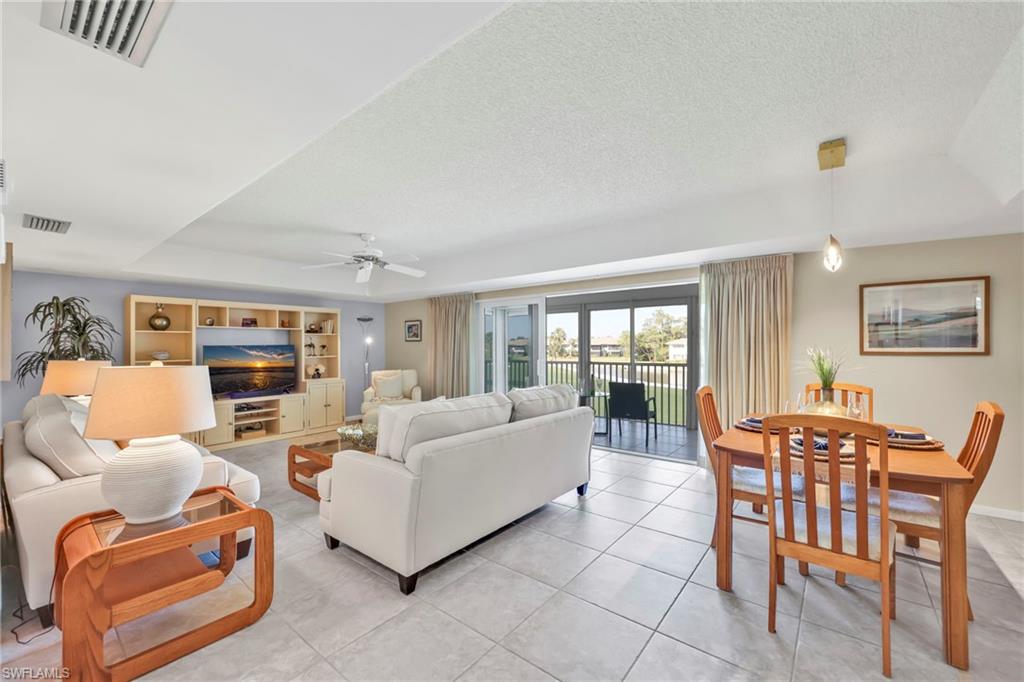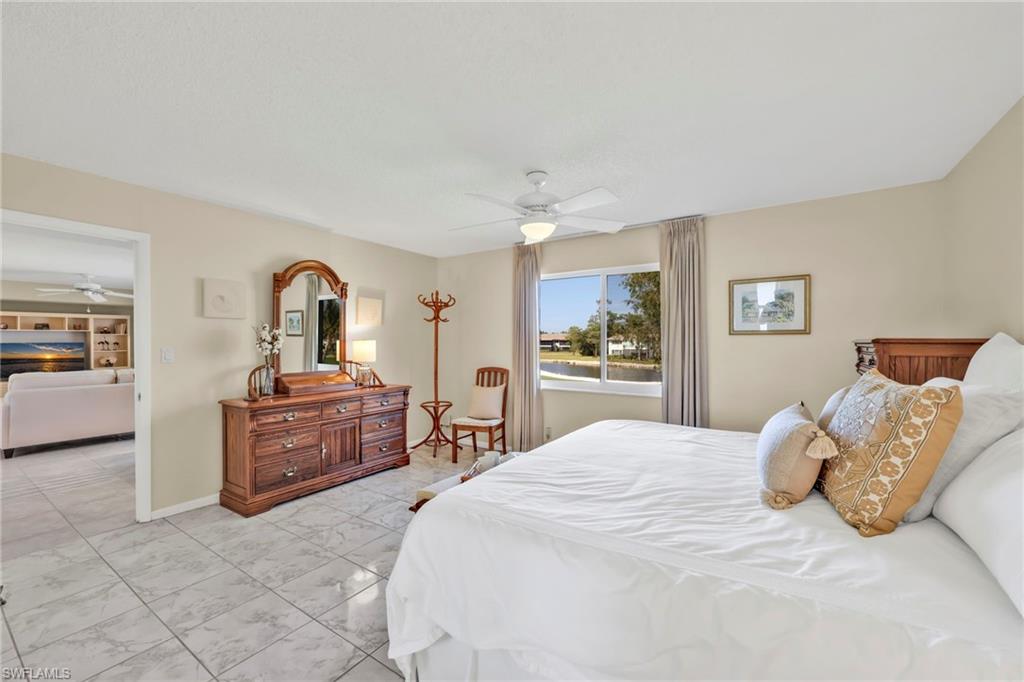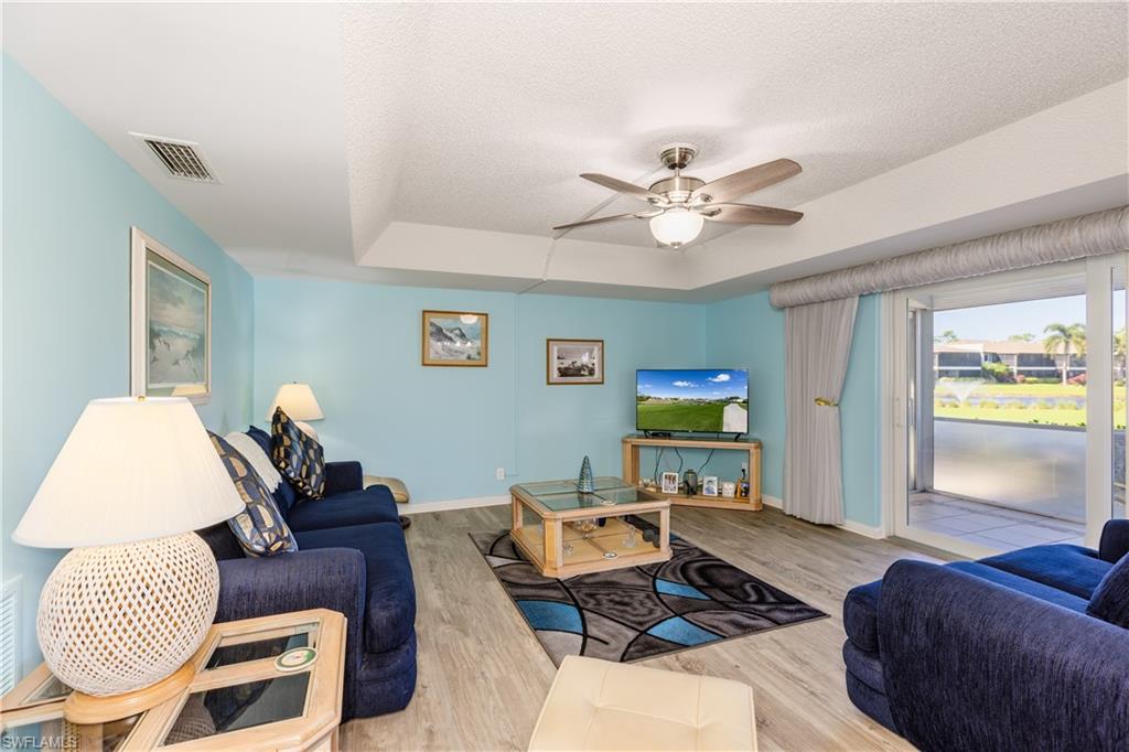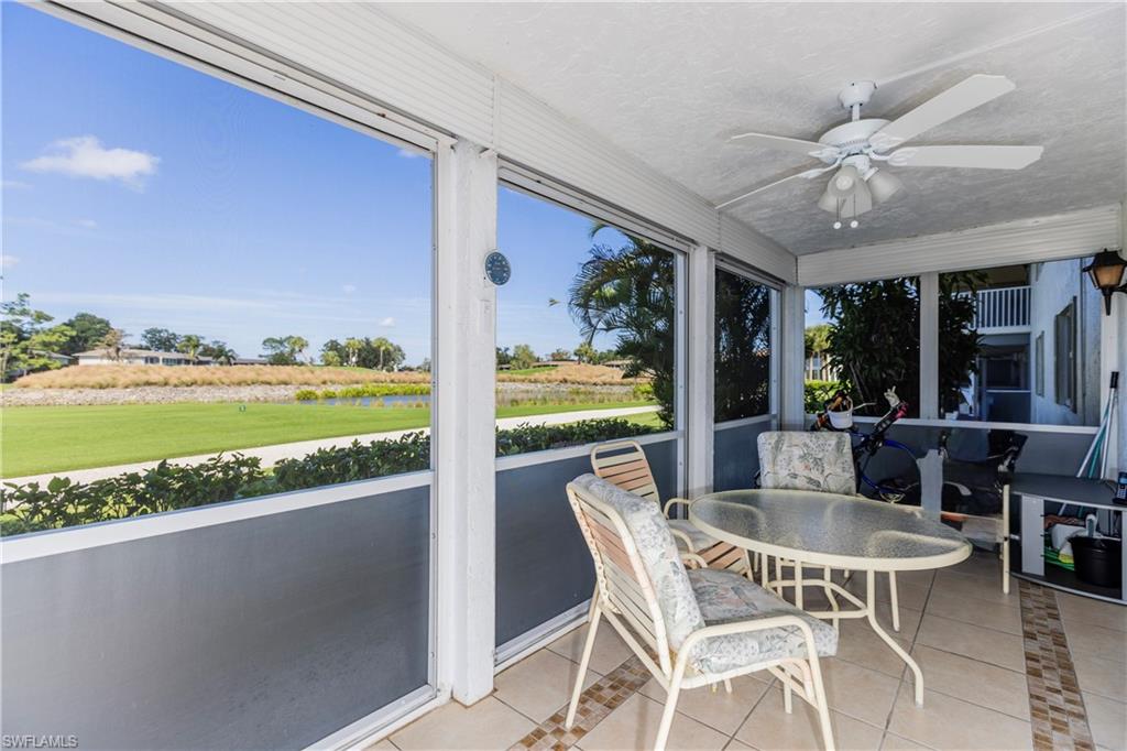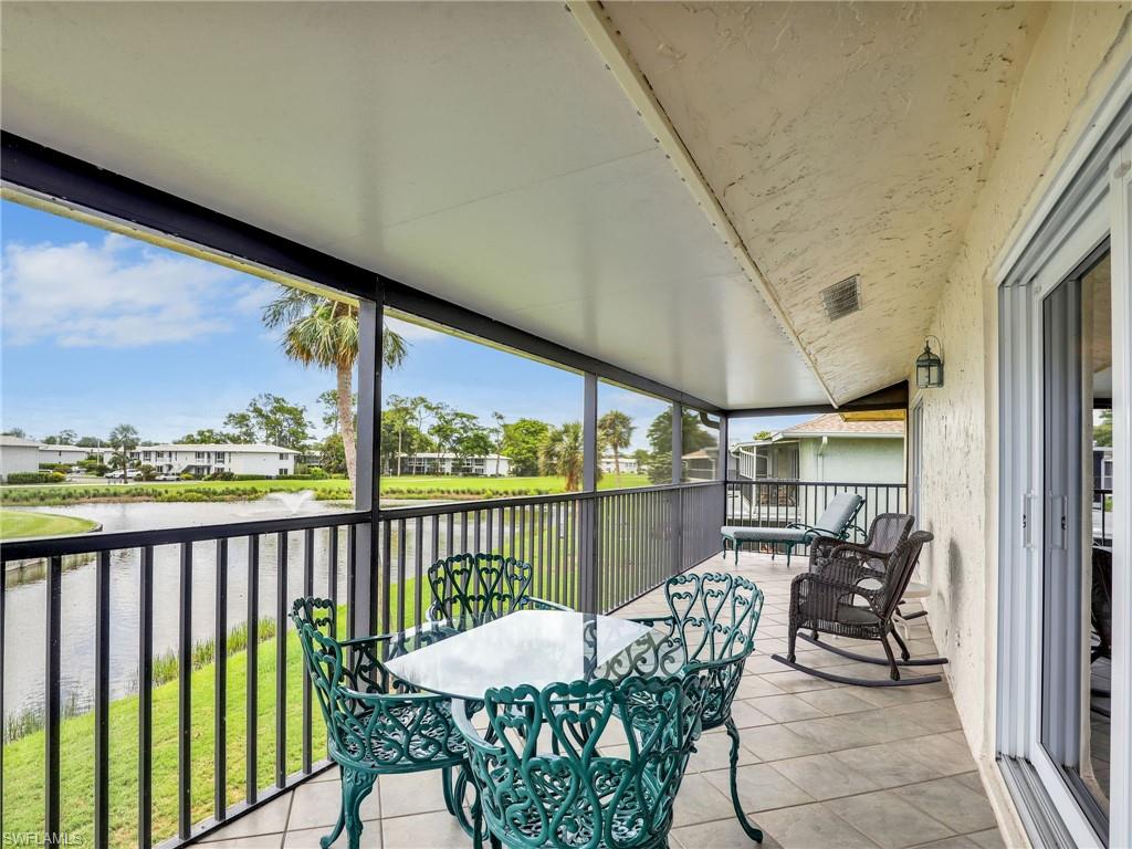 Discover this charming 2-bedroom, 2-bath waterfront home, offering stunning views of the lake and golf course with an abundance of natural light thanks to its sunny southern exposure. Two outdoor patios and a spacious enclosed lanai with oversized windows provide the perfect setting to enjoy breathtaking sunsets over the lake. The interior features bright, inviting finishes throughout, including an upgraded kitchen and bathrooms, and floors. Just around the corner from the clubhouse, you'll have access to top-tier amenities such as newly added pickleball courts, tennis courts, two golf courses, a putting green, and multiple pools. Located in the desirable Glades Country Club, this home is ideally positioned near all that Naples has to offer. Whether you're seeking a warm seasonal retreat, rental income, or a full-time residence, this property presents an excellent opportunity to enjoy an active, vibrant lifestyle in one of Naples’ most coveted communities. Monthly dues cover internet, cable, roof maintenance, repairs, exterior painting, landscaping, security, pest control, and more.