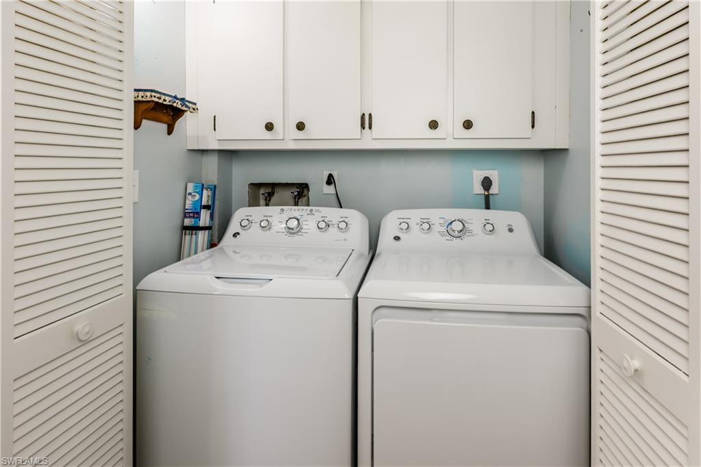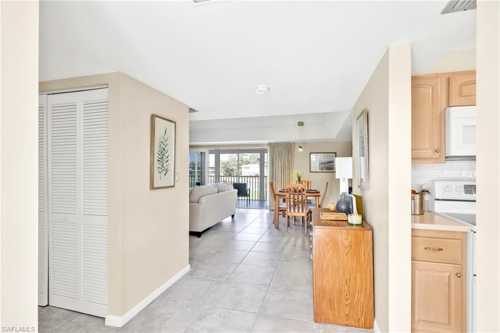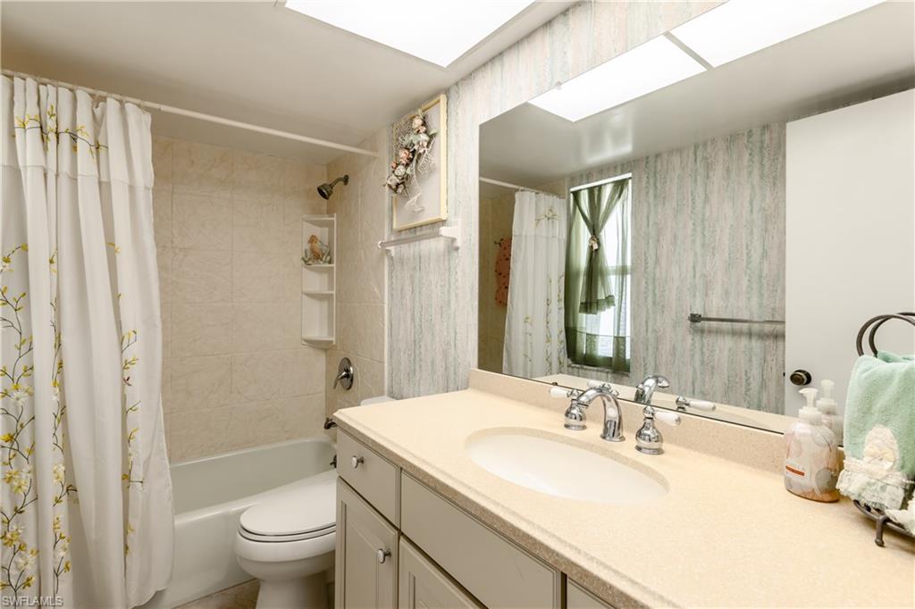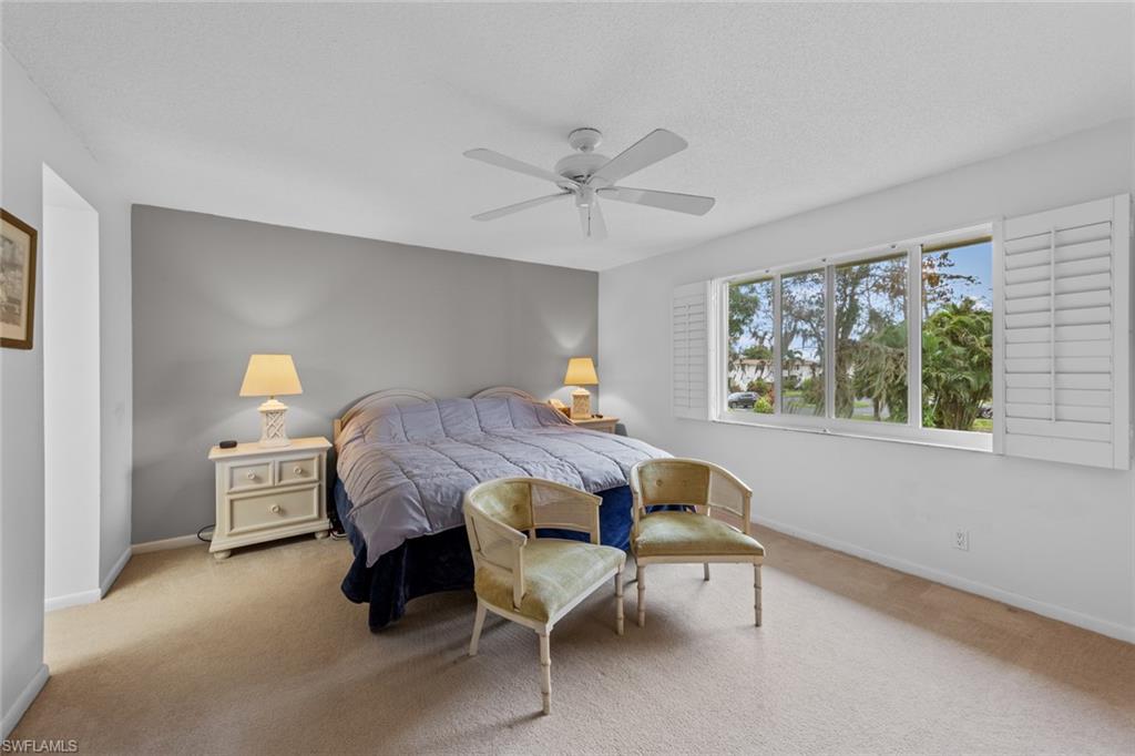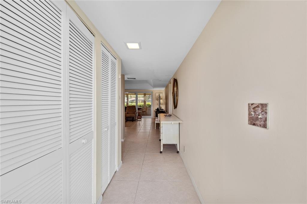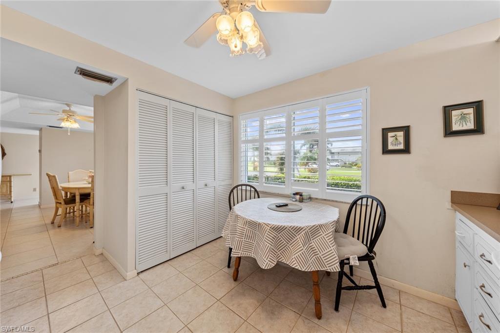 Say hello to this fully turnkey 2-bedroom, 2-bathroom Spanish-style villa with all the updates you’ve been hoping for. Inside, you’ll find a fully renovated kitchen with soft-close wood cabinets and a butcher block countertop, plus new electrical, new plumbing, fresh paint, updated vanities, and stylish vinyl flooring throughout. This villa offers exceptional storage—with two outdoor spaces for your golf clubs, beach chairs, and bikes, an oversized walk-in closet, and three additional linen-style closets to keep everything organized and out of sight. Comfort comes easy with ceiling fans in every room, a smart thermostat, keypad entry, and an ADT security system. Step outside to the wrap-around lanai, a private retreat perfect for lounging, entertaining, or simply enjoying the breeze. This unit is steps away from the 19th Hole Restaurant (dine in or carry out), golf shop and main pool area. In the Glades, you’ll have access to two walkable golf courses for exercise, or you can ride for fun (par 55 and par 70), along with pickleball, tennis, bocce, shuffleboard, and 10 community pools. A cozy library, art classes, bingo, dinner dances, cards, karaoke, and more; The maintenance fees cover golf green fees, water, sewer, trash, WIFI, cable, pest control, and more. Plus, you’re minutes to shopping, restaurants, downtown 5th Avenue in Naples, and the Gulf beaches — so whether you’re unwinding, staying active, or exploring, it’s all within easy reach. Don't miss out on this updated, move-in ready villa, set in a community where there’s always something to do.