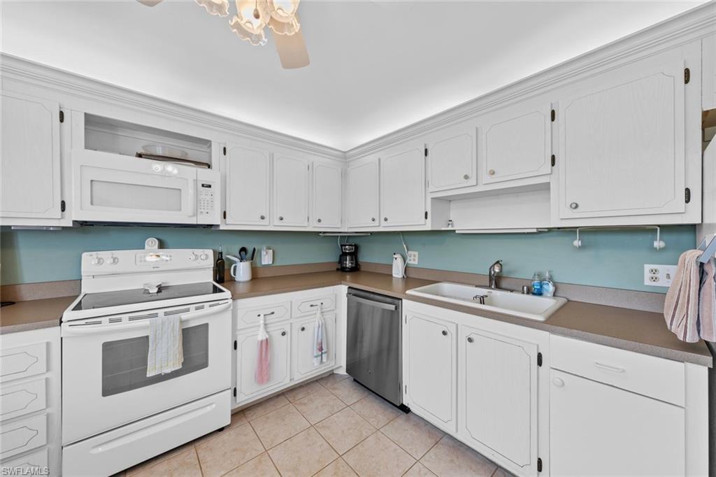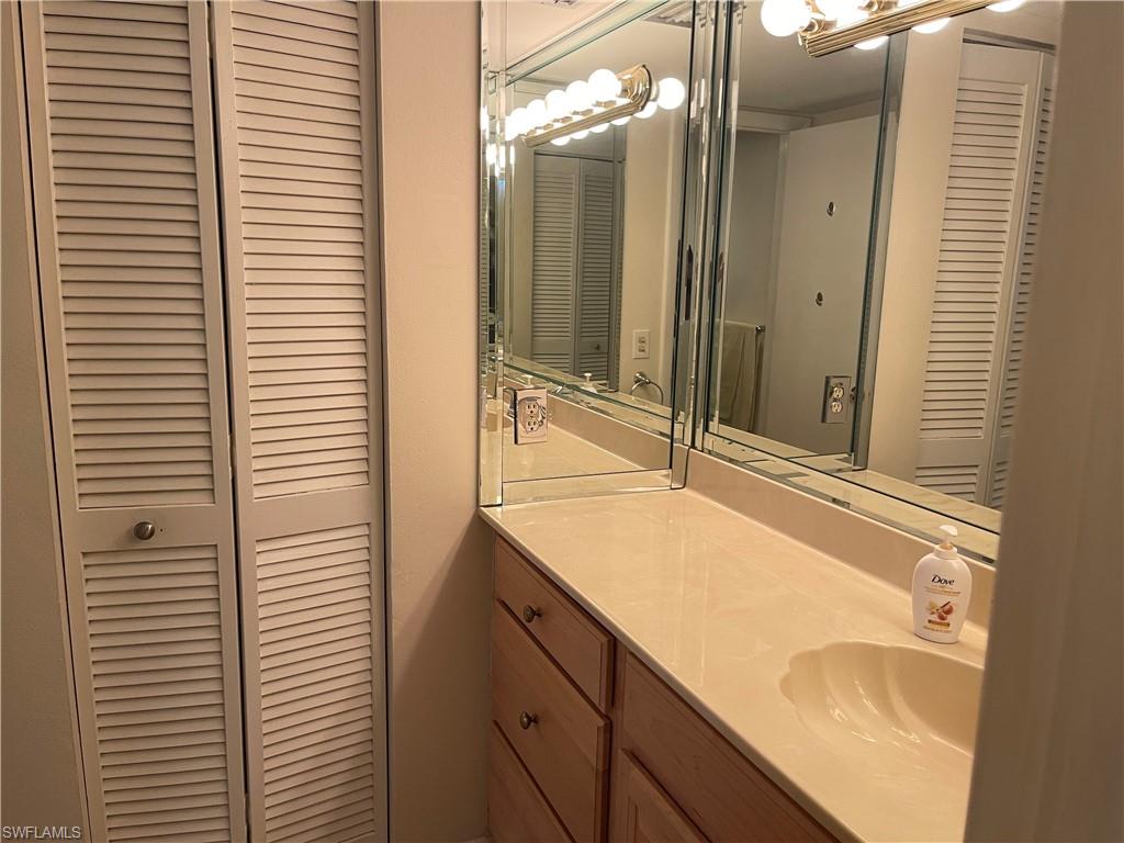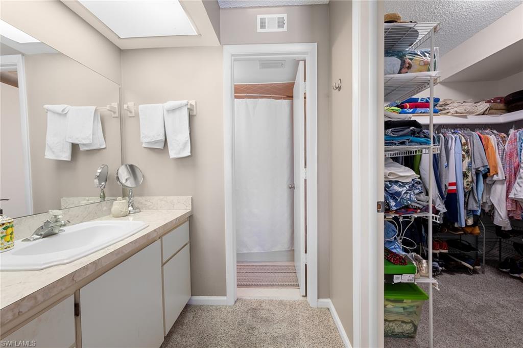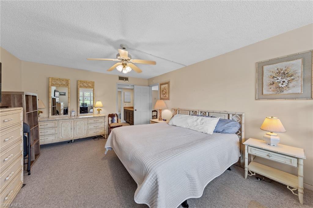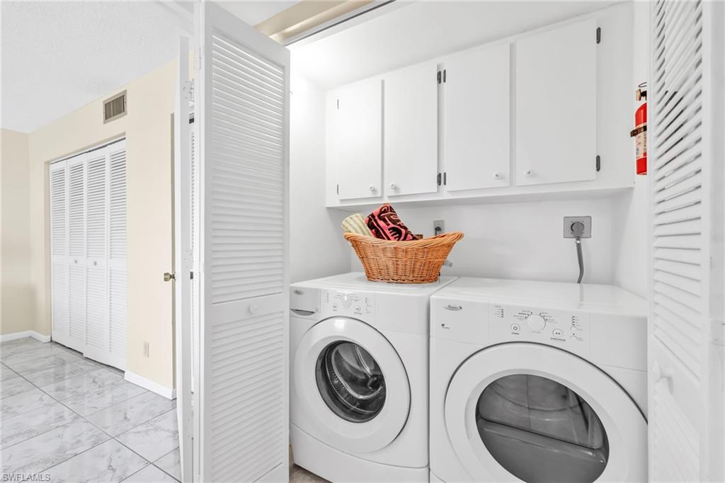 Say hello to this fully turnkey 2-bedroom, 2-bathroom Spanish-style villa with all the updates you’ve been hoping for. Inside, you’ll find a fully renovated kitchen with soft-close wood cabinets and a butcher block countertop, plus new electrical, new plumbing, fresh paint, updated vanities, and stylish vinyl flooring throughout. This villa offers exceptional storage—with two outdoor spaces for your golf clubs, beach chairs, and bikes, an oversized walk-in closet, and three additional linen-style closets to keep everything organized and out of sight. Comfort comes easy with ceiling fans in every room, a smart thermostat, keypad entry, and an ADT security system. Step outside to the wrap-around lanai, a private retreat perfect for lounging, entertaining, or simply enjoying the breeze. This unit is steps away from the 19th Hole Restaurant (dine in or carry out), golf shop and main pool area. In the Glades, you’ll have access to two walkable golf courses for exercise, or you can ride for fun (par 55 and par 70), along with pickleball, tennis, bocce, shuffleboard, and 10 community pools. A cozy library, art classes, bingo, dinner dances, cards, karaoke, and more; The maintenance fees cover golf green fees, water, sewer, trash, WIFI, cable, pest control, and more. Plus, you’re minutes to shopping, restaurants, downtown 5th Avenue in Naples, and the Gulf beaches — so whether you’re unwinding, staying active, or exploring, it’s all within easy reach. Don't miss out on this updated, move-in ready villa, set in a community where there’s always something to do.