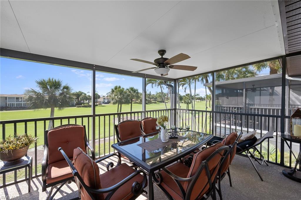 This beautiful 2 Bedroom, 2 Bath condo located in the Glades Golf & Country Club, where you can enjoy an exceptional lifestyle. There is unlimited play on two beautifully renovated golf courses designed by Gordon Lewis; the Pines, a par 70 course, and the Palmetto, which is a par 55 course. Both courses feature high-quality paspalum grass, advanced irrigation systems, ensuring optimal playing conditions year-round. This vibrant community offers a wealth of amenities including; On-site Management, Pro Shop, Clubhouse, Library, Art Room, and 9 swimming pools. The main resort-style pool is located near the 19th Hole Restaurant, which serves delicious food and drinks. Enjoy 12 new pickleball courts, resurfaced tennis courts, bocce courts, and shuffleboard, catering to various recreational interests. An active pickleball league and bocce club ensure there are plenty of opportunities to engage with fellow residents. The condo itself is ideally located on the 17th Fairway of the Pines golf course, offering a magnificent view of the fairway and a water feature. Inside this condo you’ll find an updated kitchen and tile floors throughout, enhancing the modern and breezy atmosphere. The spacious lanai is perfect for relaxing with cocktails while watching the sunset, complete with automatic storm shutters for convenience. Additional features include impact windows and sliders, a separate pantry, a front screen door for cross-breezes. There is a newer HVAC unit along with a newer water heater that were both installed in 2021. This turnkey-furnished condo is just 10 minutes from Historic Naples, where you can explore a variety of restaurants, boutiques, and stunning white sandy beaches. Living here truly offers the best of both worlds. An active lifestyle within a beautiful golf community, and easy access to the vibrant culture and relaxation of Naples.