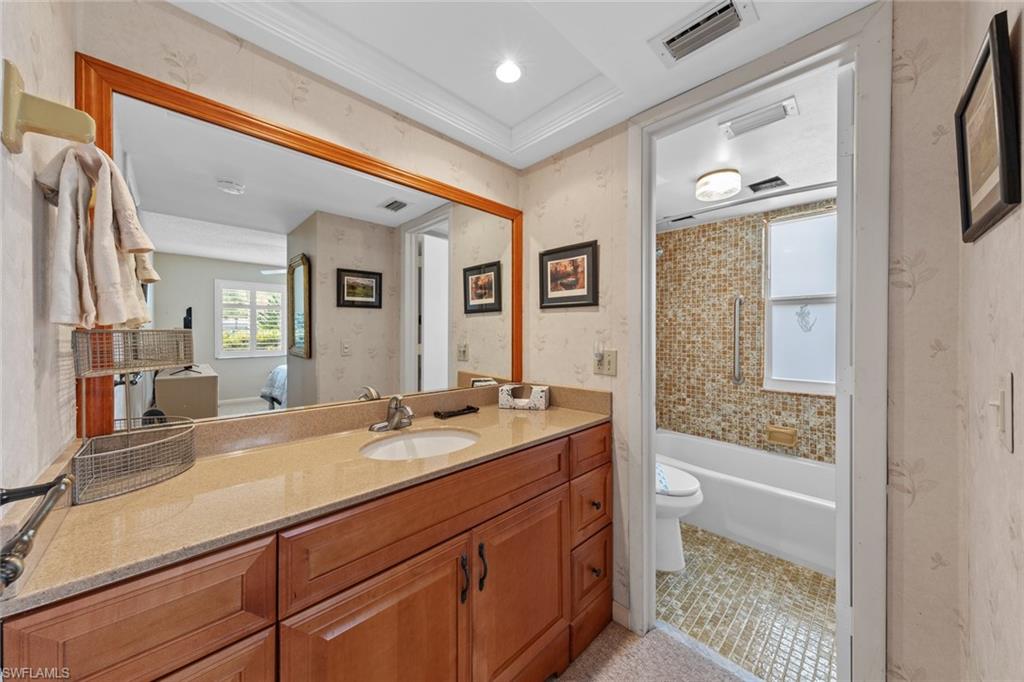 Seller financing just added – now it's easier than ever to own in The Glades. This fully renovated 2-bedroom, 2-bathroom condo is one of the most appealing and move-in-ready options currently available in The Glades Golf & Country Club. With a spacious open floor plan and high-end finishes, it's being offered turnkey for immediate enjoyment. Start your day with sunrise views from the panoramic, screen-enclosed wrap-around lanai, or gather around the oversized waterfall quartz island in the kitchen. Upgrades include hurricane impact windows, oversized tile flooring throughout, a completely remodeled kitchen, and a 1.5-year-old HVAC system and water heater. The Glades is a bundled golf community offering 36 holes across two recently renovated courses: the Pines (par 70) and the Palmetto (par 55). Located just 3 miles from Downtown Naples and 4 miles from the white-sand beaches, it’s ideal for those who want a blend of convenience and lifestyle. Residents enjoy a highly active community with 12 new pickleball courts, 6 Har-Tru clay tennis courts, new bocce courts, and 9 community pools. The 19th Hole Restaurant offers indoor and outdoor dining with poolside service during season, while the clubhouse hosts year-round activities like card games, bingo, and more. This is a rare chance to purchase a fully upgraded home in a resort-style golf community with the added benefit of flexible seller financing. Schedule your private showing today.