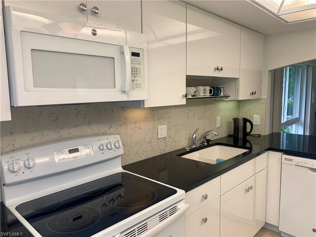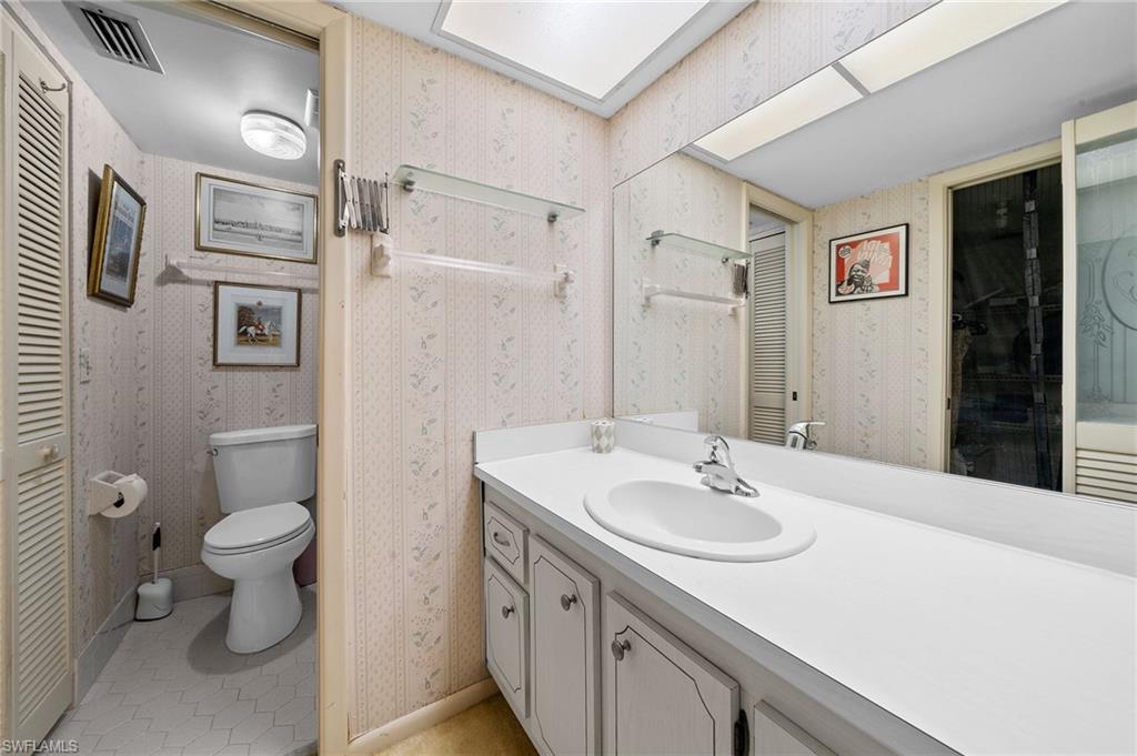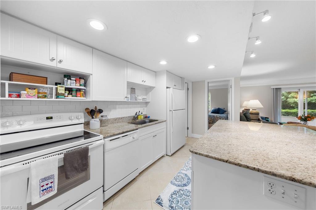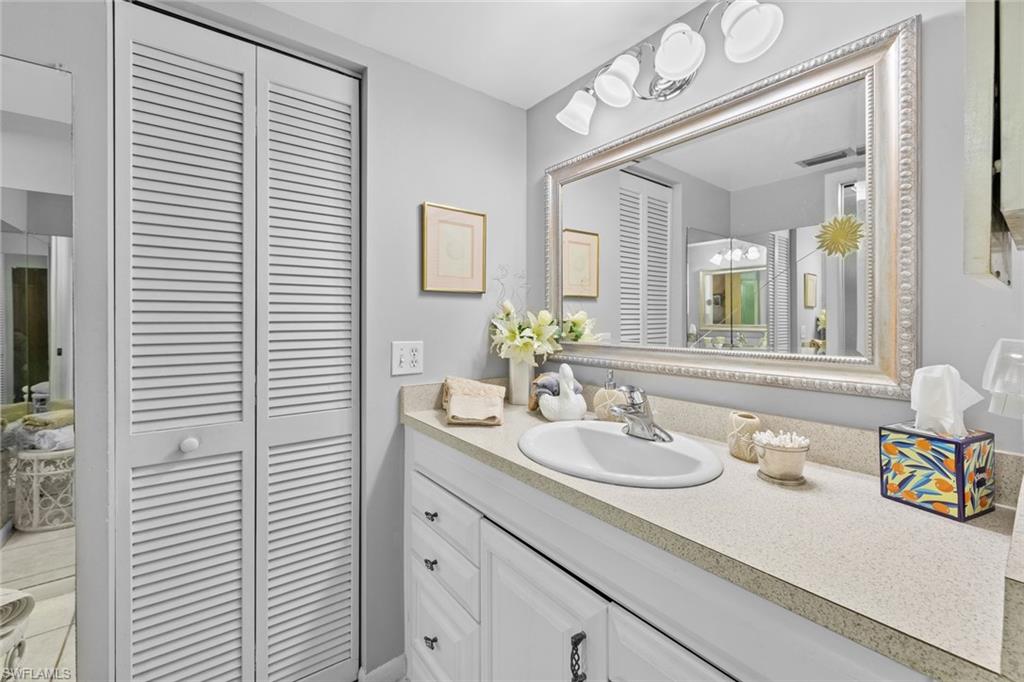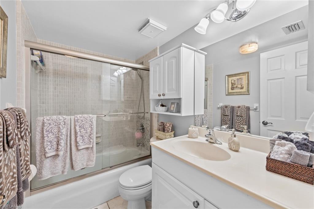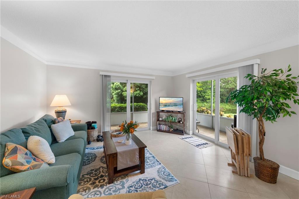 Welcome to your new home in paradise! Beautifully updated condo, being sold turn-key, located in Naples best kept secret community of The Glades Golf and Country Club! Located just 3 miles from downtown Naples, with it's world class shopping, restaurants and sugar sand beaches. This 2 bedroom, 2 bath condo has been tastefully updated with a new kitchen, baths, impact windows and doors, as well as porcelain wood look tile floors throughout! The beautiful kitchen features stainless steel appliances, white cabinetry, granite countertops, subway tile backsplash, and a large pantry closet. It is also filled with light from the large floor to ceiling window. The split bedrooms are both nicely sized and include on-suite full baths. The primary bedroom features sliders to a back patio. A large lanai overlooks a private and peaceful courtyard. A large outside storage closet is a great place to keep your beach chairs and umbrella. The Glades offers 36 holes of bundled golf with a par 70 and executive par 55 course. These courses are recognized as two of the best in all of Naples! In addition to golf, the Glades has 12 new lighted pickleball courts with an additional 3 instruction courts, 6 newly resurfaced hard-tru tennis courts, a resort style pool and with an additional 8 community pools, shuffle board, bocce, billiards, library, art studio, car wash area, and a full social calendar with numerous card groups, mahjong, bingo, trivia, bunco, Thirsty Thursdays with live music, dinner dances, arts and craft and group fitness classes. Condo fee includes unlimited golf greens fees for the owner, use of all amenities, cable TV/high speed wifi, water, sewer, trash/recycling, lawn maintenance and irrigation. If you are looking for your own little slice of paradise, in a very active, social and friendly community, this one is for you!
