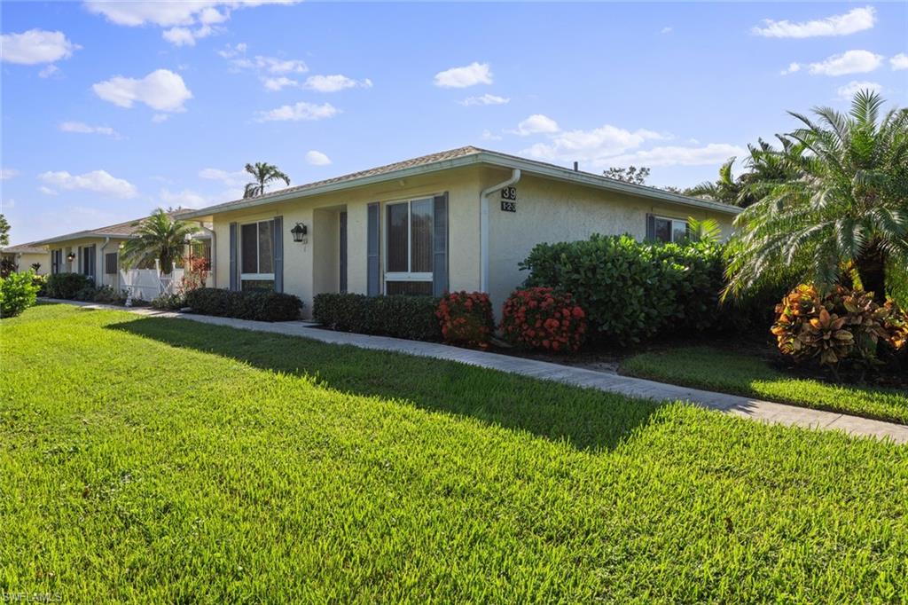 End-unit villa in the highly desirable Glades Golf & Country Club! This charming 2 bedroom, 2 bath residence offers a light and open floor plan with windows on three sides, bringing in beautiful natural light. The tiled lanai with glass and screens provides year-round enjoyment and extends your living space with peaceful garden views. A bonus outdoor patio is perfect for grilling, entertaining, or relaxing with your morning coffee. This villa is original but maintained and is ready for your inspiration—update to your taste and make it your own Florida retreat. Enjoy the resort-style amenities of the Glades, including unlimited golf on two renovated Gordon Lewis courses (par 70 Pines and par 55 Palmetto), 9 heated swimming pools, new pickleball courts, Har-Tru tennis, bocce courts, 19th Hole Restaurant, and a full calendar of social activities—all just minutes from Downtown Naples and Gulf beaches. Make this your slice of paradise in one of Naples’ most active and affordable golf communities!