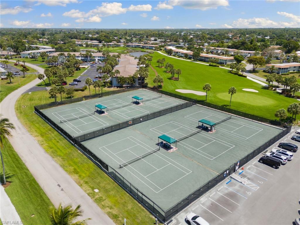 GOLF 2 PRISTINE GOLF COURSES PLAY ALL YOU WANT INCLUDED IN HOA!!!!WONDERFUL INVESTMENT OPPORTUNITY AS SEASON 2026 IS ALREADY BOOKED AND $$$ IN YOUR POCKET!!!! GLADES COUNTRY CLUB WITH BUNDLED GOLF.... You can walk to the Club, Golf Course, Tennis, Pickleball, Bocce or choose from 9 Pools and an outstanding Restaurant. Play on 2 state of the art golf courses, Par 70 and Par 55 as often as you like with the only fee being a golf cart if you choose. Your HOA covers all amenities and utilities but electric ....Beautifully updated, rare, open concept, large island in a cooks delight kitchen with tons of cabinets and work space.. The villa also has a one of the kind, den or study if you work from home. Kitchen and baths are updated. All tile no carpet when you return from the beach... Naples 5th Ave, Beach, Restaurants, shops are all under 2.8 miles away...Where can you buy at this price and have it all so close!!! Wonderful community with lots of social activities to keep your calendar full. Privacy wall around house with large patio off master and plenty of storage. 2/2 villa, no one above or below you, plus den/office and again rare, in unit washer/dryer. HOA covers water, sewer, trash, WiFi and Cable along with all the golf, tennis or pickleball. You can walk to Publix, with shopping and restaurants in nearby shopping center. The opportunity to own in one of the best golfing communities at only 195K is a steal.....also being offered below market and last appraisal. Newly Painted and home warranty for 1 year... I am a Florida Realestate Agent and it is my villa!!!!