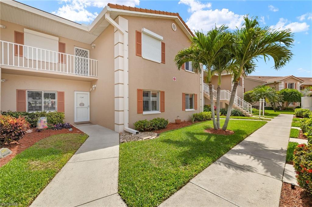 FULL GOLF MEMBERSHIP INCLUDED with this pristine 2/2 1st floor renovated golf course property in central Naples. This spacious 1,330 sq. ft. first-floor condo offers effortless living with stunning panoramic golf course views and a preferred southern exposure. The sought-after Hampton model boasts an open-concept living area, high ceilings and tall doors creating an airy and inviting atmosphere. This home boasts new LVP in the main living salon, updated paint throughout and 15k in all electric storm shutters on all windows for peace of mind. Enjoy the added bonus of a private storage unit perfect for keeping your golf clubs, bikes, beach chairs and tennis rackets organized. A **covered, deeded parking spot** (#21) ensures easy access and protection for your vehicle. Take a refreshing dip in the community pool or visit The Divot for a full fitness center, bocce courts and casual dining for breakfast and lunch. The clubhouse features a restaurant, bar, billiards, library, card rooms, fire pit and social events. Har-Tru tennis courts with lights provide the perfect setting for an evening match. Located in a prime spot, this home is just minutes from shopping, dining, and entertainment, with easy access to Olde Naples, the white sand beaches, art galleries and theaters—only four miles away! Whether you're looking for a full-time residence, seasonal getaway or an investment property with great rental potential this condo offers unbeatable value and a lifestyle of convenience and leisure. Schedule your showing today!