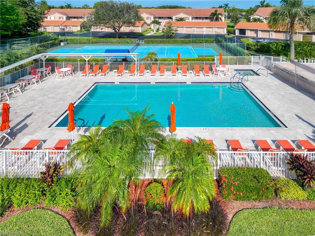 Top-Floor Naples FL Retreat with Cathedral Ceilings & Resort-Style Amenities! Discover your perfect escape in this stunning top-floor condo featuring soaring cathedral ceilings and luxurious wood-look tile flooring throughout all rooms and lanai. Stylishly furnished with a modern, beach-inspired coastal-chic flair! Every room exudes warmth, comfort, and elegance, creating the ideal year-round home or vacation getaway. Views of 2 golf courses, lake, private preserves across and gorgeous sunsets. Full Golf membership comes included with this unit so play if you want. Use elevator or get your steps in. Step out your door to enjoy the sparkling pool, relaxing hot tub, popular pickleball courts, and neighbor social gatherings. Located near the Clubhouse, where you’ll find dining, full bar, social activities, ping pong, pool tables, card rooms, a library, golf simulator, pro shop, fire pit. Or head to the Divot for breakfast, lunch, full fitness classes and new state of the art gym, and bocce courts. You’ll never run out of things to do! Ask for Matterport Virtual Tour to view unit from afar. Minutes to every convenience and 5 miles to white sand beaches, renowned dining, shops, art, theatre, events and more. Whether you’re looking to unwind, entertain, or stay active, this home offers it all—beautiful interiors, unbeatable amenities, and at popular Glen Eagle Golf and Country Club gated community in a prime location. Highlights: Top-floor condo with cathedral ceilings Gorgeous wood-look tile throughout Stylish, updated furnishings with a beachy vibe Steps to pool, hot tub, and pickleball Near clubhouse, dining, bar, and fitness center Golf simulator, bocce, and social events year-round Don’t miss your chance to own a slice of paradise—schedule your private showing today!