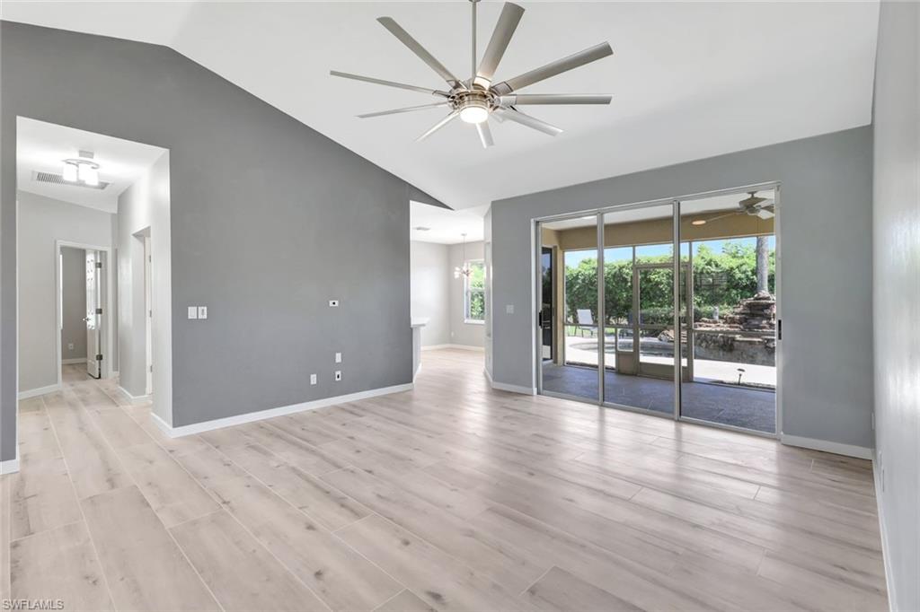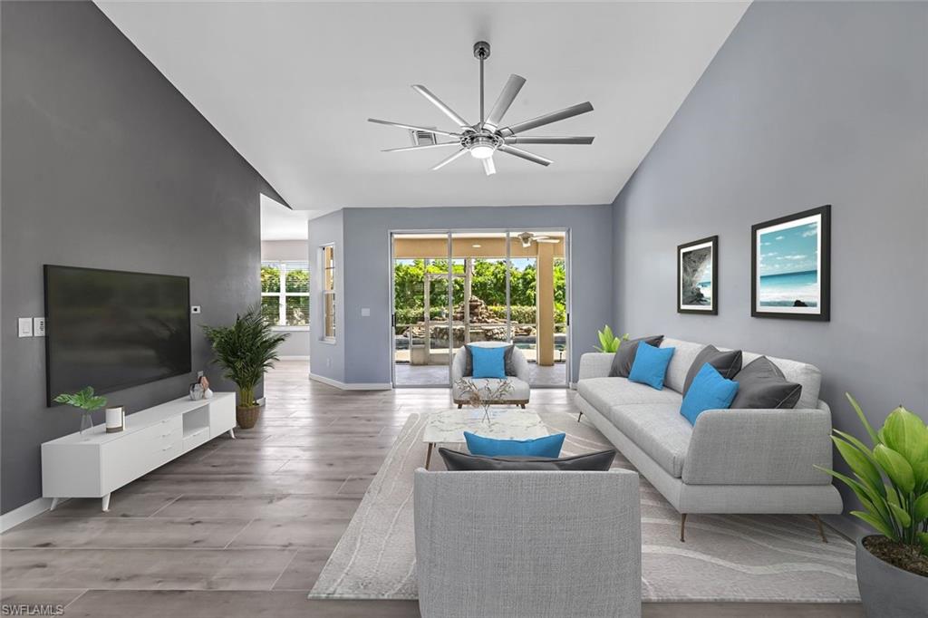 GORGEOUS POOL HOME – FUTURE GOLF COURSE VIEWS – SPACIOUS LAYOUT! Rarely available, this beautifully updated 4 bedroom + den, 3 bath, 2-car garage, pool home stands out as one of the largest homes in the neighborhood. Designed for both comfort and entertaining, two bedrooms open directly to the screened lanai and pool, while oversized bedrooms throughout provide plenty of living space. Recent upgrades include a new roof (2024), new A/C (2025), luxury wood-look flooring installed over tile, fresh neutral paint, and remodeled showers. The custom saltwater pool and spa feature a heating system, surrounded by a spacious lanai and cage (2019) with private views of the soon-to-open golf course. Additional highlights include mature landscaping, a fenced yard with privacy hedge, reverse osmosis system, and a large driveway with room for six vehicles. A rare combination of size, upgrades, and location—this home is ready to impress. THIS PROPERTY QUALIFIES FOR A 1% LENDER INCENTIVE IF USING PREFERRED LENDER, INQUIRE FOR MORE DETAILS** Renderings that showcase furniture have been virtually staged.