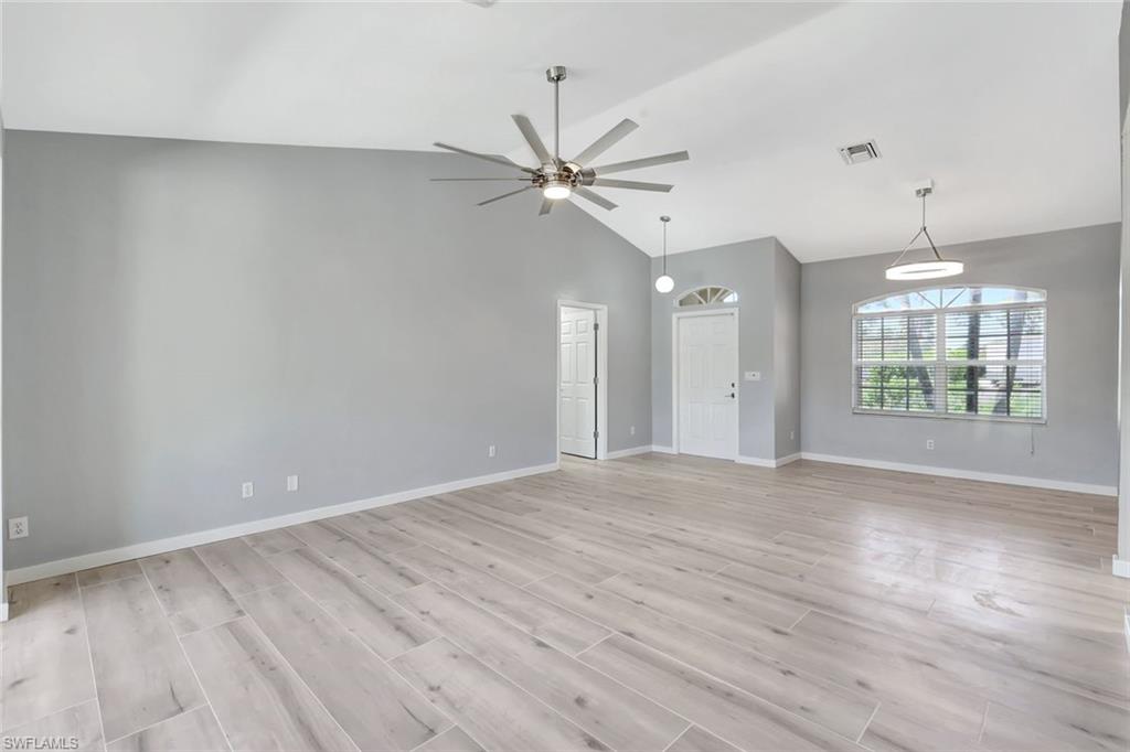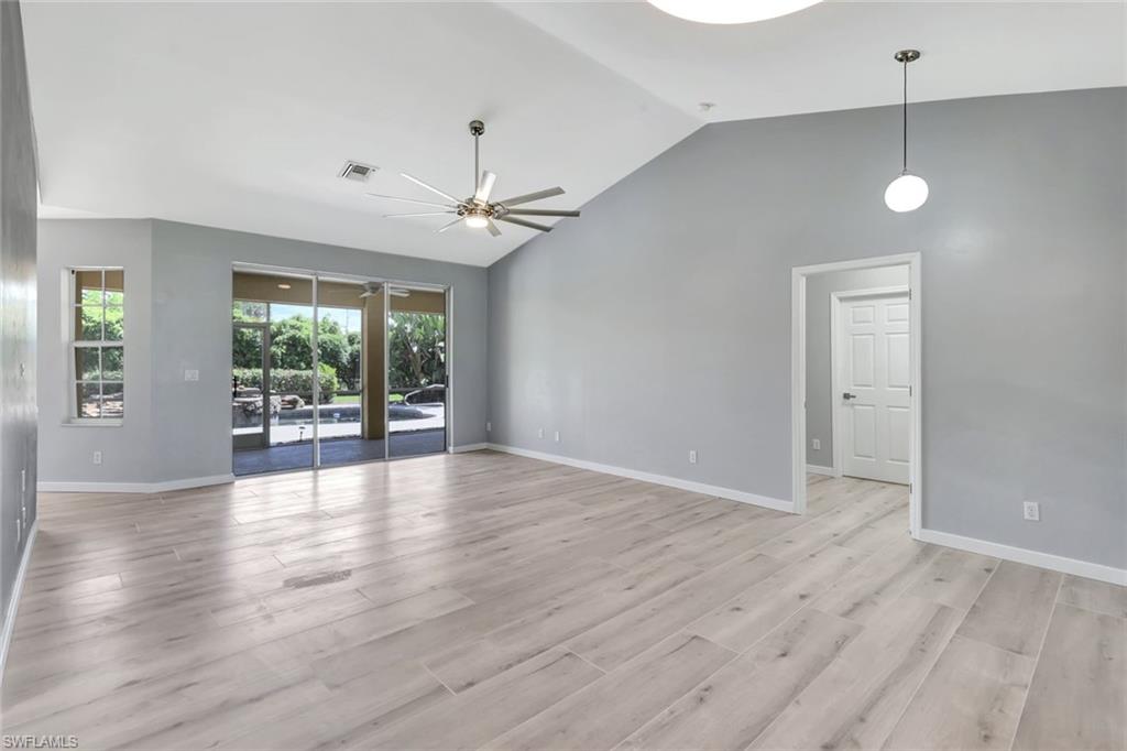NOW with a new price!!!! Welcome to your dream home in the heart of Golden Gate City! This stunning property offers the perfect blend of location, space, and modern entertainment-decorative wall. 1,845 square feet of beautifully designed living space under air, providing ample room for comfortable living and entertaining. The layout includes 3 bedrooms, ideal for family and guests, along with a versatile den that can easily serve as a home office, media room, or additional bedroom as needed. With 2.5 baths, convenience and privacy are ensured for everyone in the household. One of the standout features of this home is its impact doors and windows, providing peace of mind and protection during storm seasons while also enhancing energy efficiency and noise reduction year-round not to mention the quartz counter tops and the stunning water view from the lanai. In addition to its interior charms, this home boasts a prime location that puts you in the heart of Golden Gate City with easy access to local amenities, including shopping, dining, entertainment, and outdoor recreation options. Don't miss your chance to make this remarkable property your own.