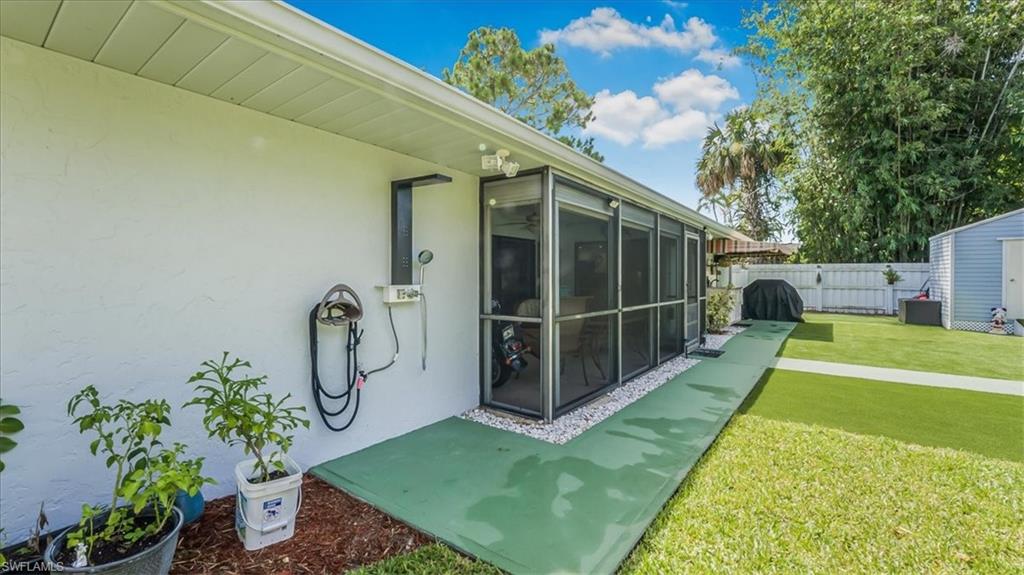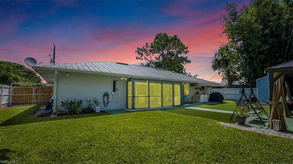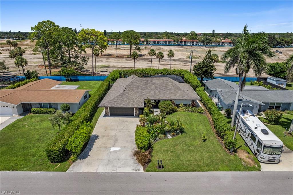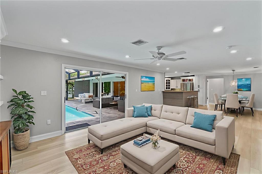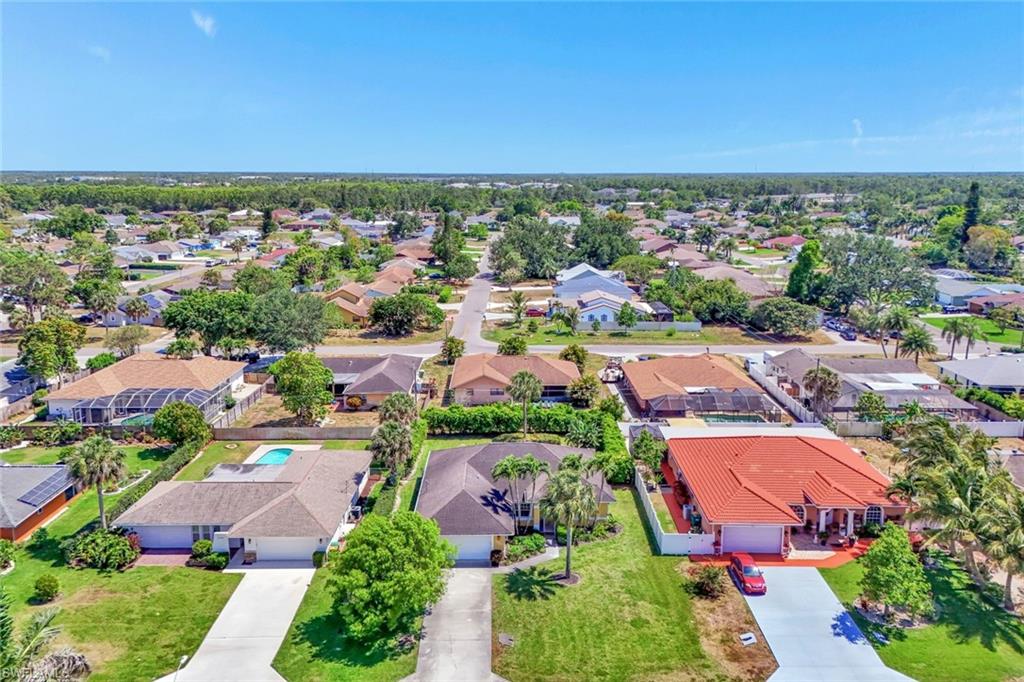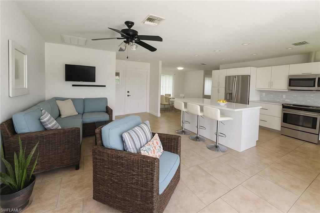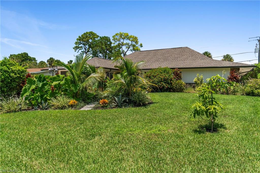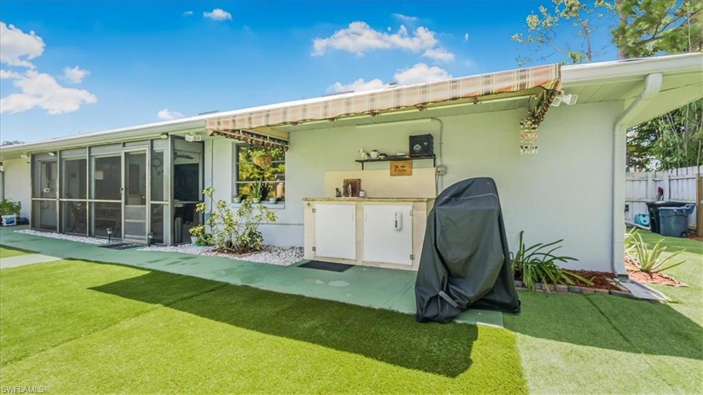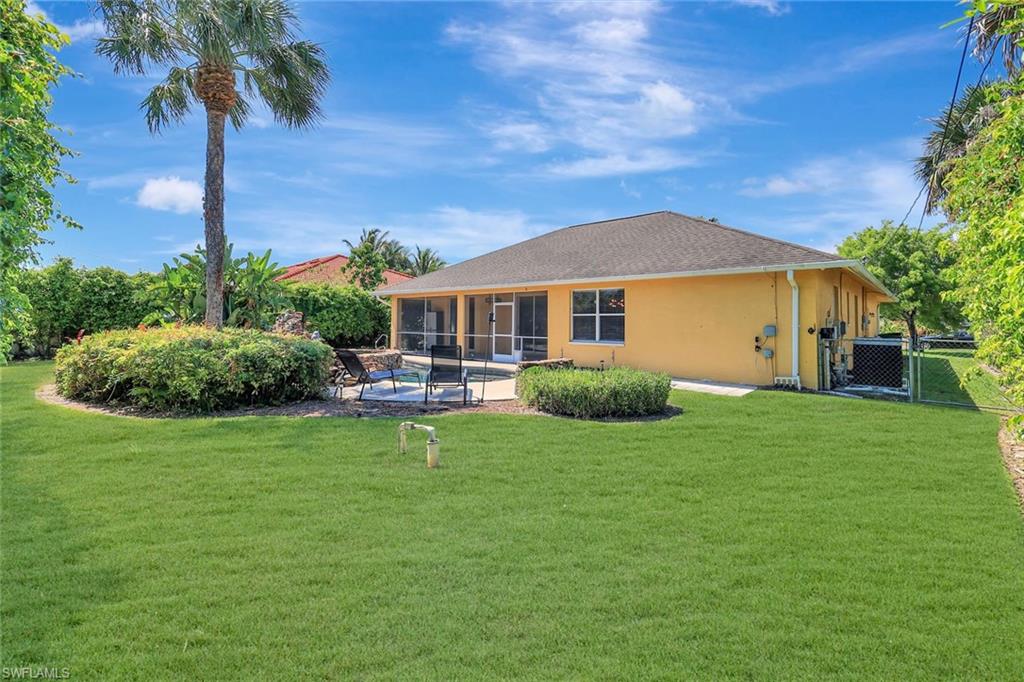This Golden Gate City home is all about easy, comfortable living in one of Naples’ most convenient neighborhoods. From the moment you walk inside, the home feels open, bright, and welcoming. Two separate living areas give you flexibility for everyday life. One space is ideal for relaxing with a movie or hosting friends, while the second living area near the front of the home works perfectly as a lounge, reading room, or spot to greet guests. Large windows and soft natural light make both rooms feel calm and inviting. The kitchen is updated with white cabinetry, granite counters, and a sleek backsplash. It connects smoothly to the dining and living spaces, making it easy to entertain or keep conversations going while you cook. The split floor plan keeps the primary bedroom tucked away for privacy, with a clean, modern bath featuring a walk-in shower. Guest rooms are comfortable and well-placed for family or visitors. What sets this home apart is how it lives outdoors. The backyard offers real breathing room with mature tropical landscaping, hedges for privacy, and shaded paths for strolling or gardening. There’s a large open lawn, perfect for pets or play, along with a cozy sitting area ideal for morning coffee or evening drinks. The screened lanai adds even more usable space and lets you enjoy the Florida weather year-round. Whether you want to relax, grill, garden, or entertain, this yard gives you options. The home also features updated flooring, modern lighting, neutral paint tones, and plenty of natural light throughout. A two-car garage and wide driveway provide practical convenience, while the quiet street adds to the overall sense of ease. Living in Golden Gate City means you’re close to everything Naples offers. Shopping, dining, parks, and schools are all minutes away, and the beaches are an easy drive. It’s a friendly, established neighborhood where people still say hello and enjoy the relaxed Southwest Florida lifestyle. If you’re looking for a home that feels good the moment you walk in—and gives you an outdoor space that truly works for your life—this property delivers.