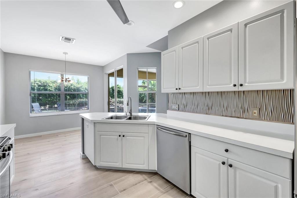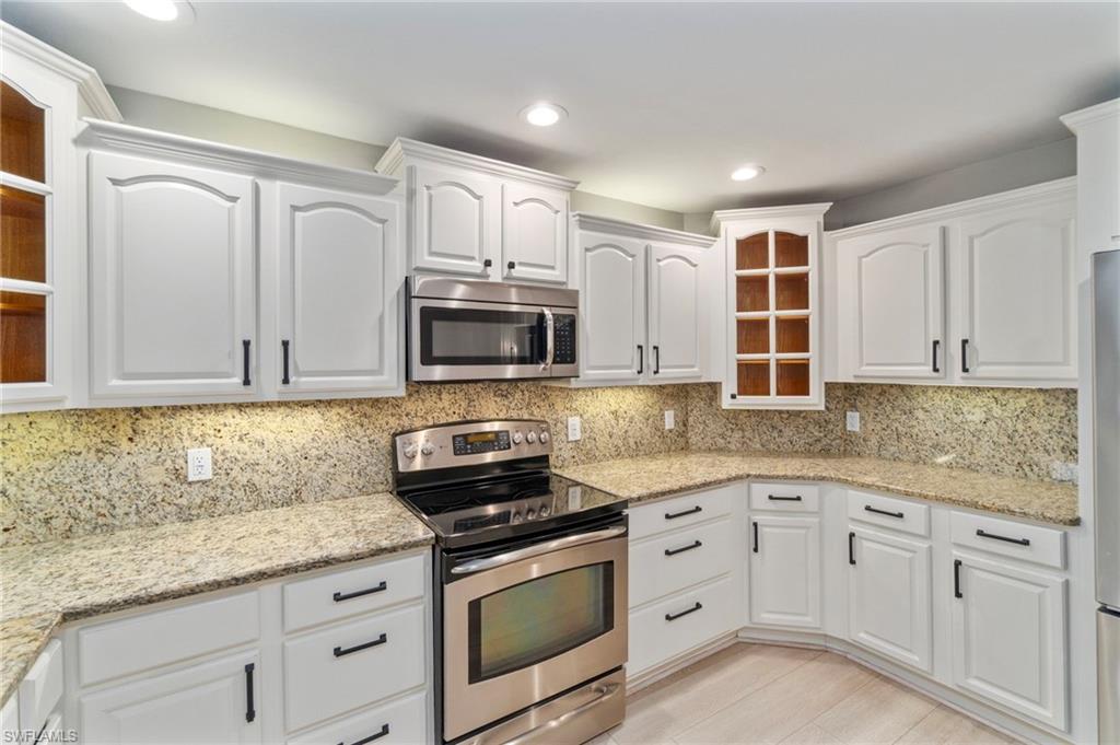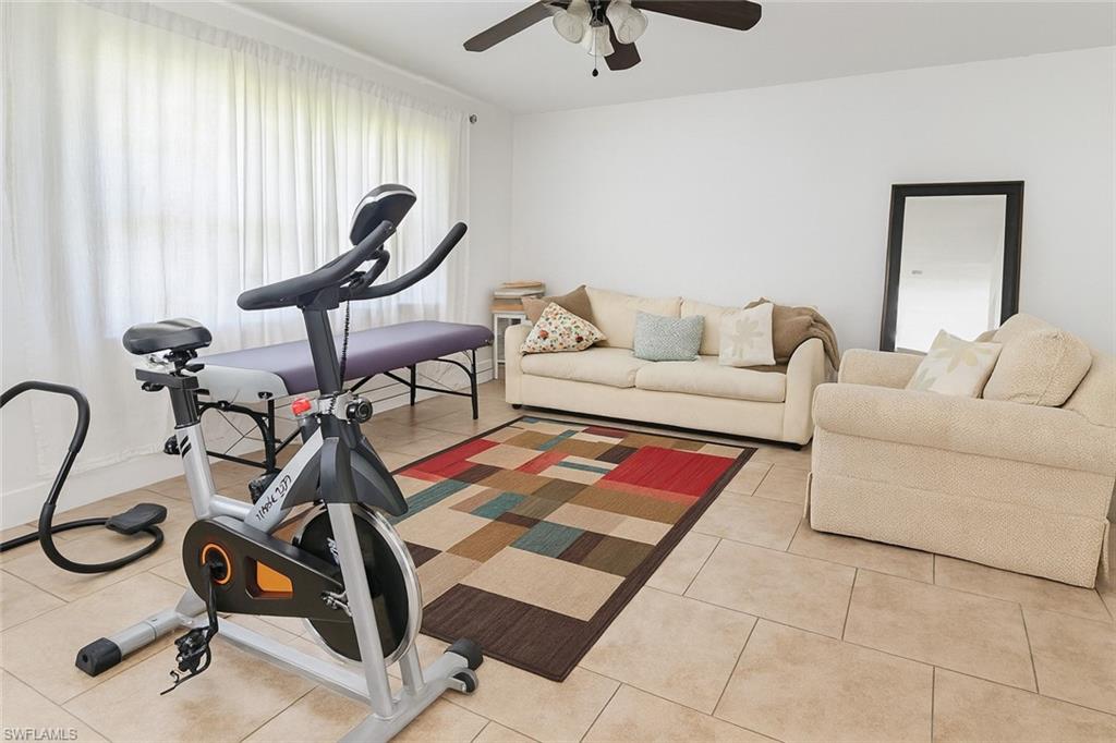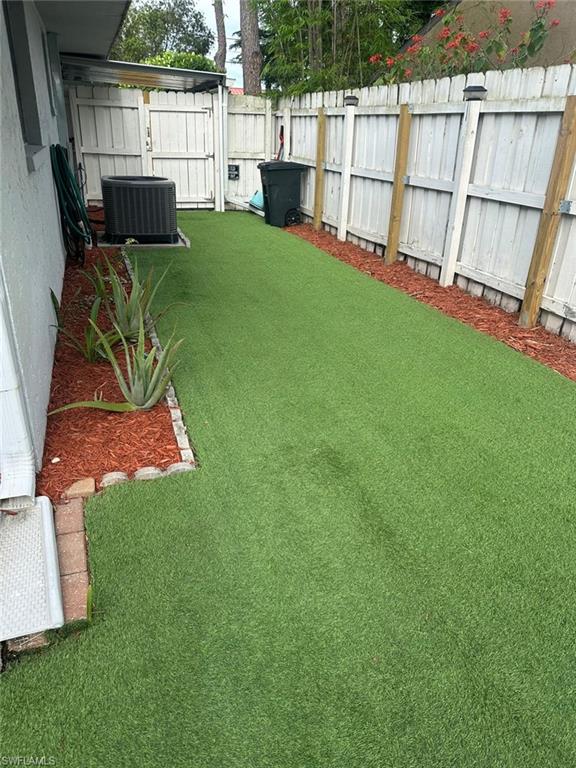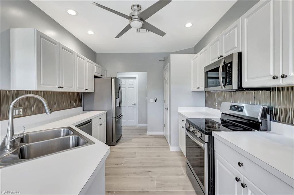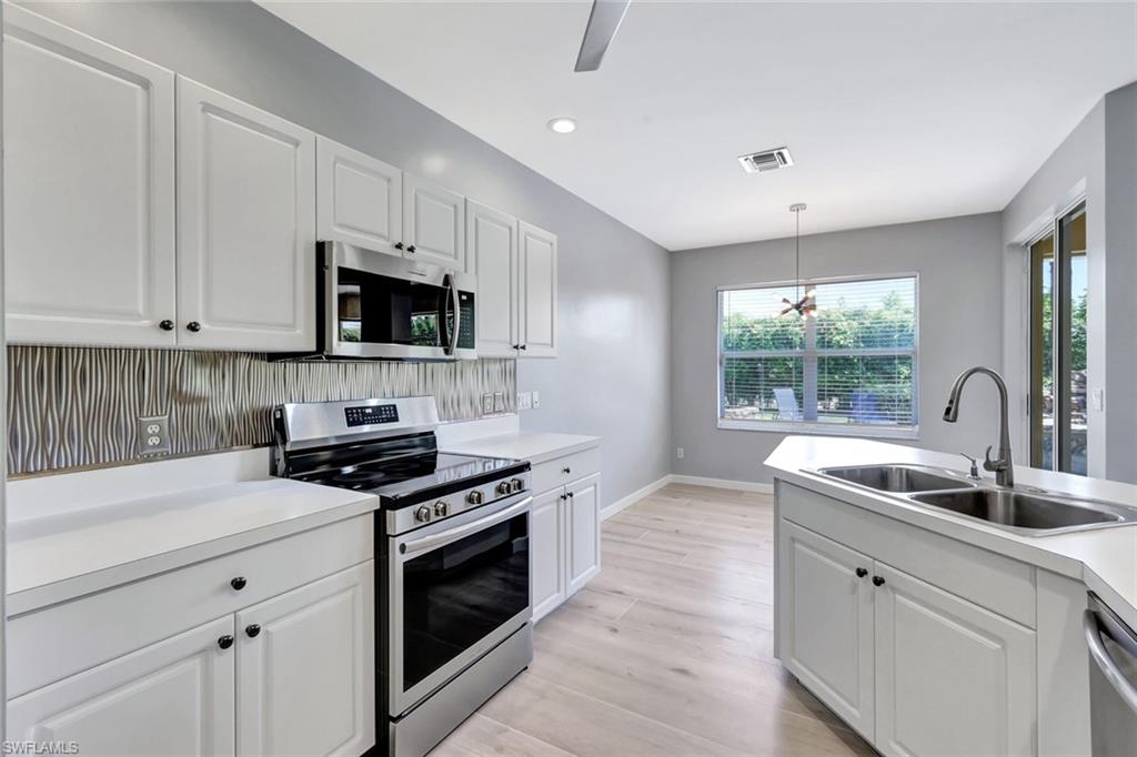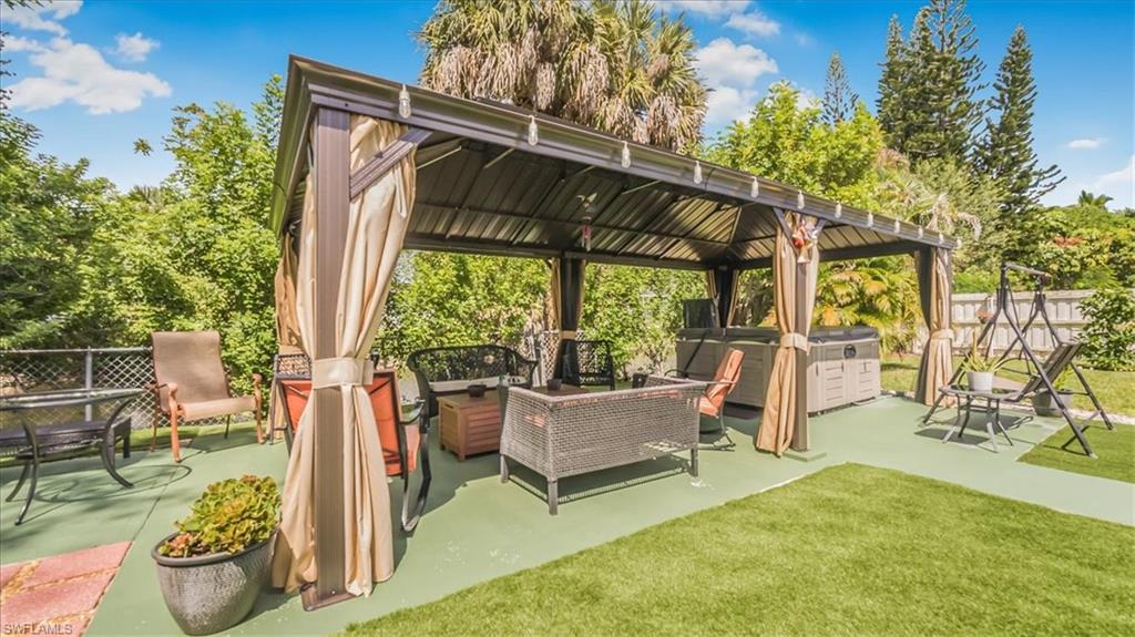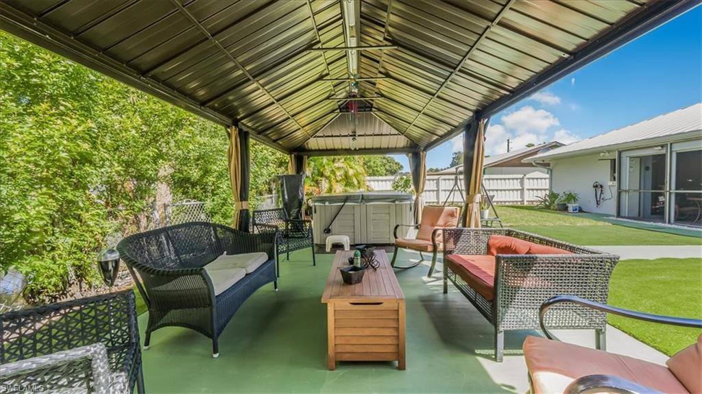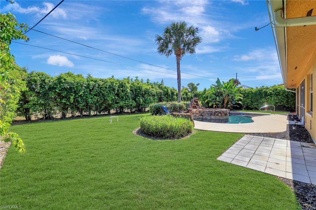 This Golden Gate City home is all about easy, comfortable living in one of Naples’ most convenient neighborhoods. From the moment you walk inside, the home feels open, bright, and welcoming. Two separate living areas give you flexibility for everyday life. One space is ideal for relaxing with a movie or hosting friends, while the second living area near the front of the home works perfectly as a lounge, reading room, or spot to greet guests. Large windows and soft natural light make both rooms feel calm and inviting. The kitchen is updated with white cabinetry, granite counters, and a sleek backsplash. It connects smoothly to the dining and living spaces, making it easy to entertain or keep conversations going while you cook. The split floor plan keeps the primary bedroom tucked away for privacy, with a clean, modern bath featuring a walk-in shower. Guest rooms are comfortable and well-placed for family or visitors. What sets this home apart is how it lives outdoors. The backyard offers real breathing room with mature tropical landscaping, hedges for privacy, and shaded paths for strolling or gardening. There’s a large open lawn, perfect for pets or play, along with a cozy sitting area ideal for morning coffee or evening drinks. The screened lanai adds even more usable space and lets you enjoy the Florida weather year-round. Whether you want to relax, grill, garden, or entertain, this yard gives you options. The home also features updated flooring, modern lighting, neutral paint tones, and plenty of natural light throughout. A two-car garage and wide driveway provide practical convenience, while the quiet street adds to the overall sense of ease. Living in Golden Gate City means you’re close to everything Naples offers. Shopping, dining, parks, and schools are all minutes away, and the beaches are an easy drive. It’s a friendly, established neighborhood where people still say hello and enjoy the relaxed Southwest Florida lifestyle. If you’re looking for a home that feels good the moment you walk in—and gives you an outdoor space that truly works for your life—this property delivers.