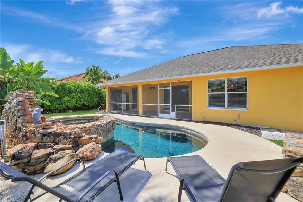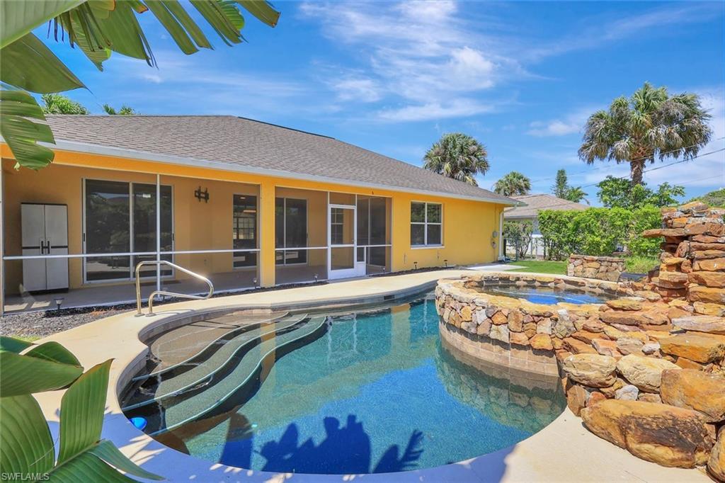Live the ultimate Naples lifestyle in this beautifully maintained 3-bedroom, 2-bath pool home tucked away on a quiet street in Golden Gate City. This private tropical retreat offers the perfect blend of comfort, style, and location. Step outside to your own backyard oasis featuring a heated saltwater pool, spa, and rock waterfall, all surrounded by lush privacy hedges and fencing. The spacious outdoor area is ideal for relaxing, entertaining, or enjoying family time in the Florida sunshine. Inside, the open floor plan is light and airy with vaulted ceilings, contemporary colors, and tile flooring throughout the main living areas and bathrooms. The layout is designed for easy living and effortless entertaining, with a screened front entry, covered lanai, and a 2-car garage for added convenience. Located just minutes from top Naples attractions including 5th Avenue South, Naples Pier, Gulf beaches, Freedom Park, Sugden Regional Park, and a variety of shops and restaurants. Easy access to I-75 and US-41 makes commuting a breeze. Move-in ready and full of charm, this home is a must-see for anyone looking to enjoy the best of Southwest Florida living!