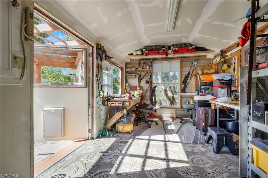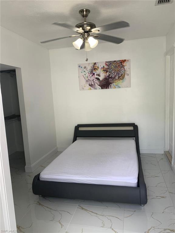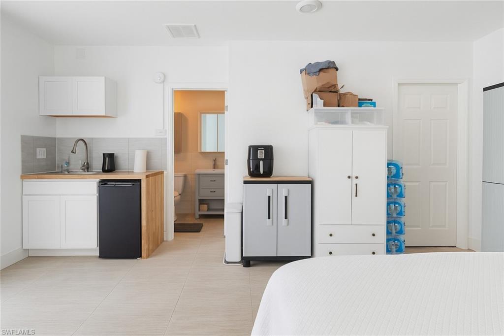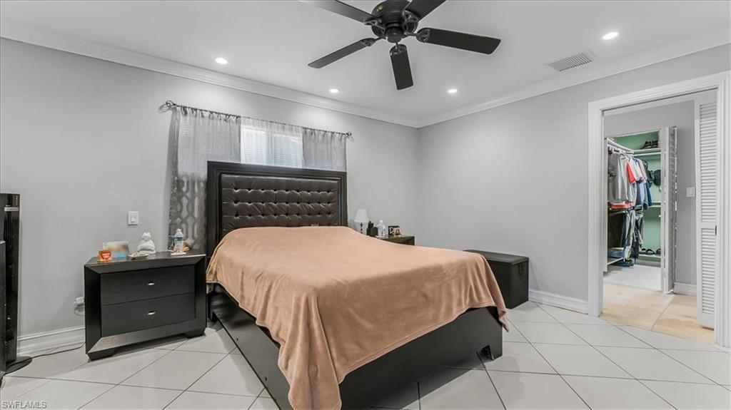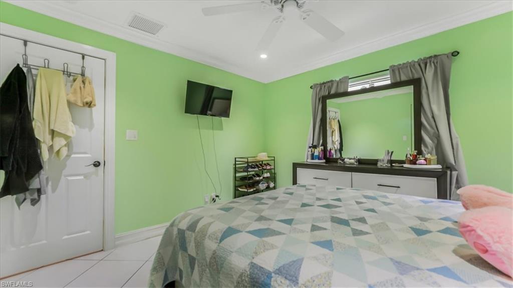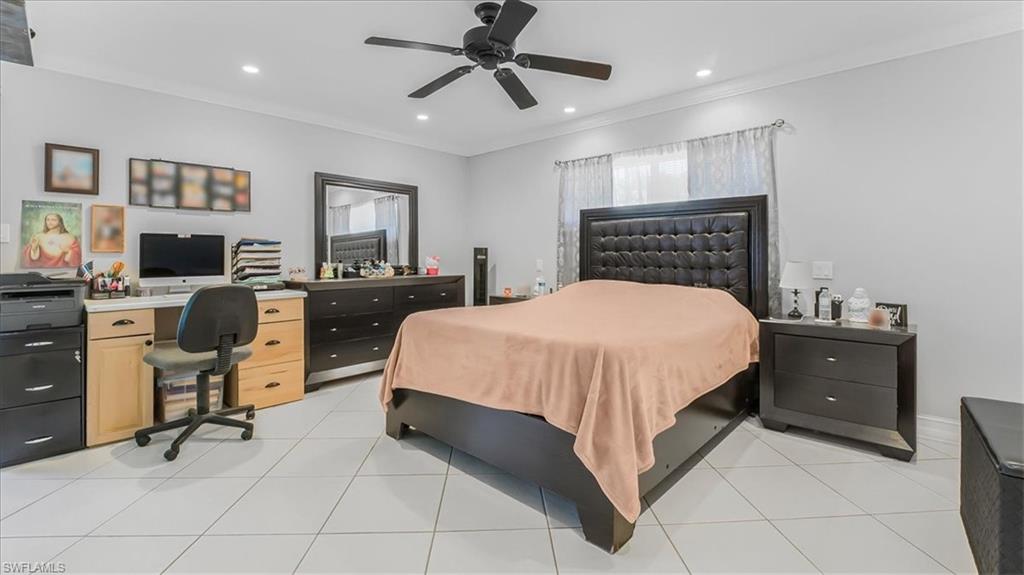 Beautifully remodeled ranch-style home in Golden Gate City featuring 4 bedrooms and 3 bathrooms, including a legal converted garage studio with private entrance, bedroom, bath, kitchenette, and living/office area—currently rented month-to-month, providing immediate income. The main home boasts a modern kitchen with stainless steel appliances, tile floors throughout, crown molding, a newly installed reverse osmosis water system, and bright, open living spaces. Situated on a fully fenced 0.23-acre lot with a wide driveway and room for a pool, boat, or RV—no HOA and located in Flood Zone X for lower insurance costs. Backyard includes a storage shed and seating areas. Prime location close to schools, parks, shopping, dining, and only 15–20 minutes to downtown Naples and the beach.