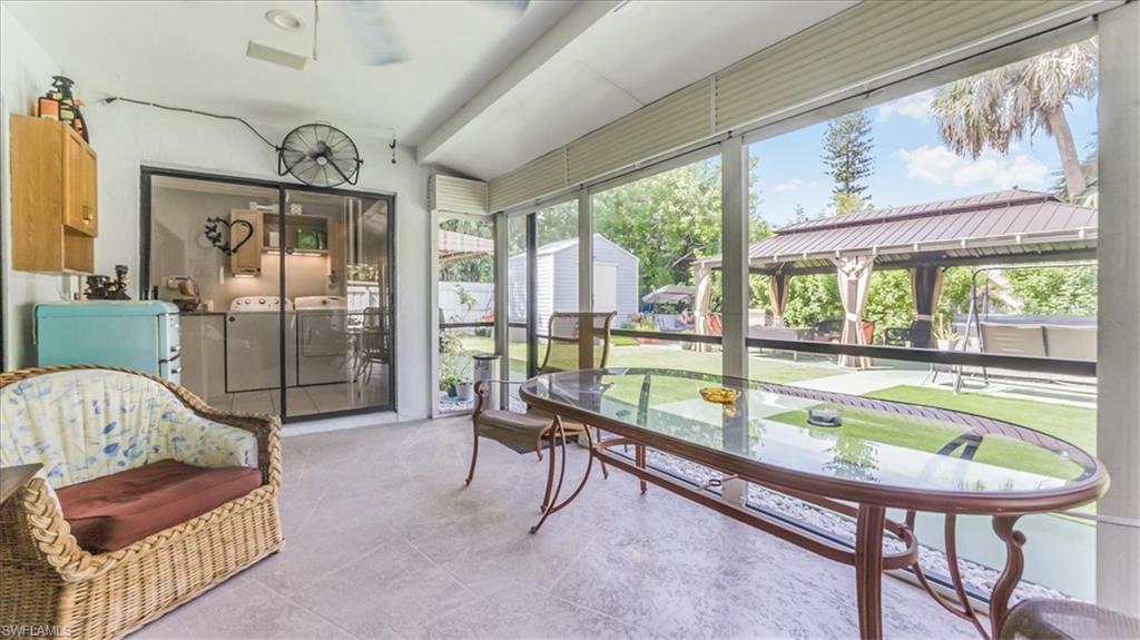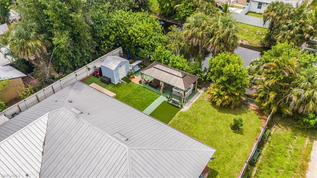 Discover this exceptional home in the heart of Golden Gate City, featuring a fully legal Mother-in-Law Suite with its own bedroom, kitchenette, washer and dryer, small living area, and private outdoor terrace, perfect for multi-generational living or generating rental income. The main home offers spacious interiors and an extra-large backyard overlooking the canal, complete with a jacuzzi, a pergola, and a long screened porch that provides the perfect balance between open-air enjoyment and a protected indoor-outdoor space. Additional highlights include a durable metal roof (2011), new foam insulation and new A/C ducts (2024), an air conditioning system (2019), plumbing located in the attic for easy maintenance, two separate laundry areas with one dedicated to the main house and the other to the Mother-in-Law Suite, sprinkler system, city water and sewer, water filtration system, security cameras surrounding the home, a built-in speaker system throughout with nightclub-quality sound, and an oversized driveway accommodating up to nine cars. Best of all, the property is located in Zone X-500, which does not require flood insurance, offering additional peace of mind and long-term savings. This property offers everything you need: modern upgrades, versatile spaces, and excellent potential for family living or investment, all in a prime Naples location close to shopping, dining, schools, and beaches.