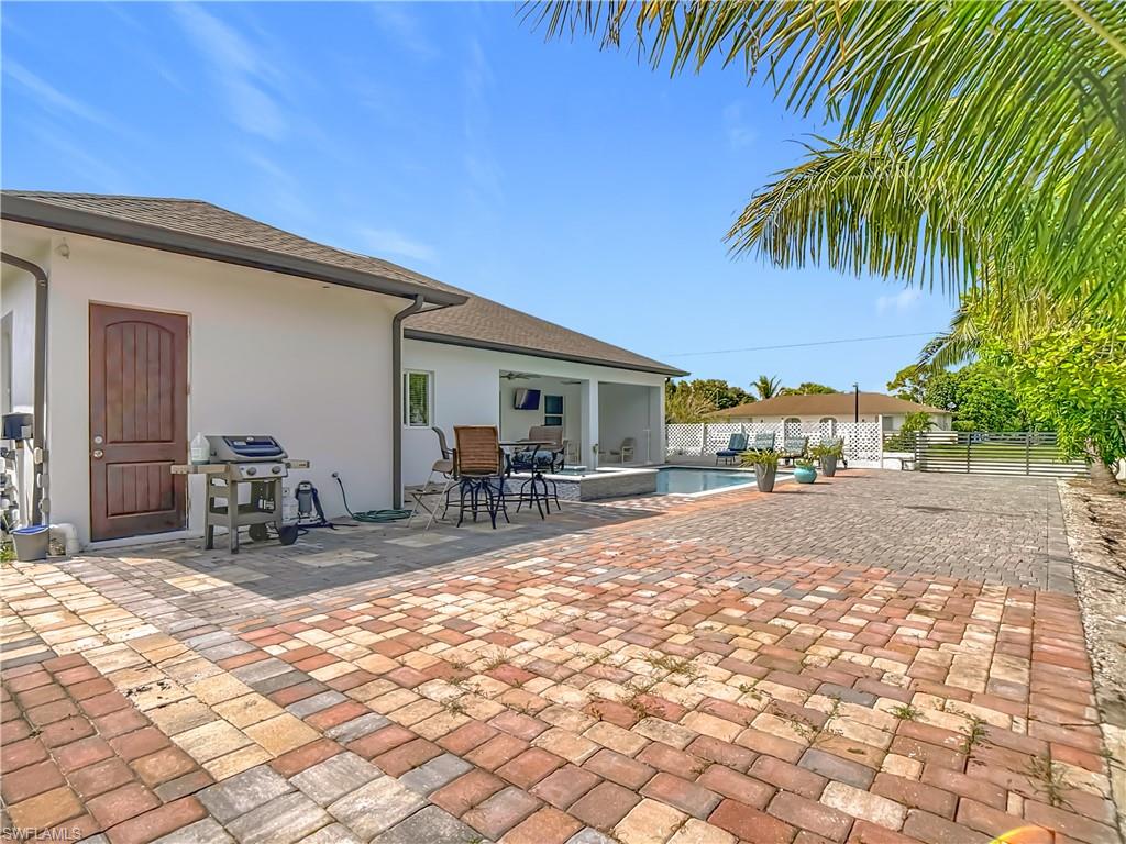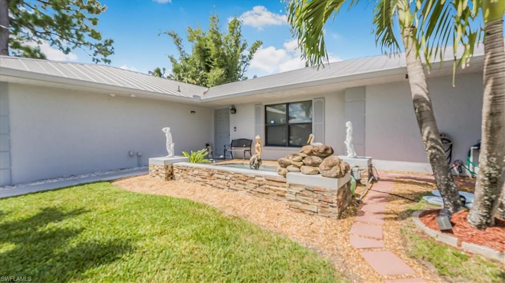 Tropical waterfront living in the heart of Golden Gate City! This inviting 3BR/3BA home opens to a resort-style backyard with a covered pavilion framed by palms, paver walkways, and lush gardens—perfect for morning coffee, alfresco meals, and sunset gatherings. Enjoy tranquil canal views and easy outdoor living with shade fans, lighting, and plenty of seating. Launch a kayak/canoe right from the yard and enjoy catch-and-release fishing—the canal is known for nice fish! Inside you’ll find an updated kitchen and baths, durable tile/wood flooring, and a comfortable split-bedroom plan. . No HOA or CDD!. Central location minutes to shopping, dining, schools, parks, Collier Blvd & Golden Gate Pkwy. A move-in ready haven with a backyard you’ll use every day.
