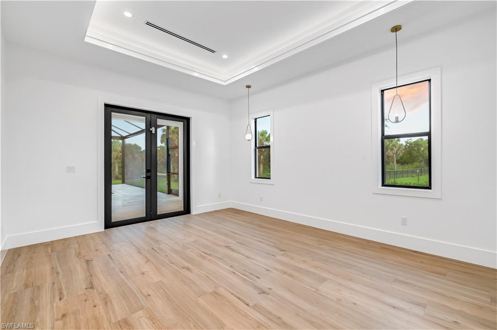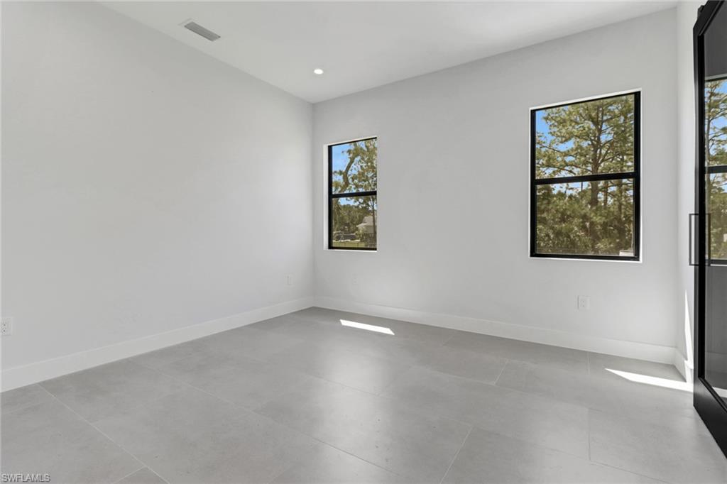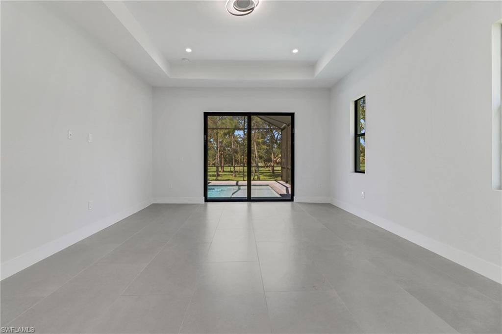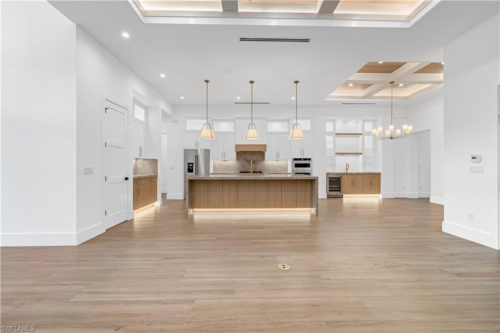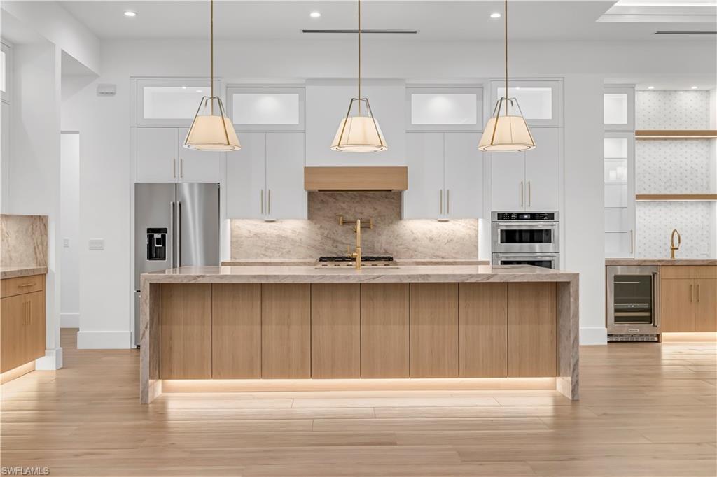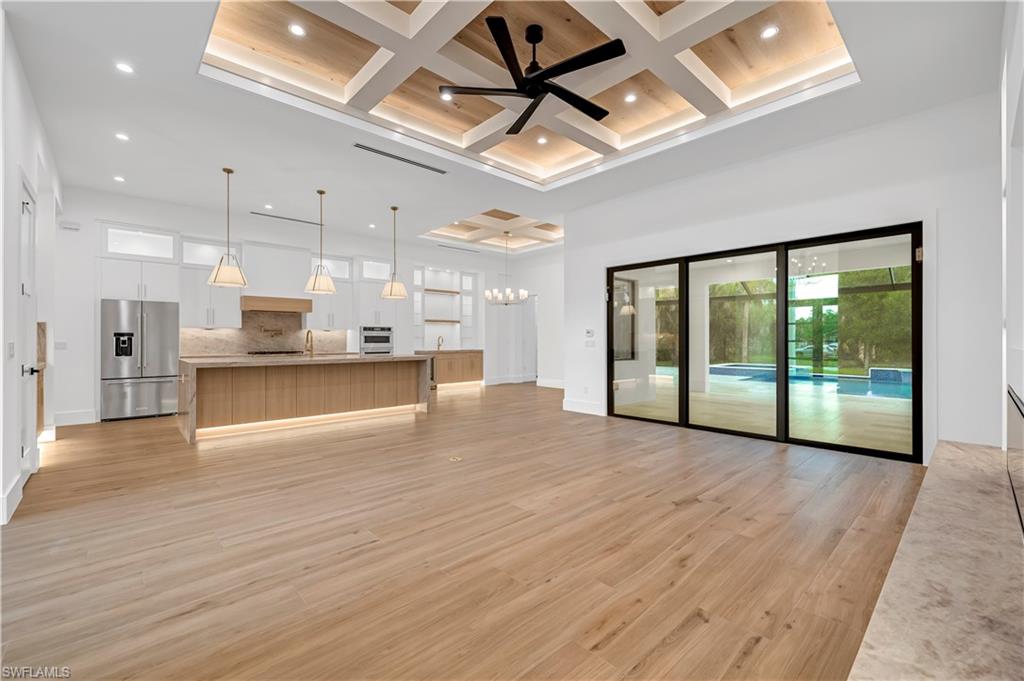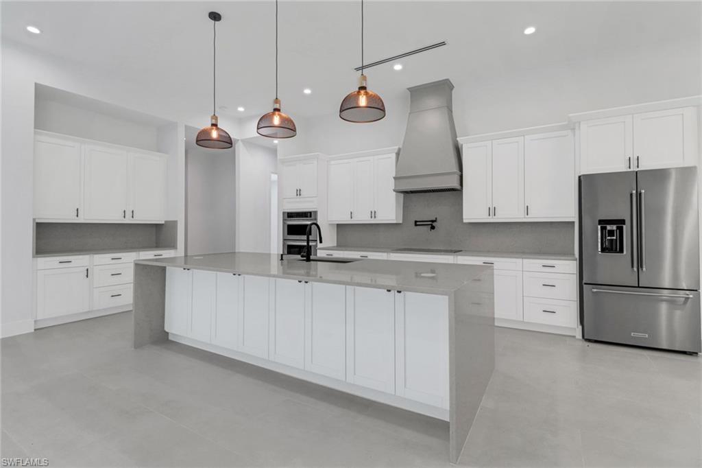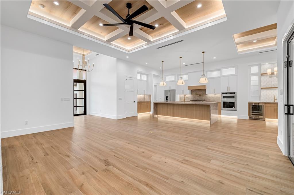 Step into modern coastal elegance with this newly built 4-bedroom + den, 3-bath pool home with over 2,800 sqft of living space and 3-car garage perfectly situated on a private 2.5 acre lot in Golden Gate Estates. This home features an open-concept layout, high coffered ceilings, and contemporary finishes throughout. The gourmet kitchen boasts European-style cabinetry, quartz waterfall island, stainless steel appliances, double ovens, and modern pendant lighting. The spacious living area seamlessly connects to the outdoor oasis, where sliding glass doors open to a covered lanai and sparkling salt pool with integrated spa and sun shelf overlooking lush tropical landscaping. Outdoor kitchen with gas grill, great for entertaining. Retreat to the primary suite featuring a spa-inspired bathroom with a freestanding soaking tub, oversized glass shower, and dual floating vanities. Enjoy the Florida lifestyle with indoor–outdoor flow, wood-look porcelain tile flooring, and energy-efficient impact windows and doors throughout. The home also includes a wine bar area, pantry, and spacious laundry room. Fully landscaped with paver driveway, fenced yard and aluminum automatic front gate, ready to move in! Located minutes from Collier Blvd, top-rated schools, shopping, and the beautiful Gulf beaches — this home blends modern design, privacy, and convenience in one perfect Naples address.
