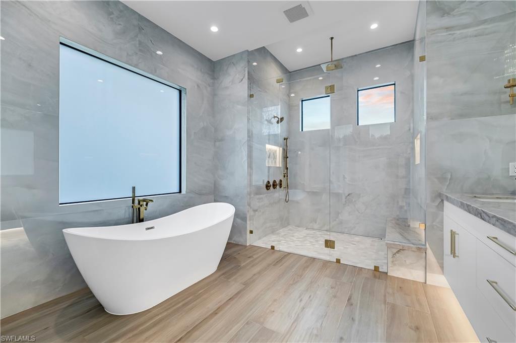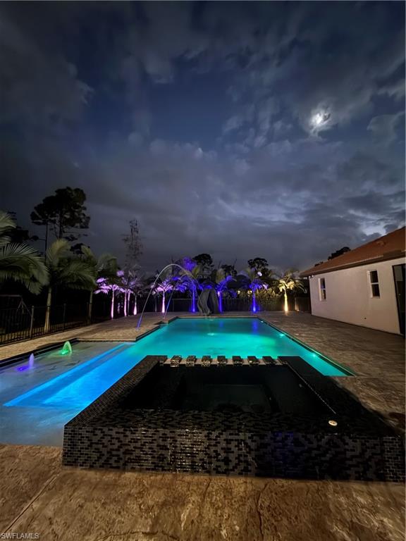 $500k price reduction. Discover an unparalleled oasis of luxury & privacy in this magnificent estate, built on 2 acres of lush land in Golden Gate Estates, Naples, Fl. Behind a grand electric gate & 330 feet from the road, this home offers complete seclusion & elegance. A beautifully paved driveway & secure fencing ensure the utmost privacy. Spanning 3,338 square feet of meticulously designed living space, this 4-bedroom plus den, 4-bathroom residence showcases the finest in modern craftsmanship. Upon entry, you’re greeted by stunning 24x48 porcelain tiles that flow seamlessly throughout. Custom closets with LED lighting in every room provide both beauty & function, while the custom wood-panel TV wall with a sleek center console adds sophistication & warmth to the living area. The home’s exterior is equally impressive, featuring custom window louvers on the front windows & entryway, creating a unique architectural feature that enhances both privacy & curb appeal. These elements ensure this home stands apart from others in the area. The gourmet kitchen is a chef’s dream, with two-tone wood cabinetry, a massive center island, and under-cabinet LED lighting. Equipped with a Thermador appliance package, a large sink with dual faucets, a convenient pot filler, and a custom hidden pantry, this space is perfect for culinary masterpieces and entertaining. A custom wine closet with LED lighting adds a refined touch. The master bathroom offers a spa-like retreat with a massive walk-in shower featuring dual shower heads & a built-in sitting area. Dual sinks & a modern soaking tub create the ultimate space for relaxation. Every bathroom is equipped with smart toilets & illuminated mirrors, blending technology with sleek design. Step outside to the expansive lanai, where the custom saltwater infinity pool with two water feature bowls & a raised infinity spa await. Both are heated for year-round enjoyment, and the entire pool area is screened in for comfort. A large outdoor kitchen makes entertaining a breeze. Ceiling fans in every room, including the lanai, ensure comfort inside and out. LED lighting throughout the property highlights its beauty, creating a warm and inviting atmosphere day and night. For the car enthusiast, the property includes a massive 3-car garage with a custom metallic epoxy floor, combining style & function. A spacious custom laundry room offers ample storage and convenience. The exterior features a striking custom blue metal roof, enhancing the modern aesthetic & providing durability for years. LED lighting extends to the exterior, illuminating the property & adding charm as the sun sets. Located just minutes from hospitals, shopping, and only 20 minutes from Vanderbilt beach, this estate offers the perfect balance of privacy & convenience. Whether seeking a peaceful retreat or an entertainer’s dream, this home offers the best of both worlds. Don’t miss the opportunity to own this exceptional property. Schedule your private tour today!