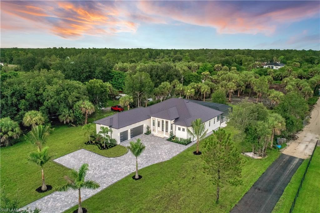 Welcome to this stunning 2025 new construction estate on 2.09 acres in Golden Gate Estates, offering the rare opportunity of two homes on one property. The main residence boasts 2,791 sq. ft. of luxury living with 5 bedrooms, 4 bathrooms, and a 2-car garage, designed with elegant finishes and modern details throughout. The guest house adds 799 sq. ft. with 3 bedroom, 2 bathroom, full kitchen, and private garage, perfect for multi-generational living, hosting guests, or creating a steady rental income stream. The side suite is fully equipped with its own kitchen and bathroom—perfect for guests, in-laws, or extended family. Inside, modern finishes and thoughtful design flow seamlessly into the expansive living spaces. Step outside to your outdoor kitchen, heated pool, and spa under a covered lanai—ideal for year-round entertaining. Step outside to your resort-style outdoor oasis featuring a heated pool, spa, screened lanai, and serene water feature views. Built with quality in mind concrete block construction, metal roof, impact-resistant windows/doors, and a whole-house reverse osmosis system this estate blends luxury with lasting peace of mind. Bring your RVs, boats, or even horses with no HOA restrictions, this property offers unmatched flexibility and privacy. Located in one of Naples’ fastest-growing areas, you’ll be just minutes from: Big Corkscrew Island Regional Park with water park, sports fields, and walking trails New developments and shopping centers including Founders Square and the upcoming Randall at Orange Tree Top-rated schools, dining, and healthcare And only a short drive to Naples’ world-famous white sand beaches and downtown Fifth Avenue This estate is more than a home it’s a lifestyle investment, combining privacy, space, and convenience in one of Southwest Florida’s most desirable areas.