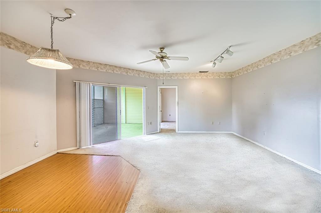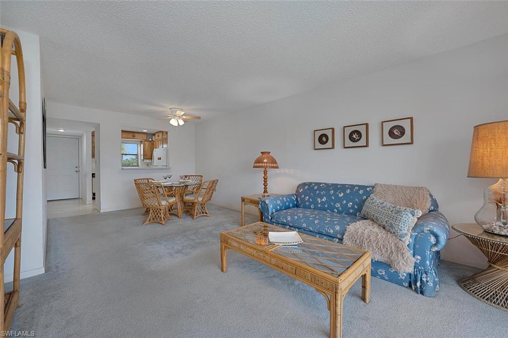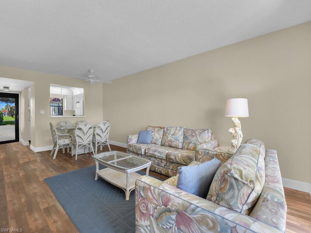 FIRST FLOOR CONDO w/ new A/C in August 2025! This 55+ & better community is in a highly desired Naples location. The meticulously cared for home features new flooring & fresh interior paint in 2018, new hot water heater, fresh exterior paint a few years ago, great room layout, spacious kitchen w/ eat-in area, split bedroom floor plan w/ master having large walk-in closet, dining area & breakfast bar, glass door at front entry, and screened lanai w/ laundry closet. This home overlooks the public golf course and is a short walk to the big community pool. At the community clubhouse you will find activities for everyone-large pool, pickleball, tennis, bocce ball, shuffle board, many social activities/scheduled events, a (soon to be finished) 9 hole public golf course, restaurant, and Pro Shop. As a resident, the owner of this unit will get reduced golf fees! This is a public course / no fees will be included in the community fees! This is a fantastic area to be a "Snow Bird" in, easy access to I-75, short drive to the beach, and surrounded by tons of SWFL friendly activities. Take advantage of the low HOA fees and start living your best Florida life!
