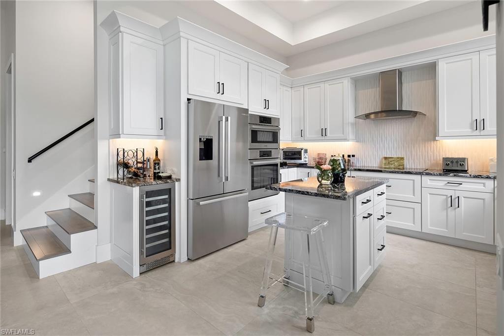 The ultimate coastal lifestyle awaits with VIP amenities galore! Situated on the water seconds from Naples Bay with direct Gulf access and boasting a Trex dock and custom boat lift with a remarkable 30K lb capacity, this estate home offers an unparalleled experience for boating enthusiasts. Another highlight for boat owners is the ability to accommodate up to a 48-foot boat (including motors) on the custom lift, ensuring seamless and convenient access to the Gulf. Outdoor amenities include a resort-style pool with a slide, a spa, an outdoor fireplace, and an allseason kitchen the perfect setting for entertaining or simply enjoying breathtaking waterfront views. Pocketing sliding doors with automated window coverings connect the outdoors with the stunning interior. Indoors, revel in designer light fixtures, COREtec flooring, a feature wall with an electric fireplace in the expansive great room, and a 250-bottle wine cellar. The wet bar with luminescent backlit counters is the perfect spot for entertaining. Wind down in the evening in the upstairs theater room that seats 8. The chef's kitchen features Quartz counters, dual islands, and a custom dining table. Gourmet appliances include a Sub-Zero Refrigerator, GE Monogram induction cooktop, double wall ovens, and a builtin Miele coffee maker. The first-floor owner's suite is a sanctuary in itself, boasting an astounding spa bath, an enormous closet, and direct access to the pool deck. Upstairs, three additional bedrooms offer family and guests ample room for privacy and play. Located minutes from 5th Ave and sun-drenched Gulf beaches. Immerse yourself in the epitome of luxury living, where every detail has been meticulously crafted to create your dream oasis by the water.