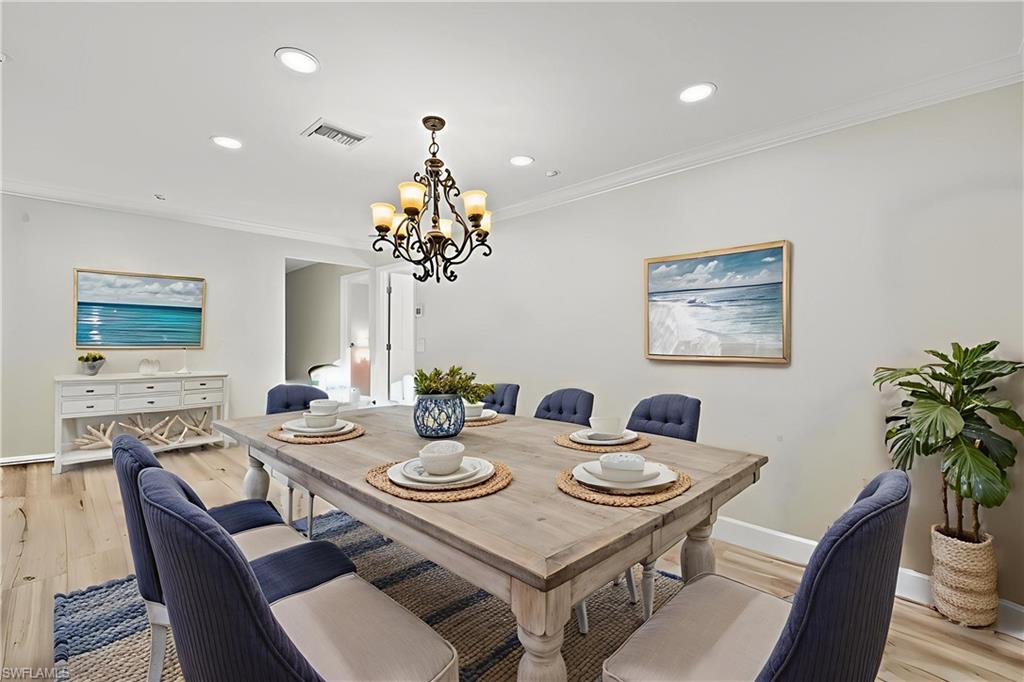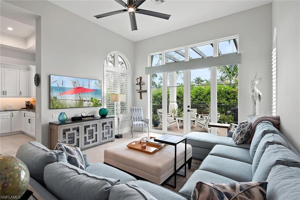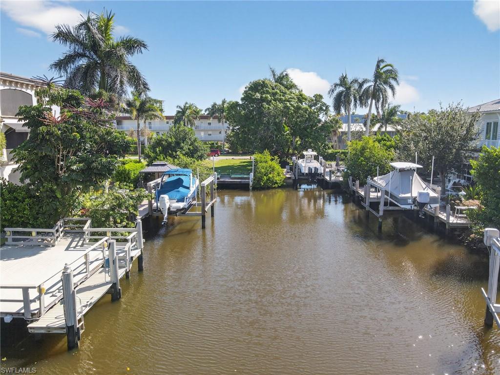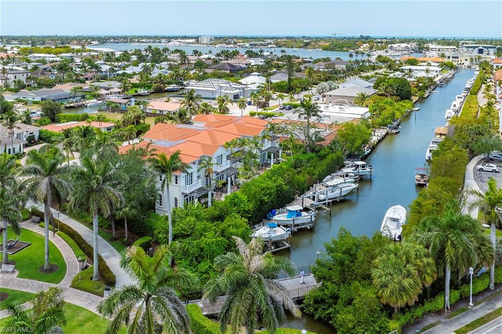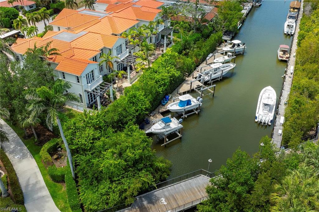 Experience the best of Naples waterfront living in this rarely available 2,200-square-foot, two-story townhouse-style condominium. Featuring three spacious bedrooms with en suites, this beautifully updated home is just steps from world-famous 5th Avenue’s fine dining, upscale shopping and renowned Naples Bay Resort. Renovated in 2022 just before Hurricane Ian, the property remained high and dry during the storm, according to the owner, and includes hurricane-impact windows and doors for added safety and comfort. Inside, enjoy 12-foot-high ceilings, abundant natural light, motorized blinds on the patio doors and plantation shutters on all other windows for a polished, luxurious finish. Boaters will love the 30-foot private dock with a 12,000-pound lift, providing deep water, direct Gulf access with no bridges. The home also includes a two-car garage and is pet-friendly. This home offers an unmatched combination of location, style and convenience. This is a must-see property for anyone seeking a prime waterfront lifestyle in the heart of Naples. Easy to show and competitively priced to sell so don’t miss your chance to own this exceptional residence.